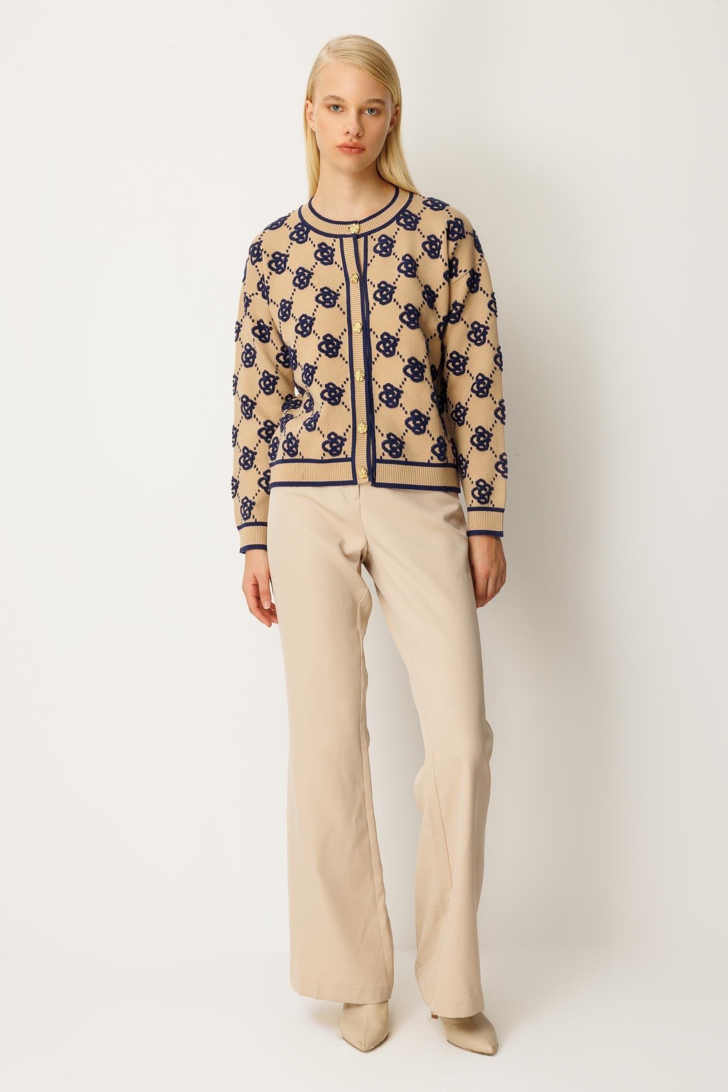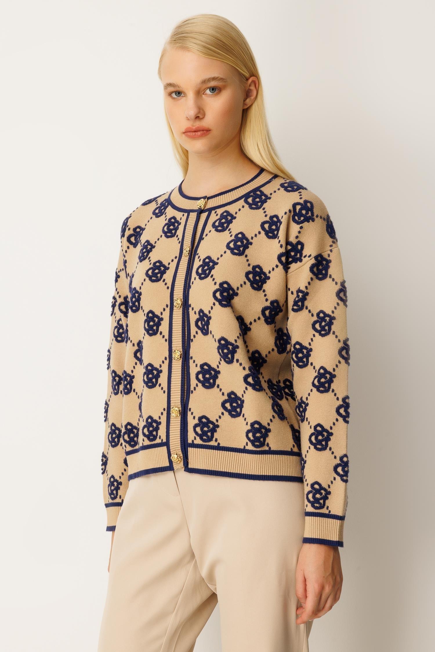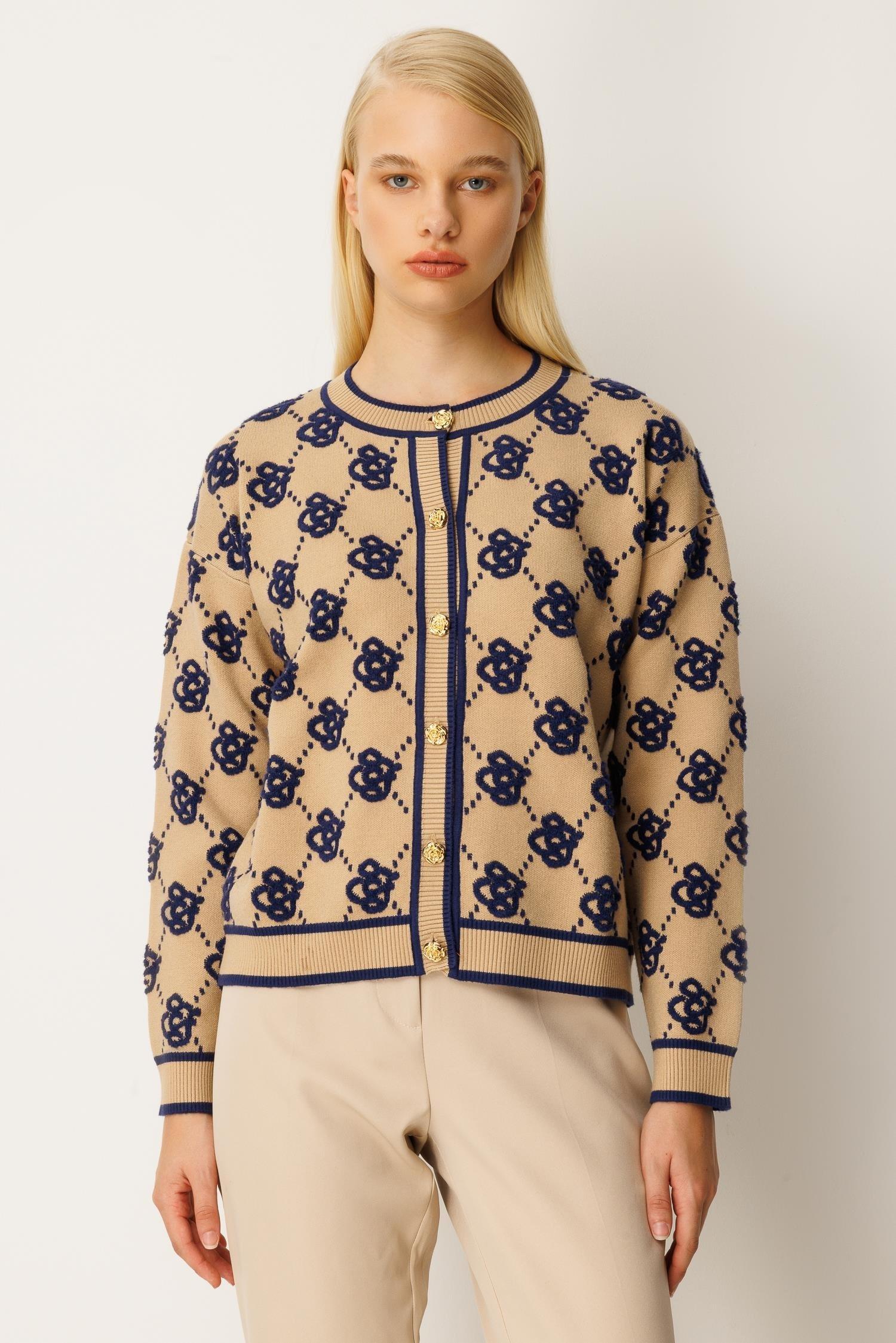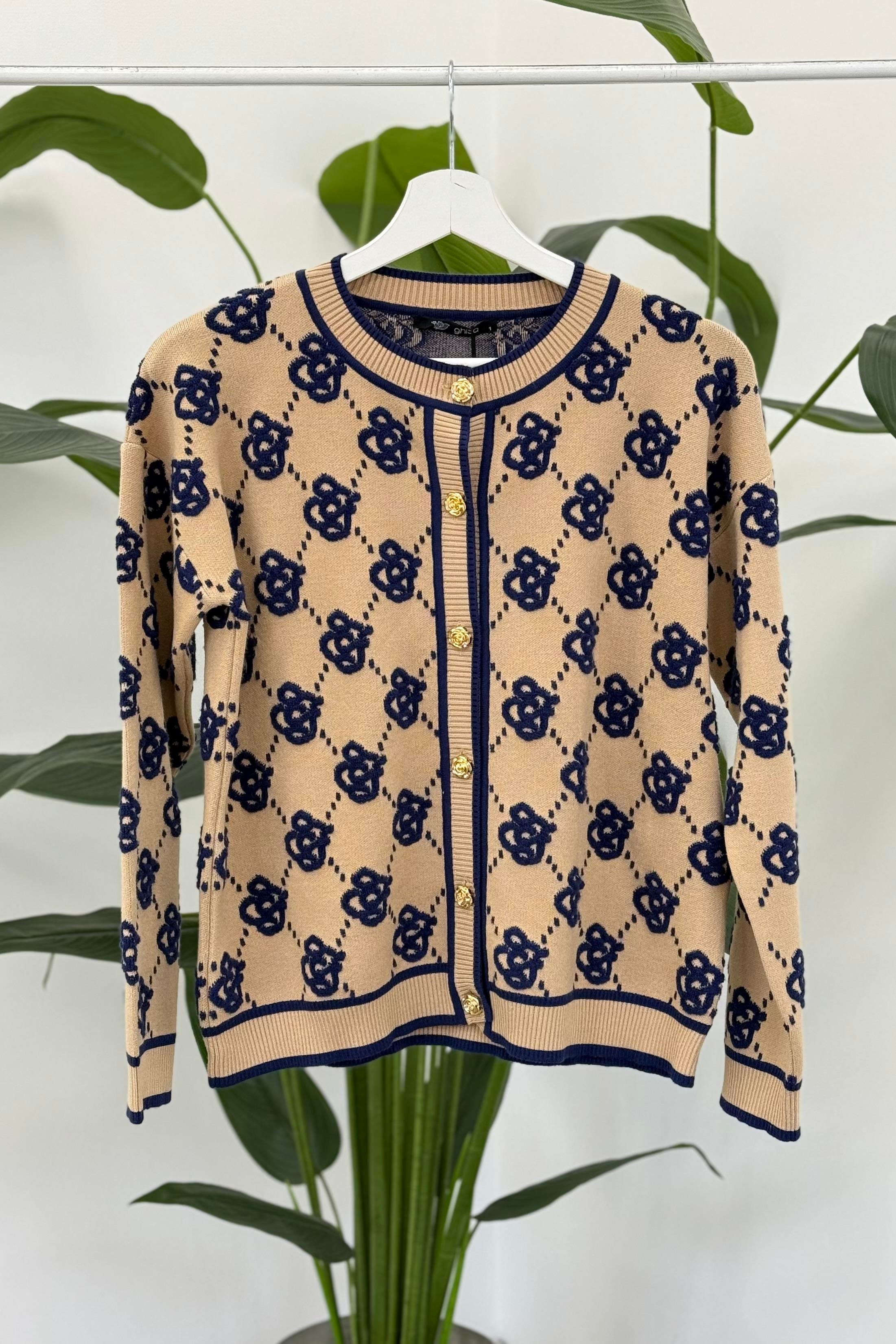 Ghisa 3082 Hırka - Camel - Lacivert