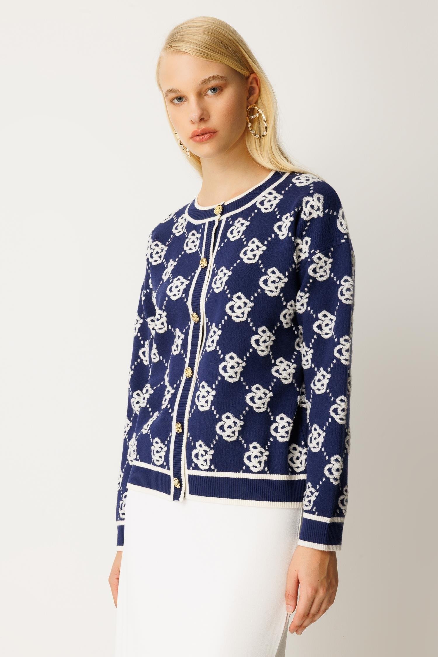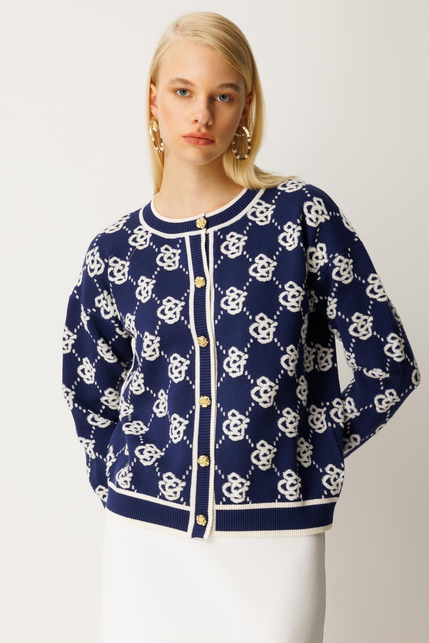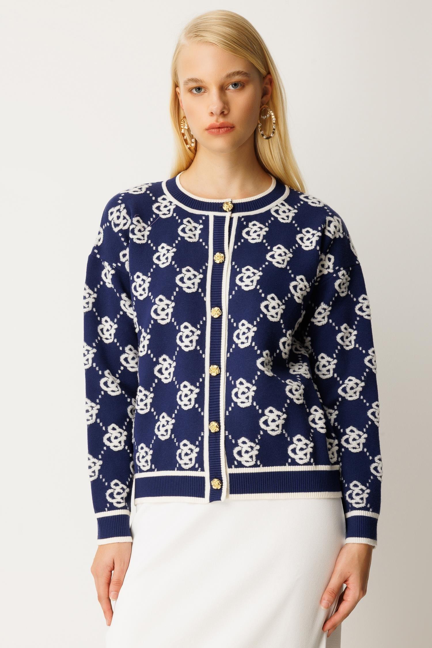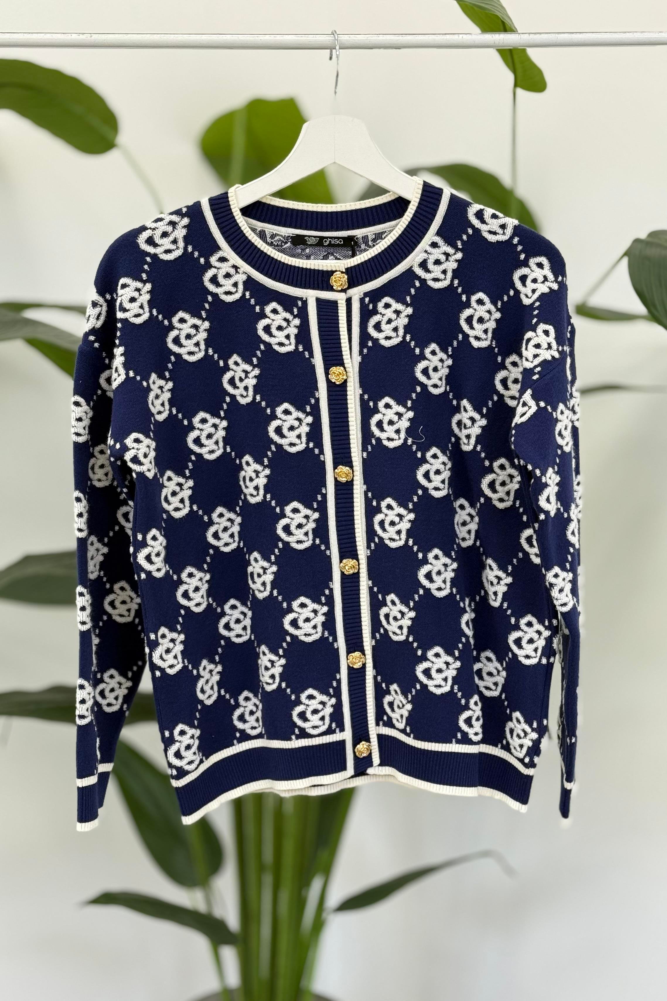 Ghisa 3082 Hırka - Lacivert - Ekru