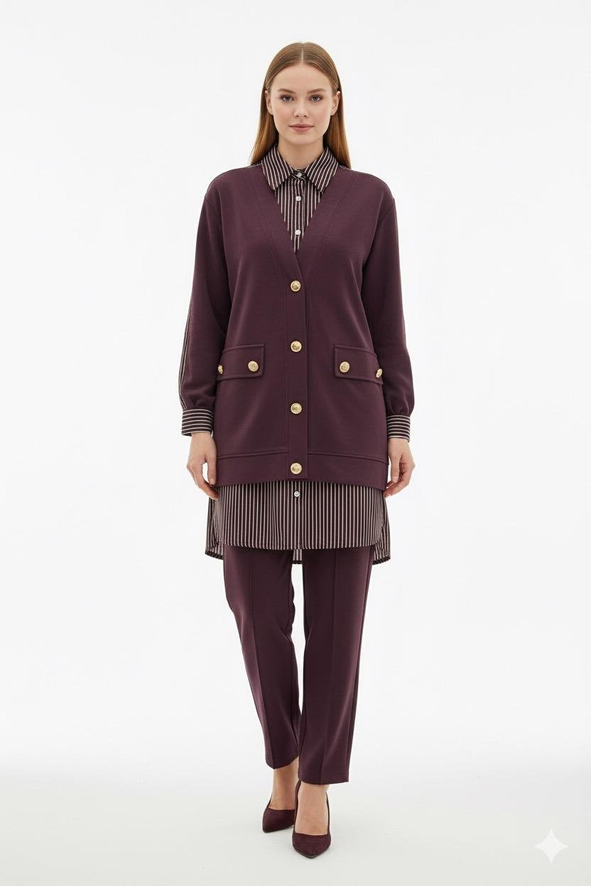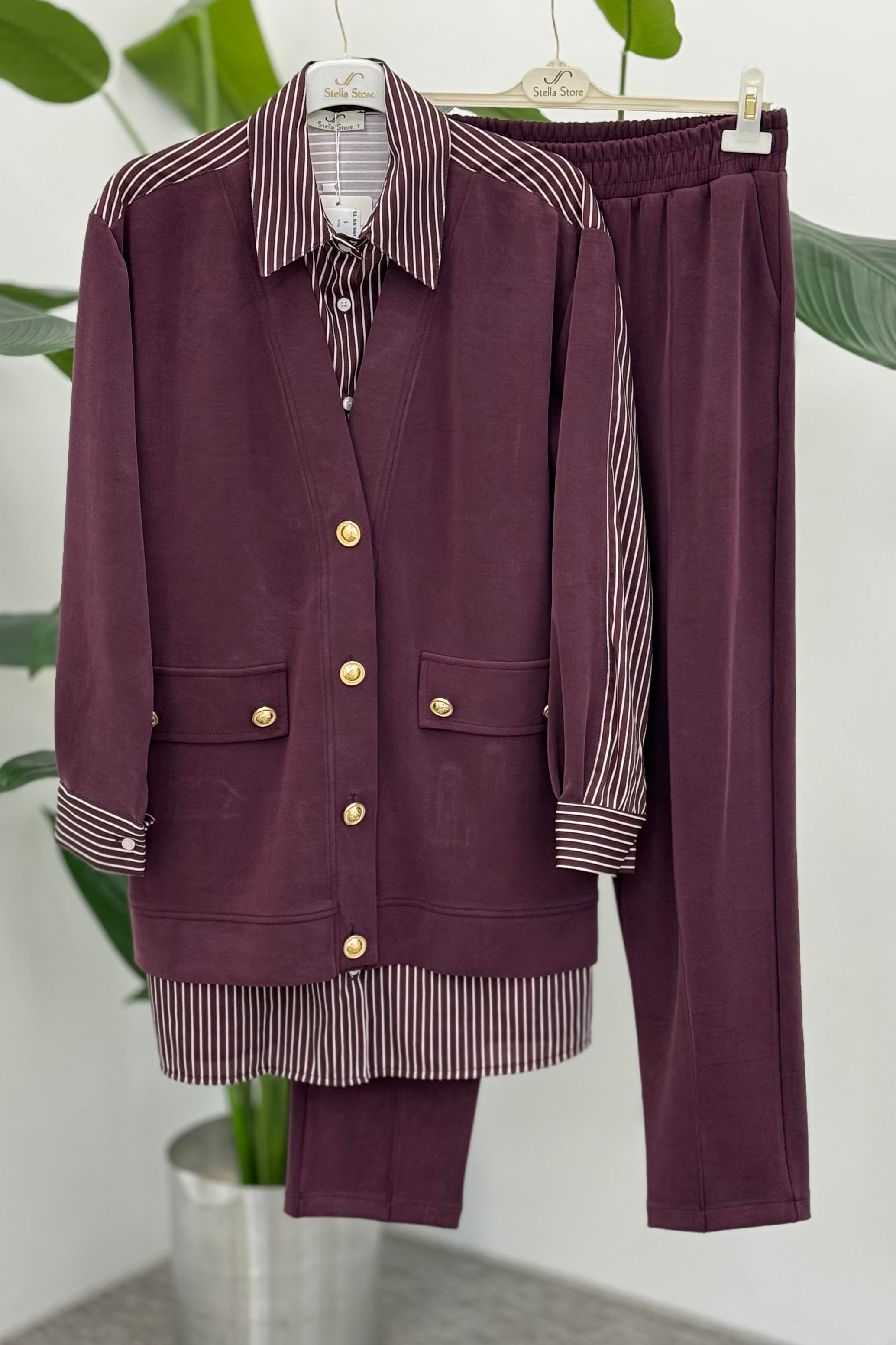 Gömlek Detaylı Pantolonlu Takım 1405 - Bordo