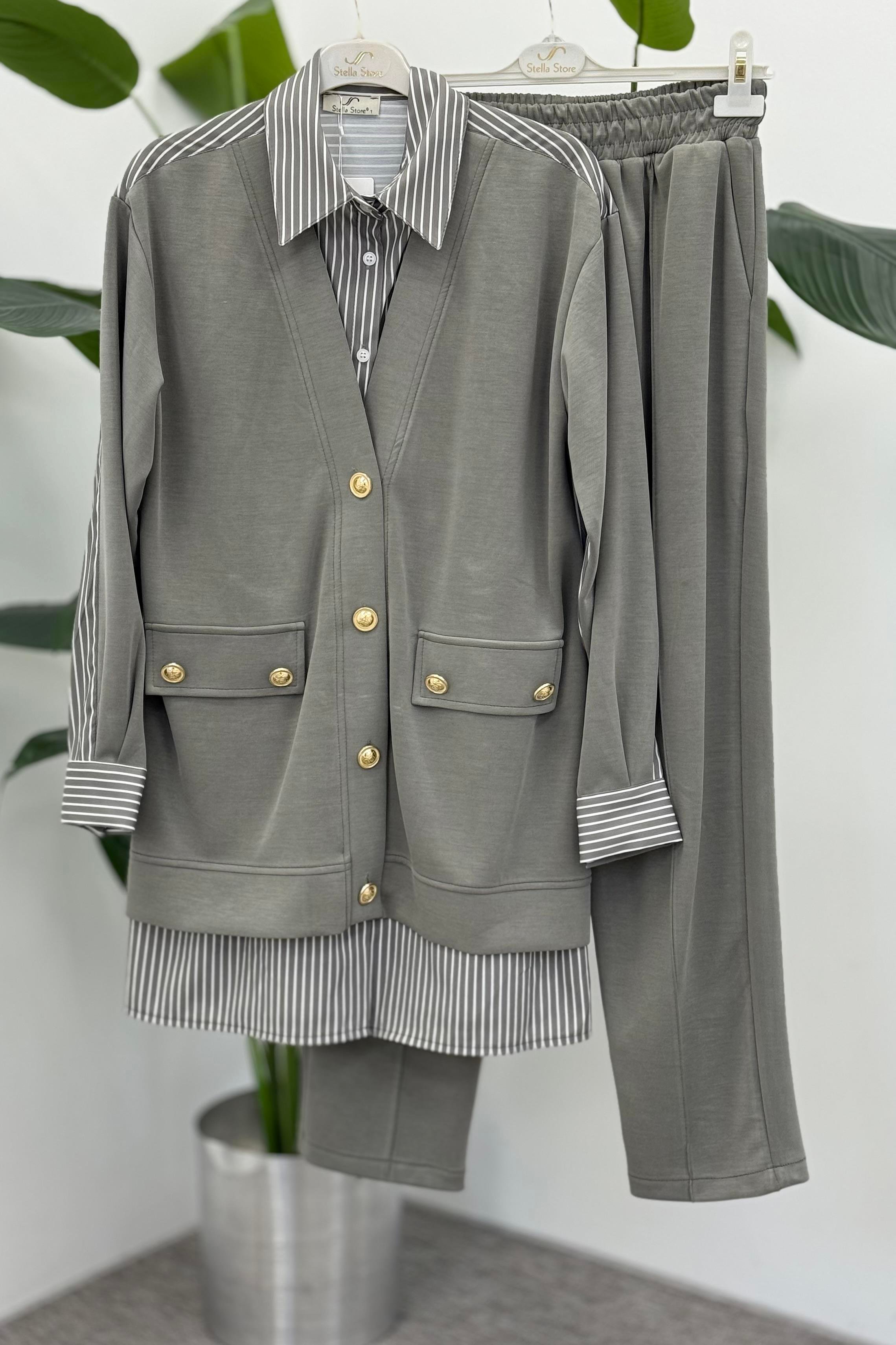 Gömlek Detaylı Pantolonlu Takım 1405 - Haki
