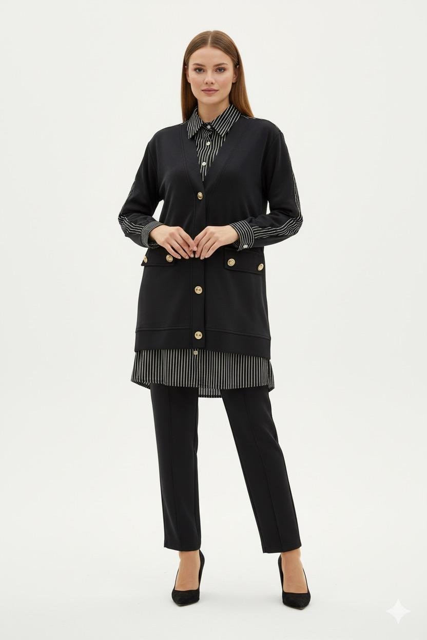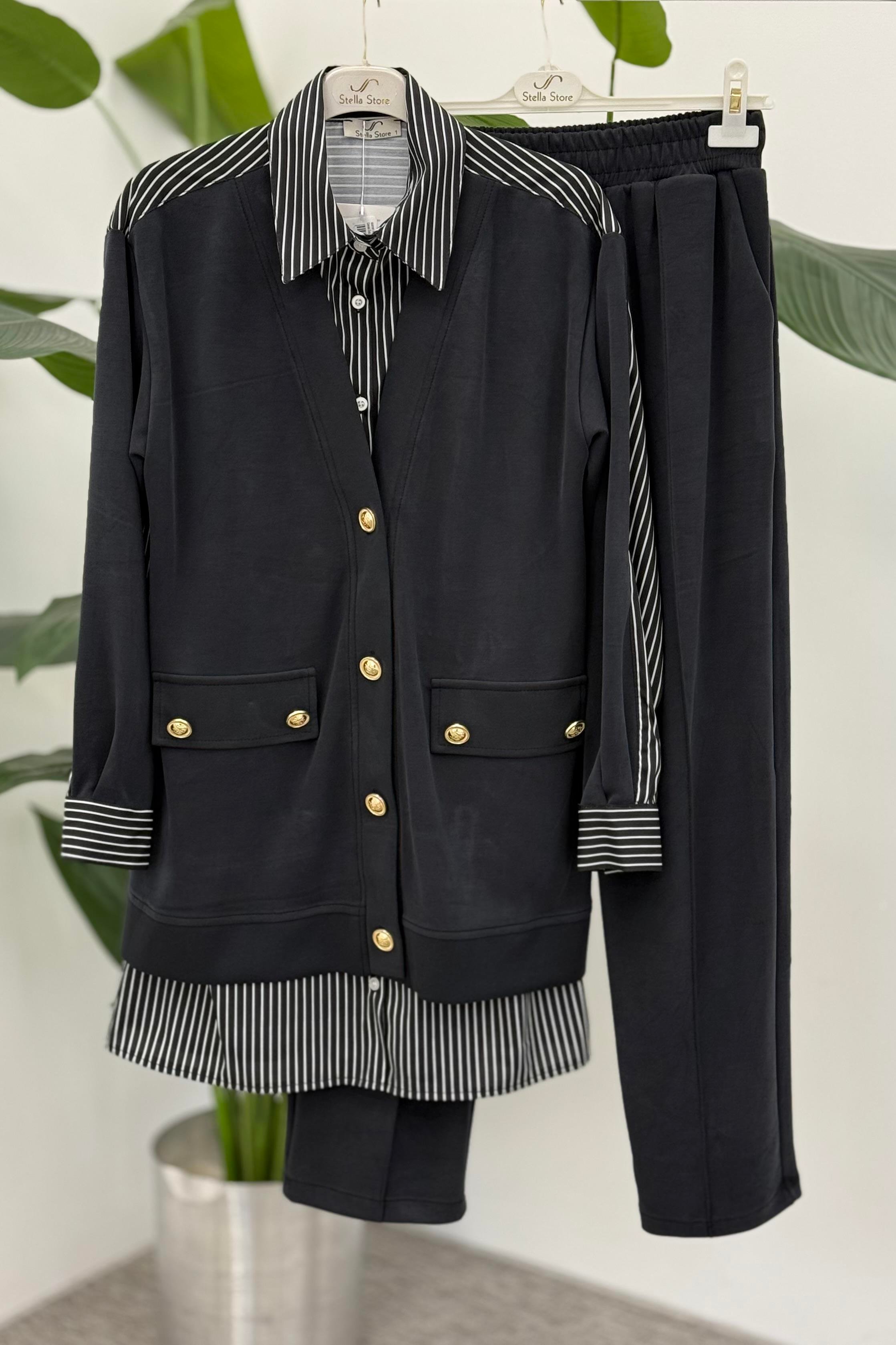 Gömlek Detaylı Pantolonlu Takım 1405 - Siyah