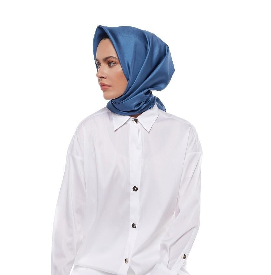 İpekevi 01116 Düz Tivil İpek Eşarp - İndigo (366338705)