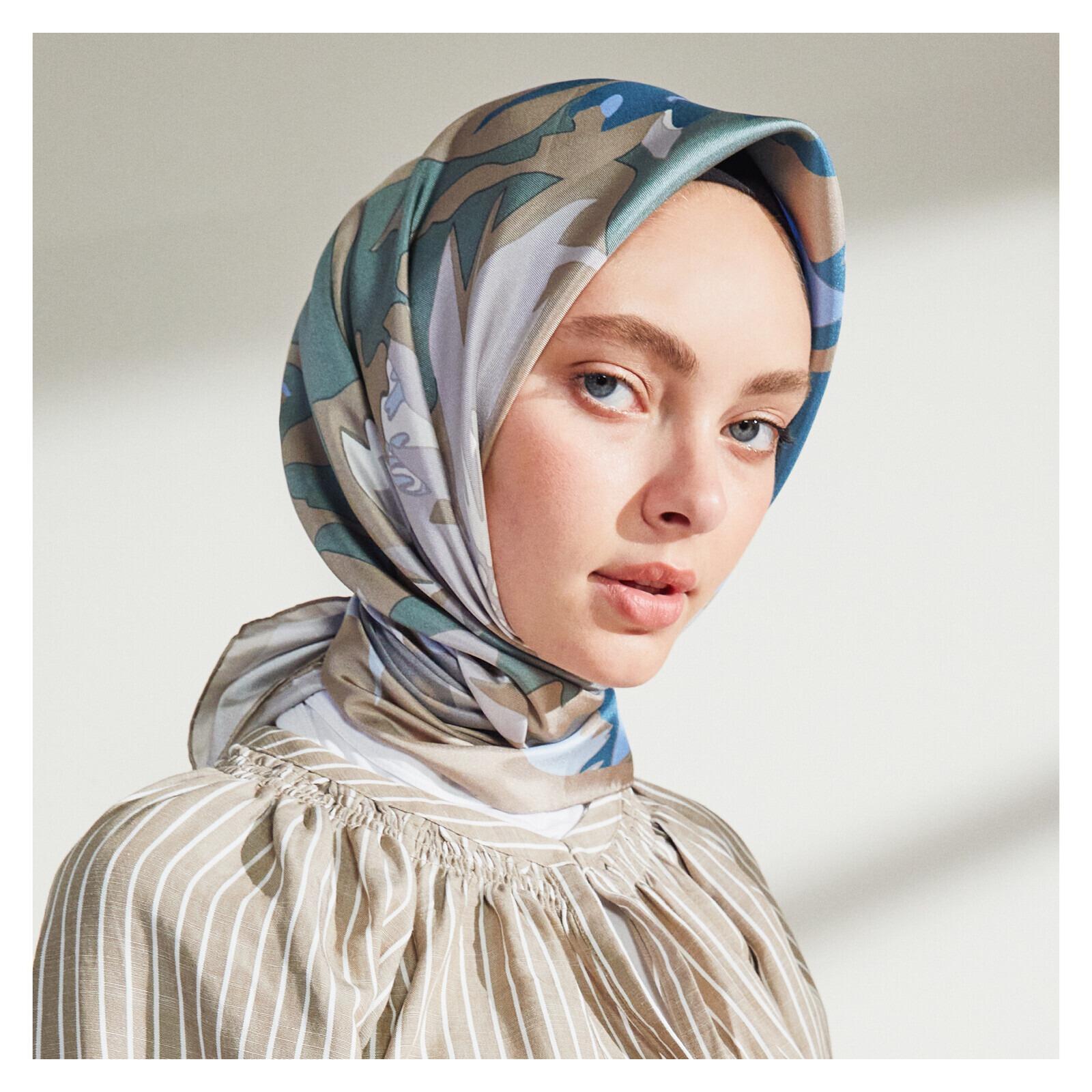 İpekevi 01192 Nihavent Desenli Tivil İpek Eşarp - Bebe Mavisi (366338829)