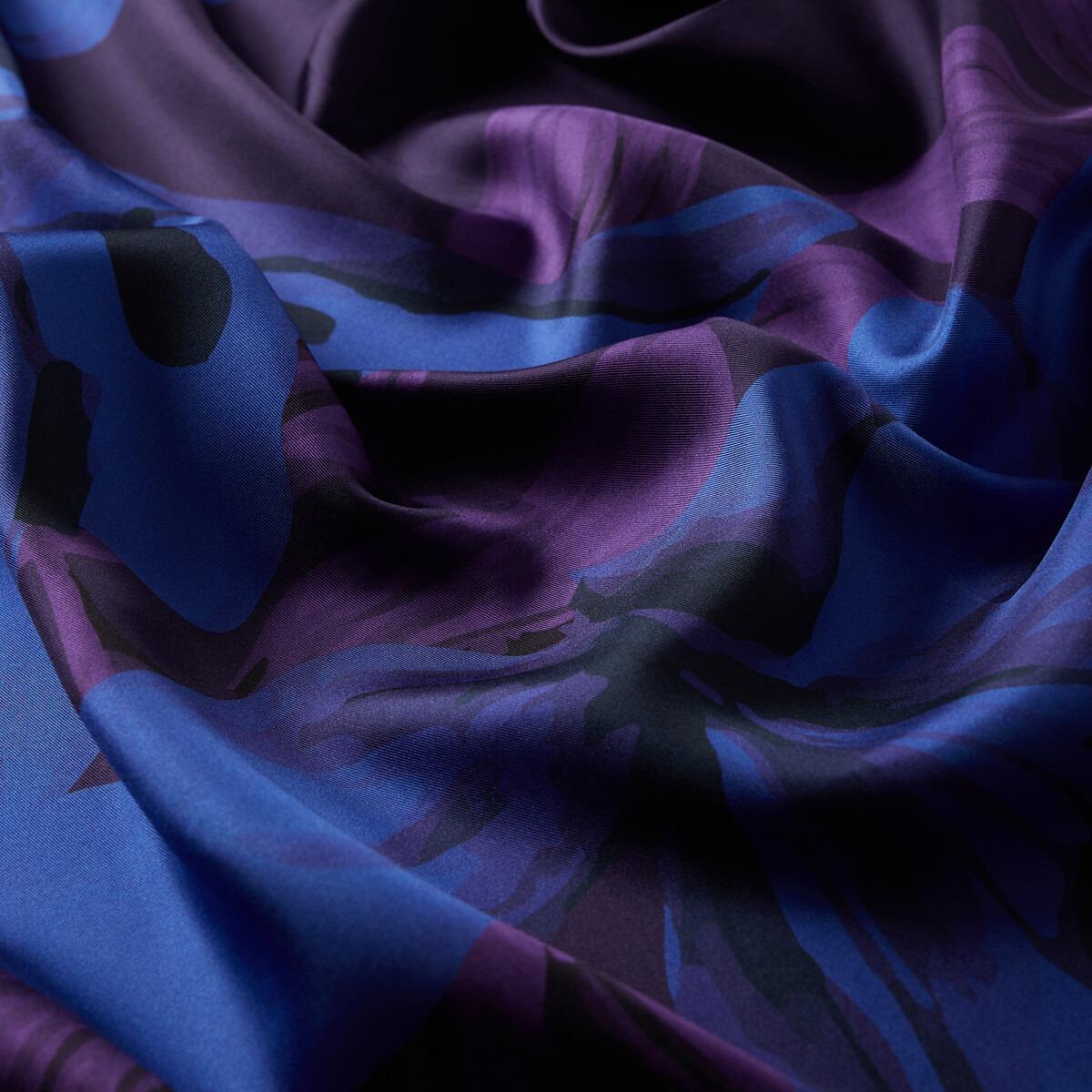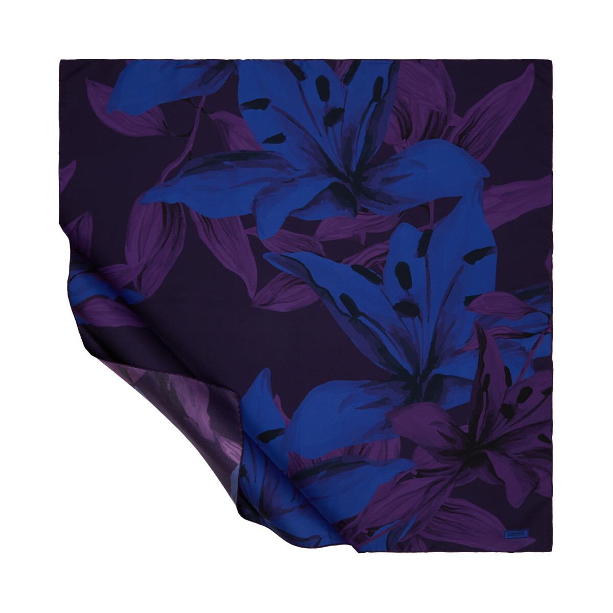 İpekevi 01235 Lilium Desenli Tivil İpek Eşarp - Morcivert (366338828)