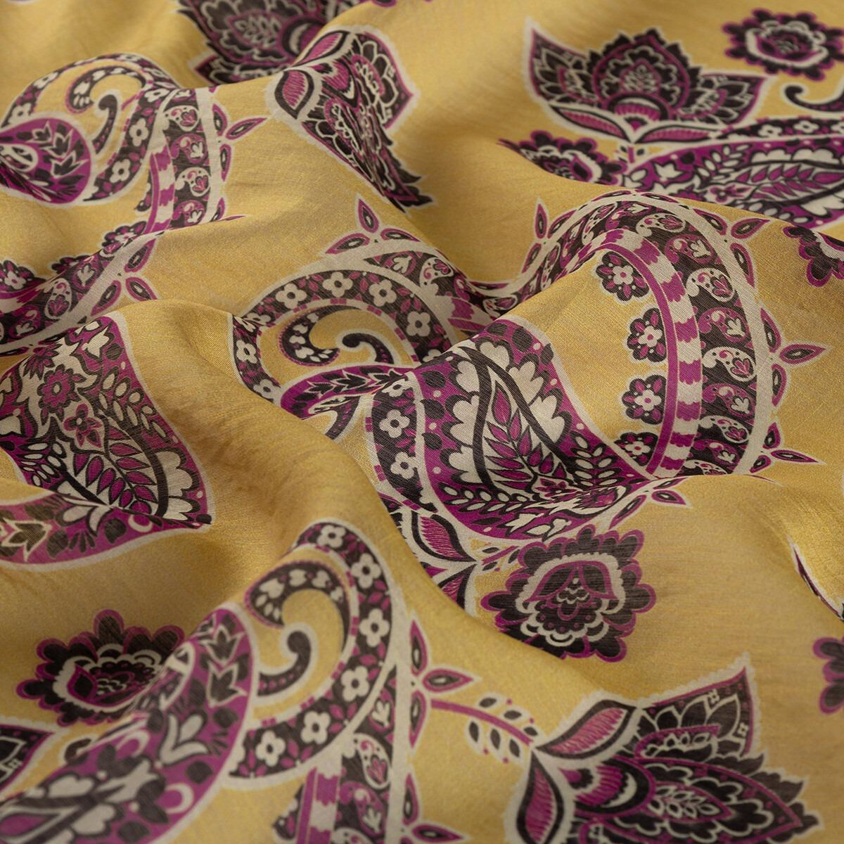 İpekevi 02227 Mezopotamya Model 04 Desenli Tensel Eşarp - Gold Fuşya
