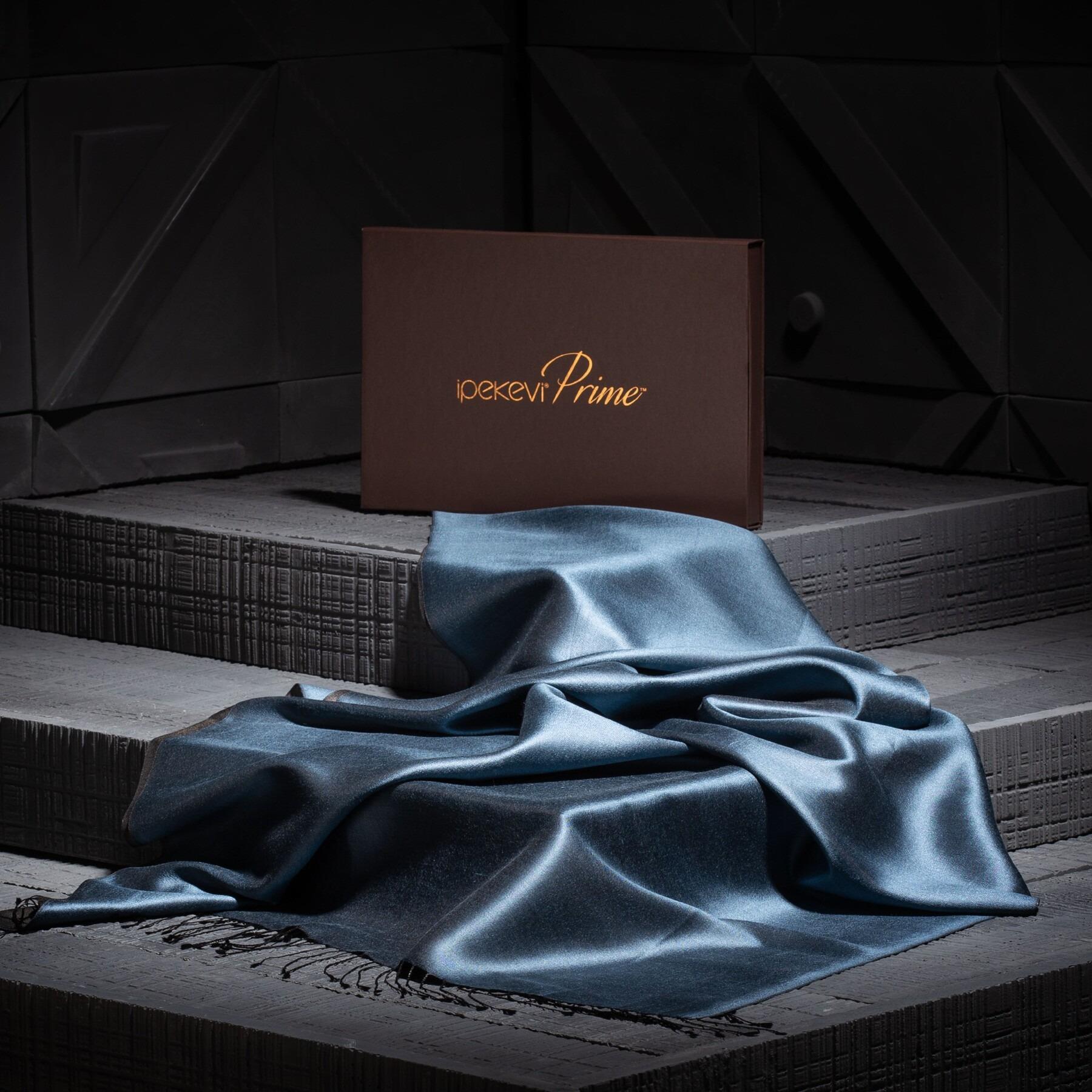 İpekevi 02281 Çift Taraflı Prime İpek Şal - İndigo Füme (365338819)