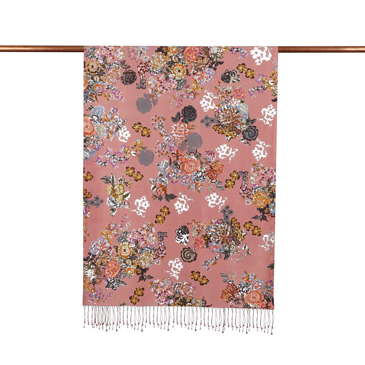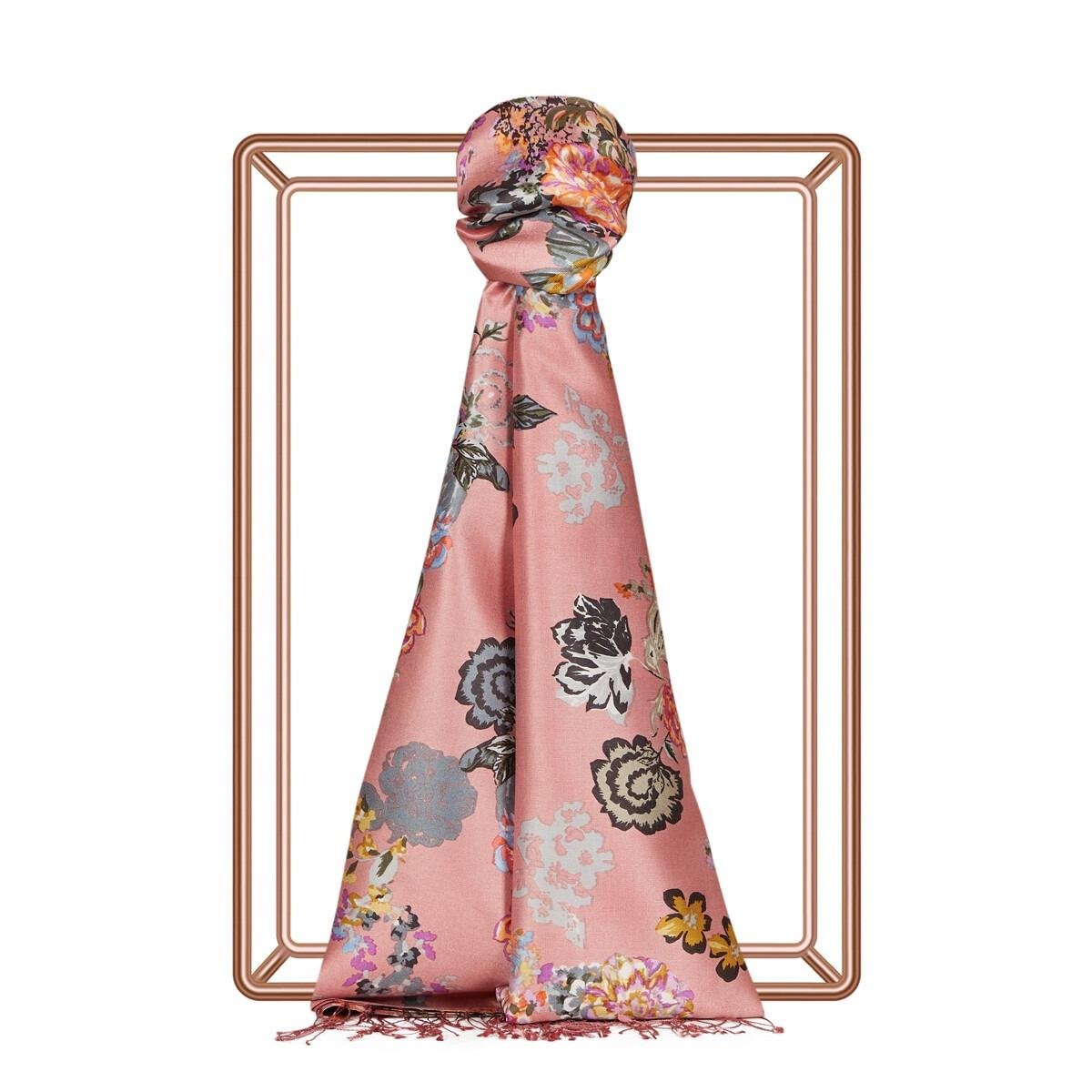İpekevi 05716 Yalı Bahçesi Desenli İpek Şal - Şeker Pembe