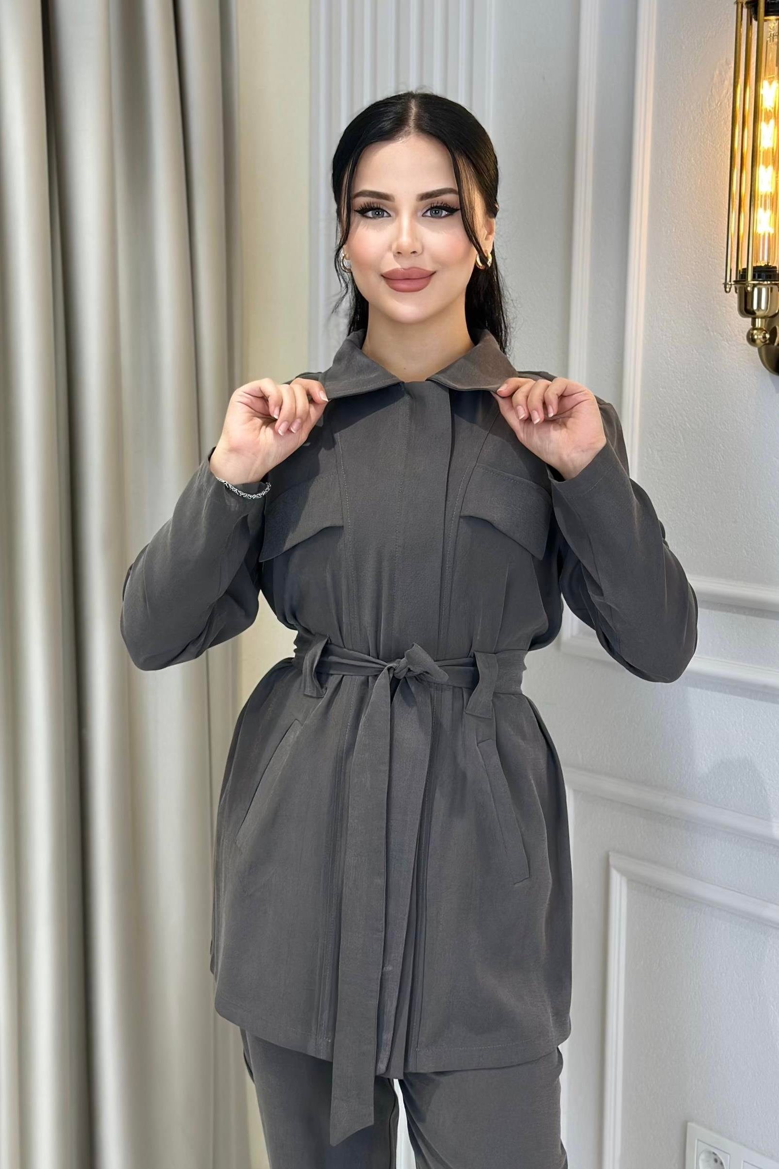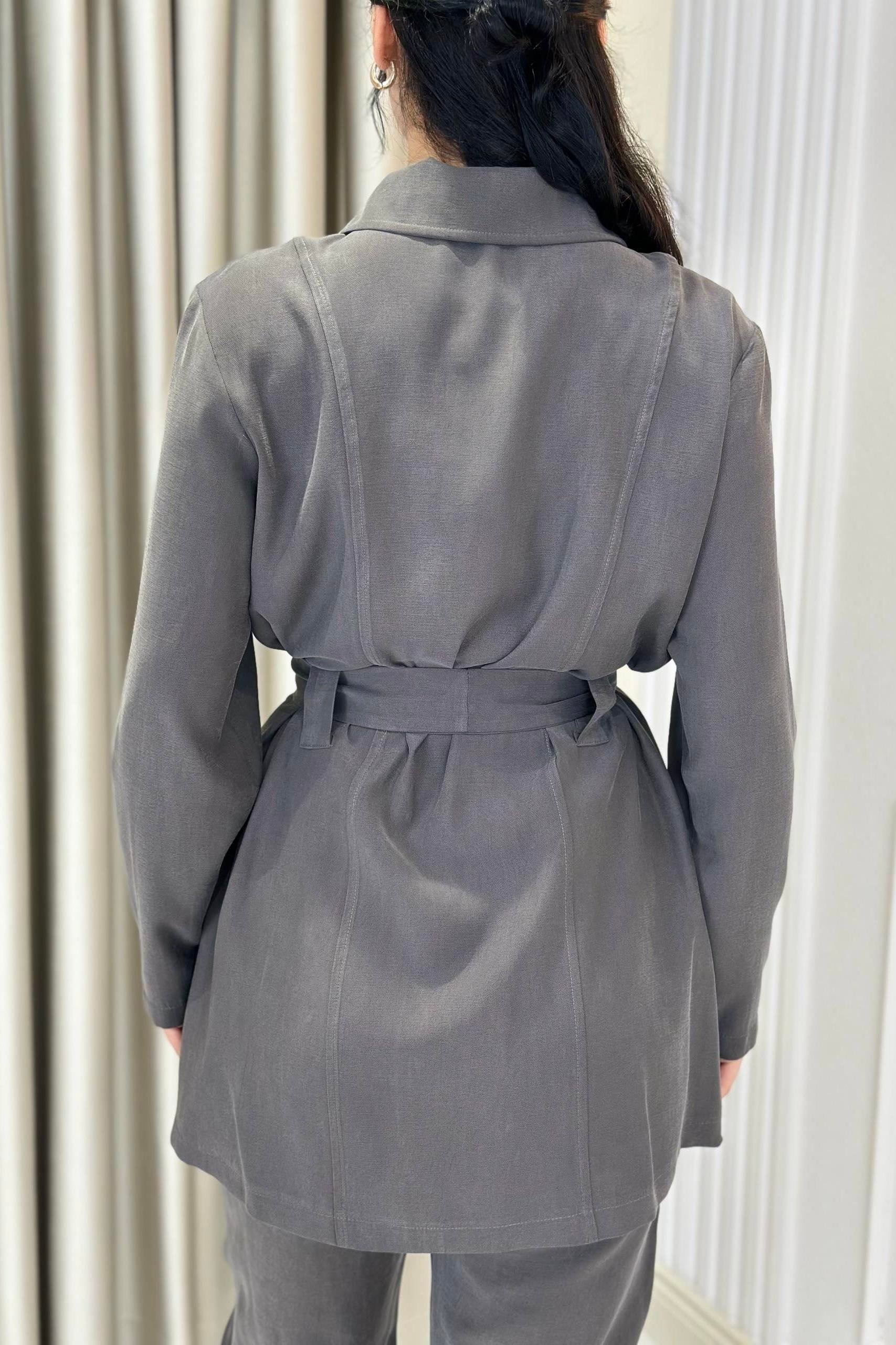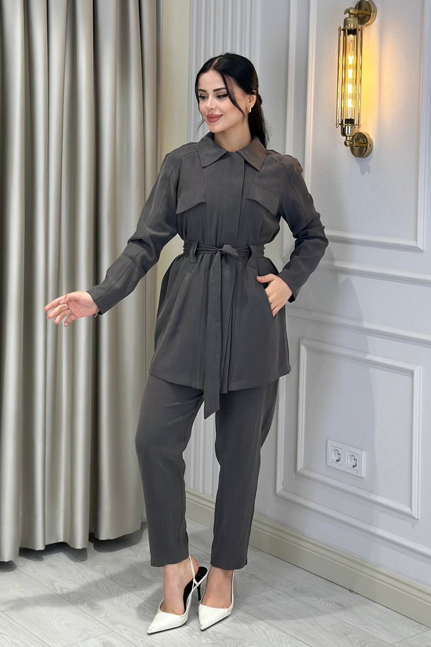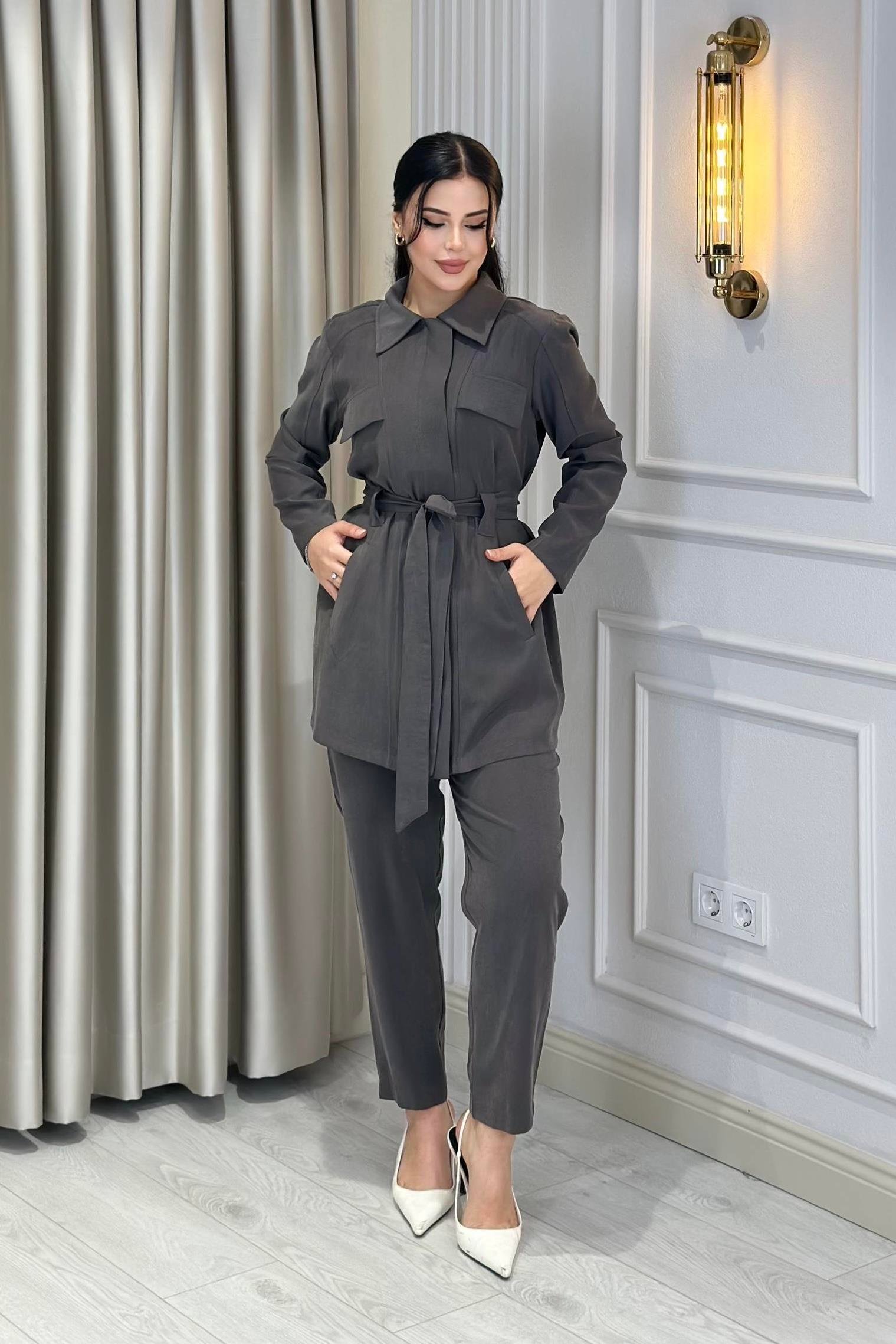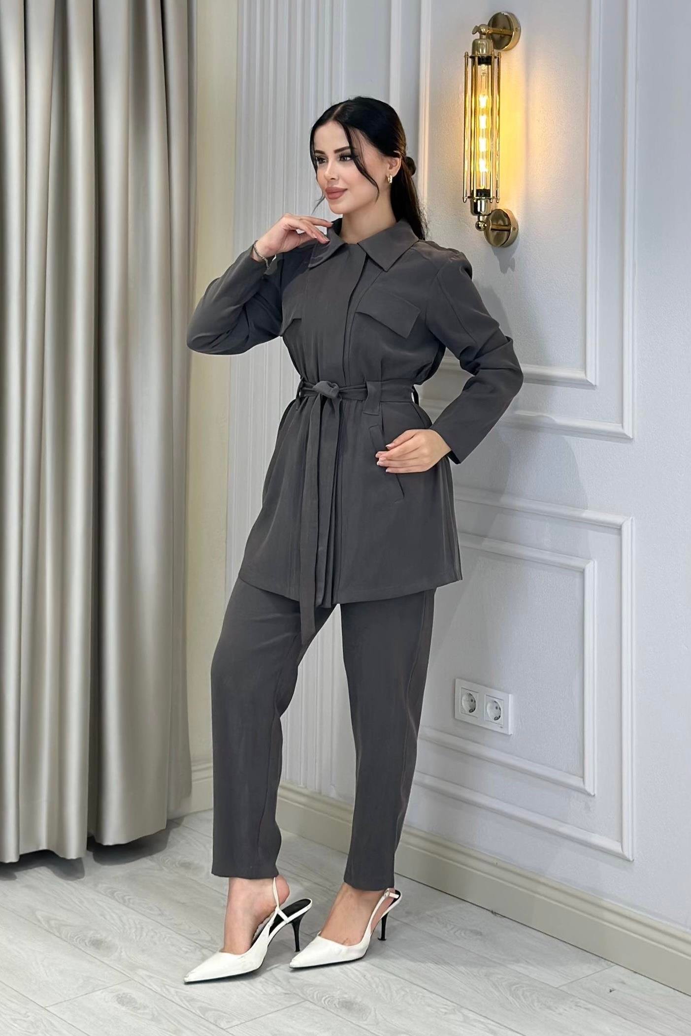 Jupe 8585 Kemer Detay Pantolonlu Takım - Antrasit (350125908)