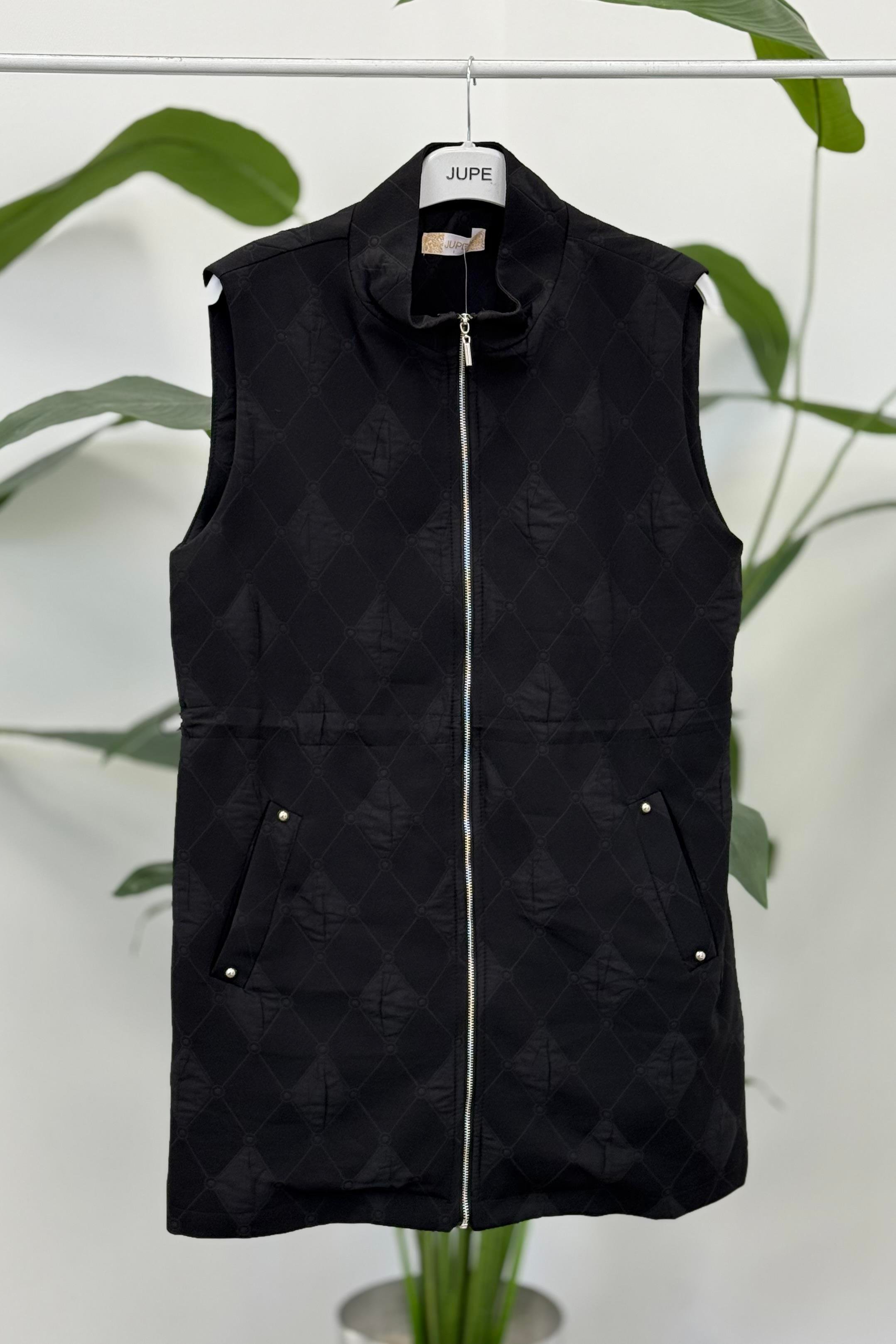 Jupe 9269 Kendinden Baklava Desenli Fermuarlı Yelek - Siyah