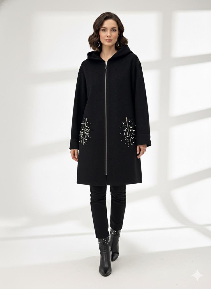 Jupe 9287 Cepleri Taş İşlemeli Kaban - Siyah (378125905)