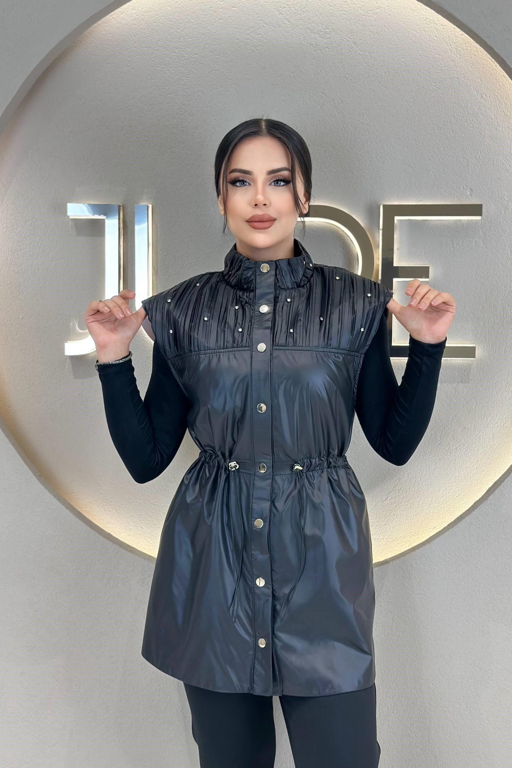 Jupe 9262 Taş İşlemeli Yelek - Siyah