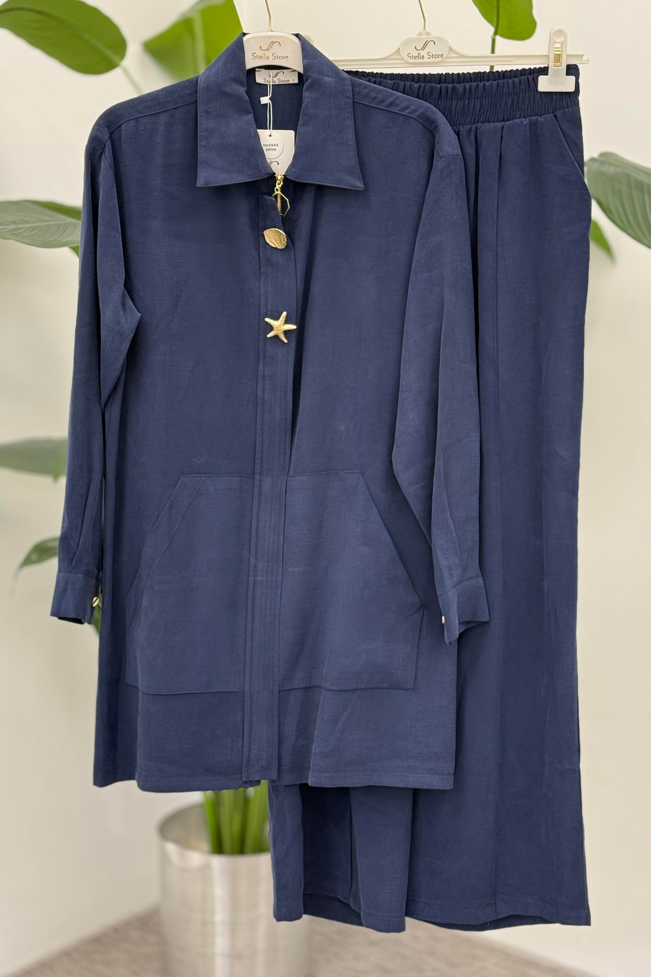 Kanguru Cep Yıldız Düğme Detaylı Pantolonlu Takım 1304 - Lacivert
