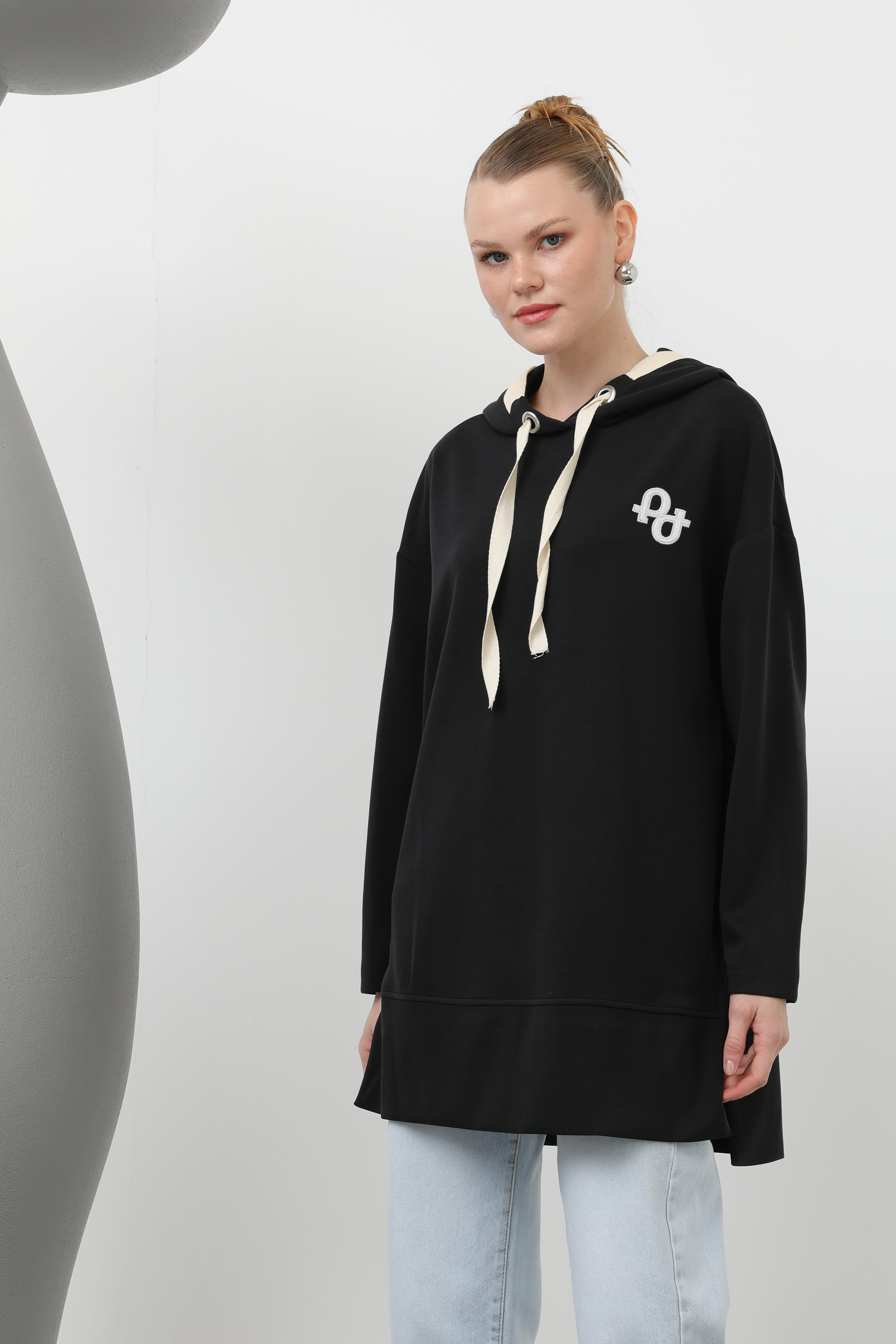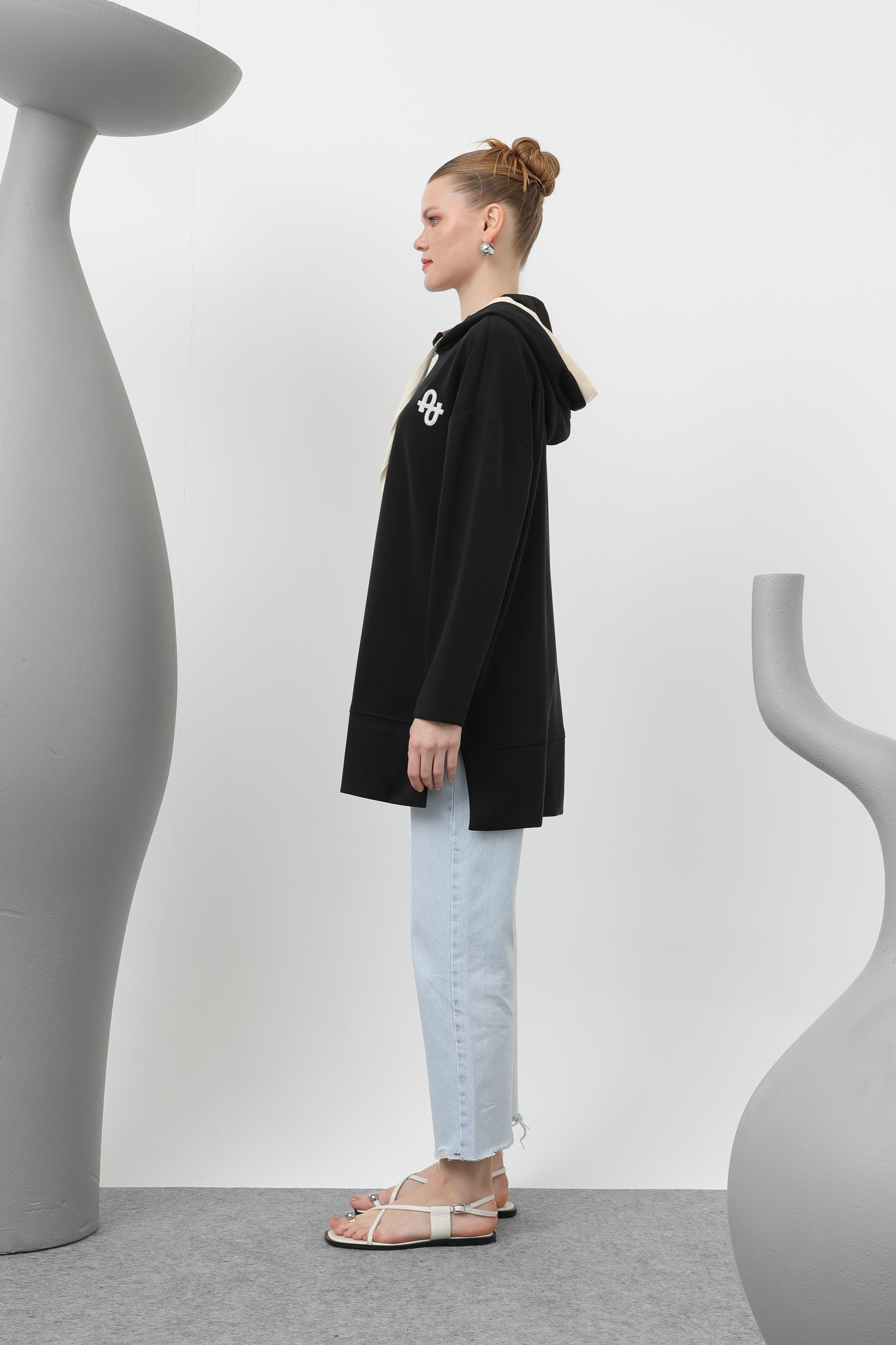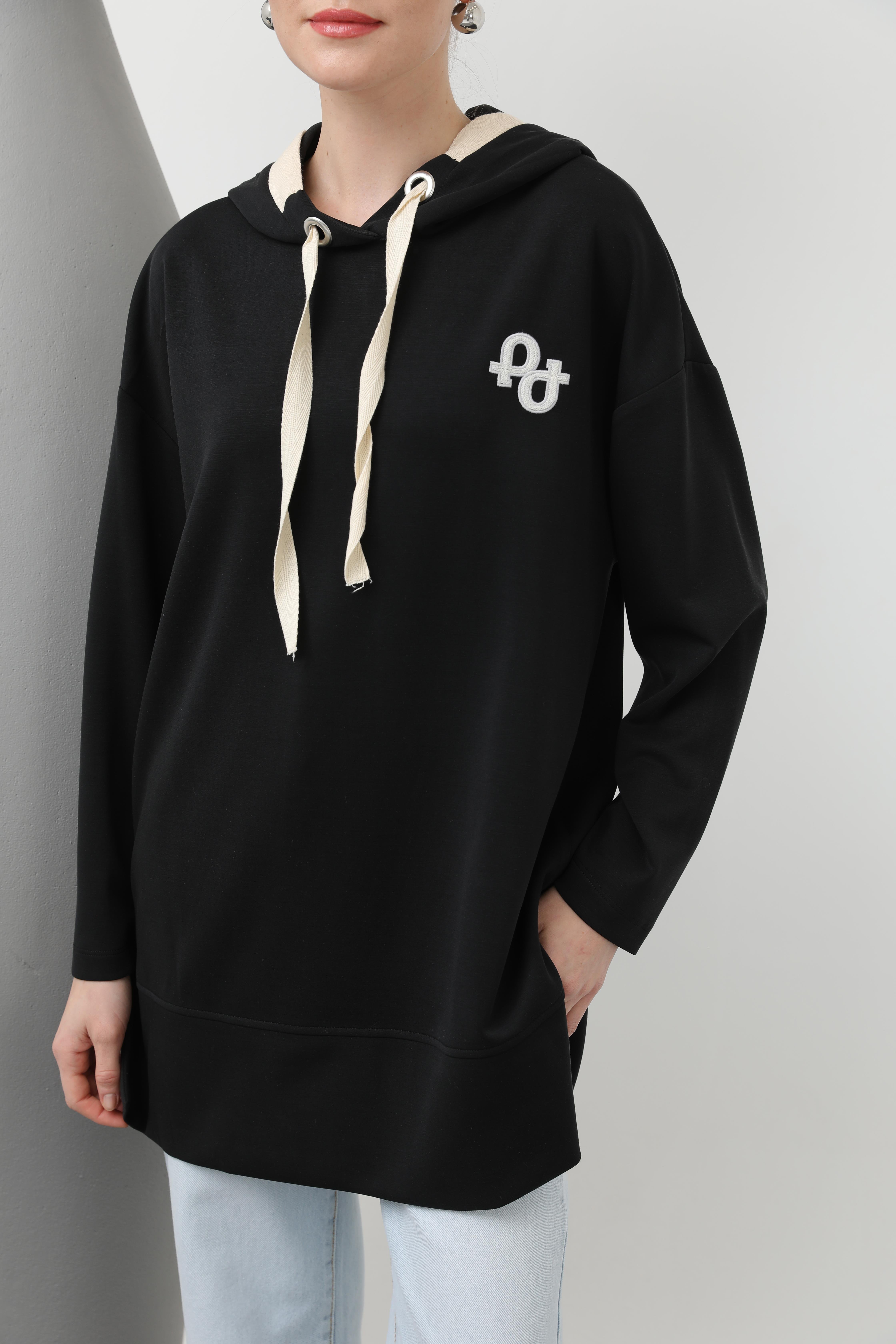 Kapişonlu P nakış İşlemeli Tunik 10615 - Siyah
