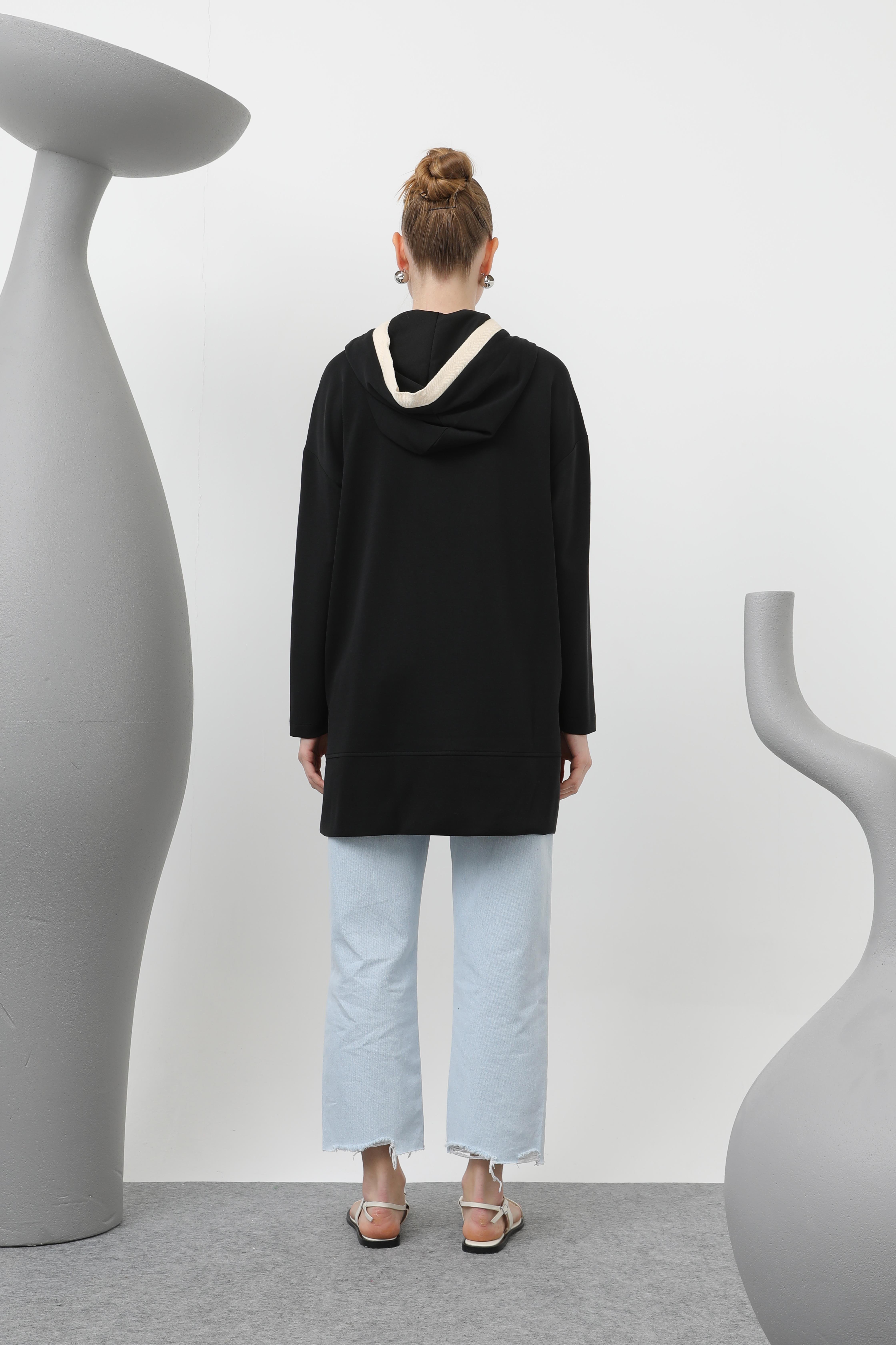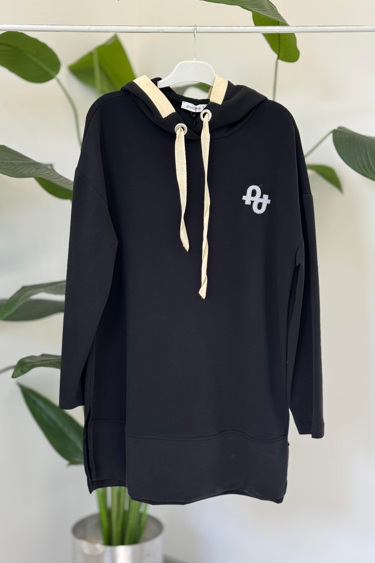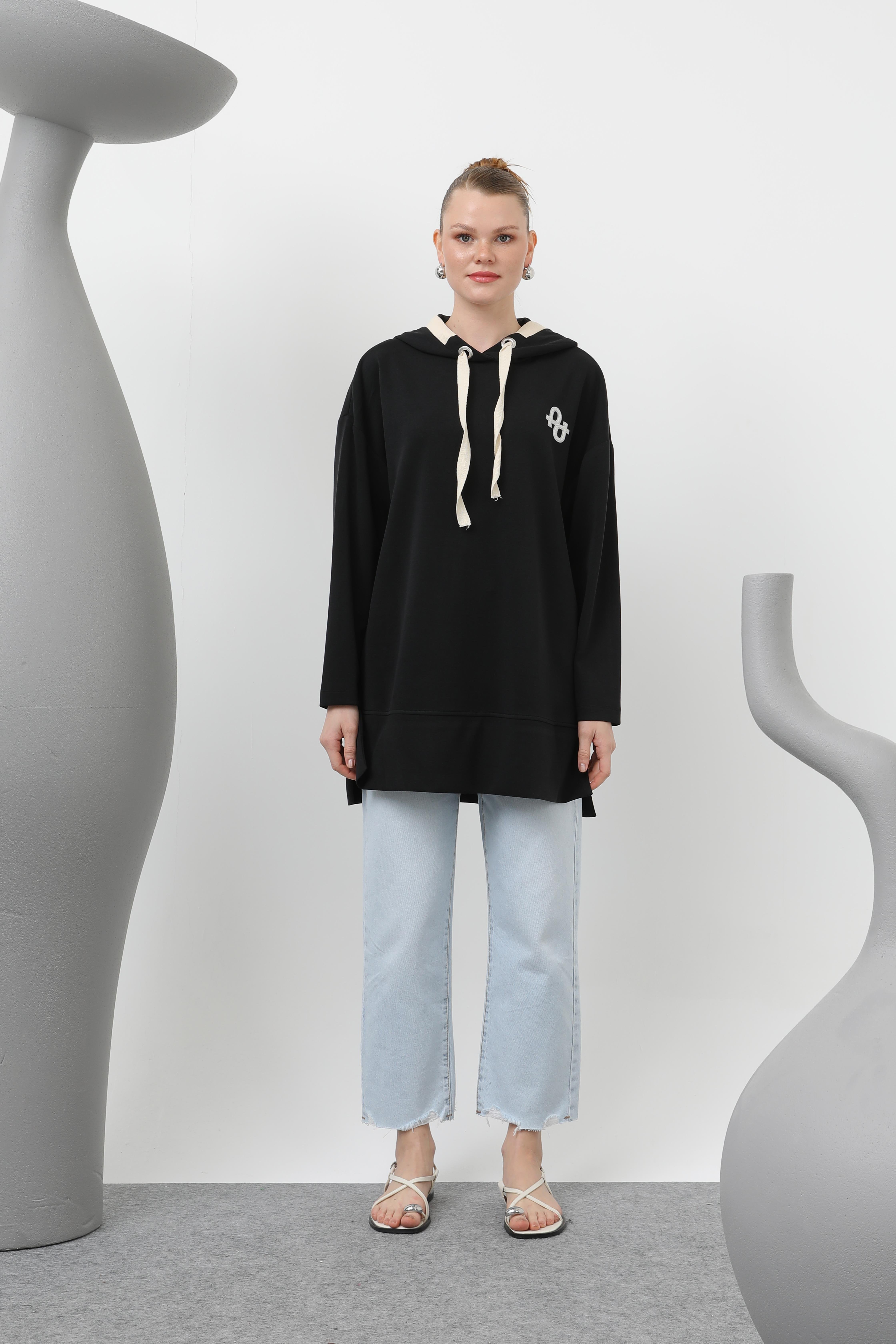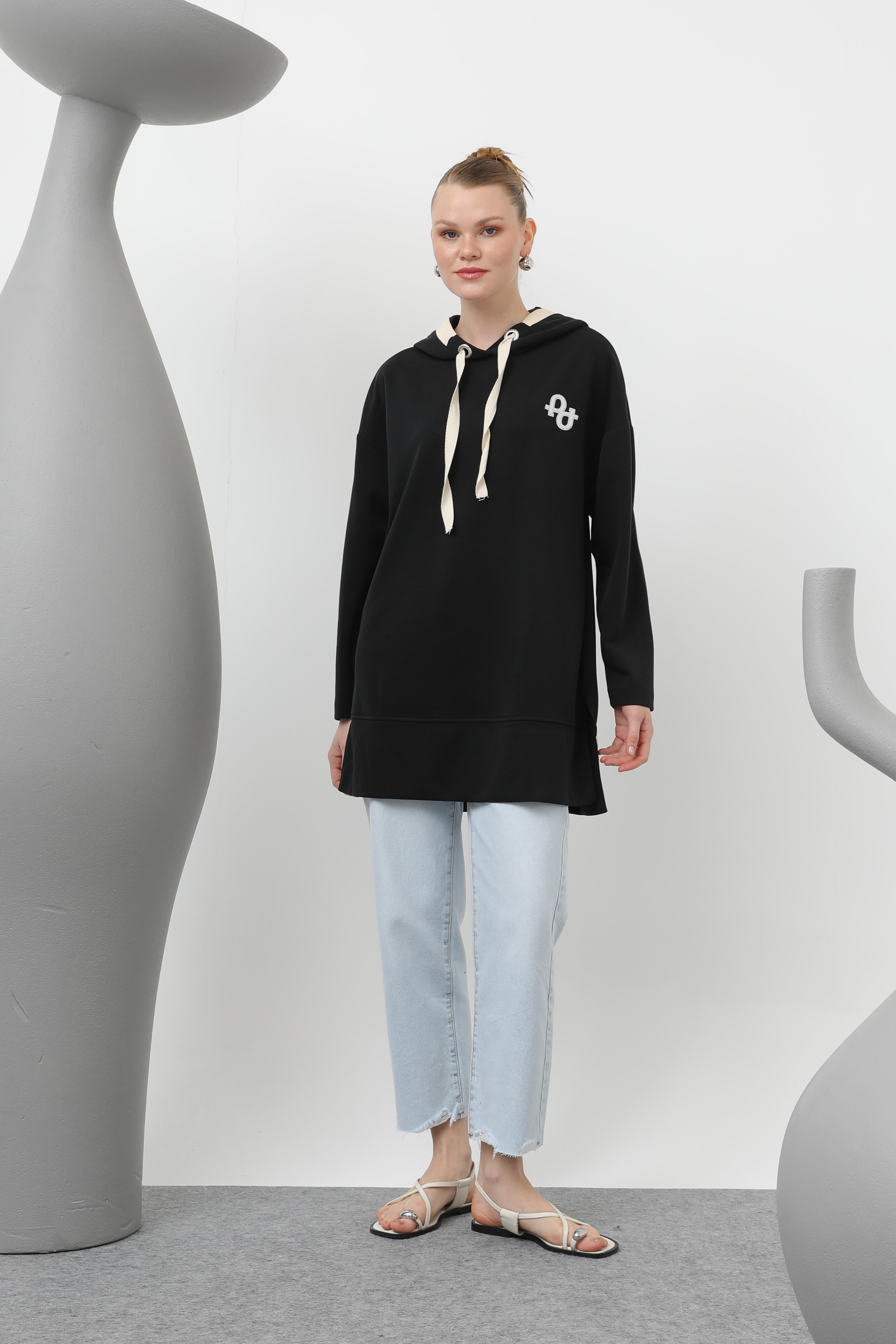Kapişonlu P nakış İşlemeli Tunik 10615 - Siyah