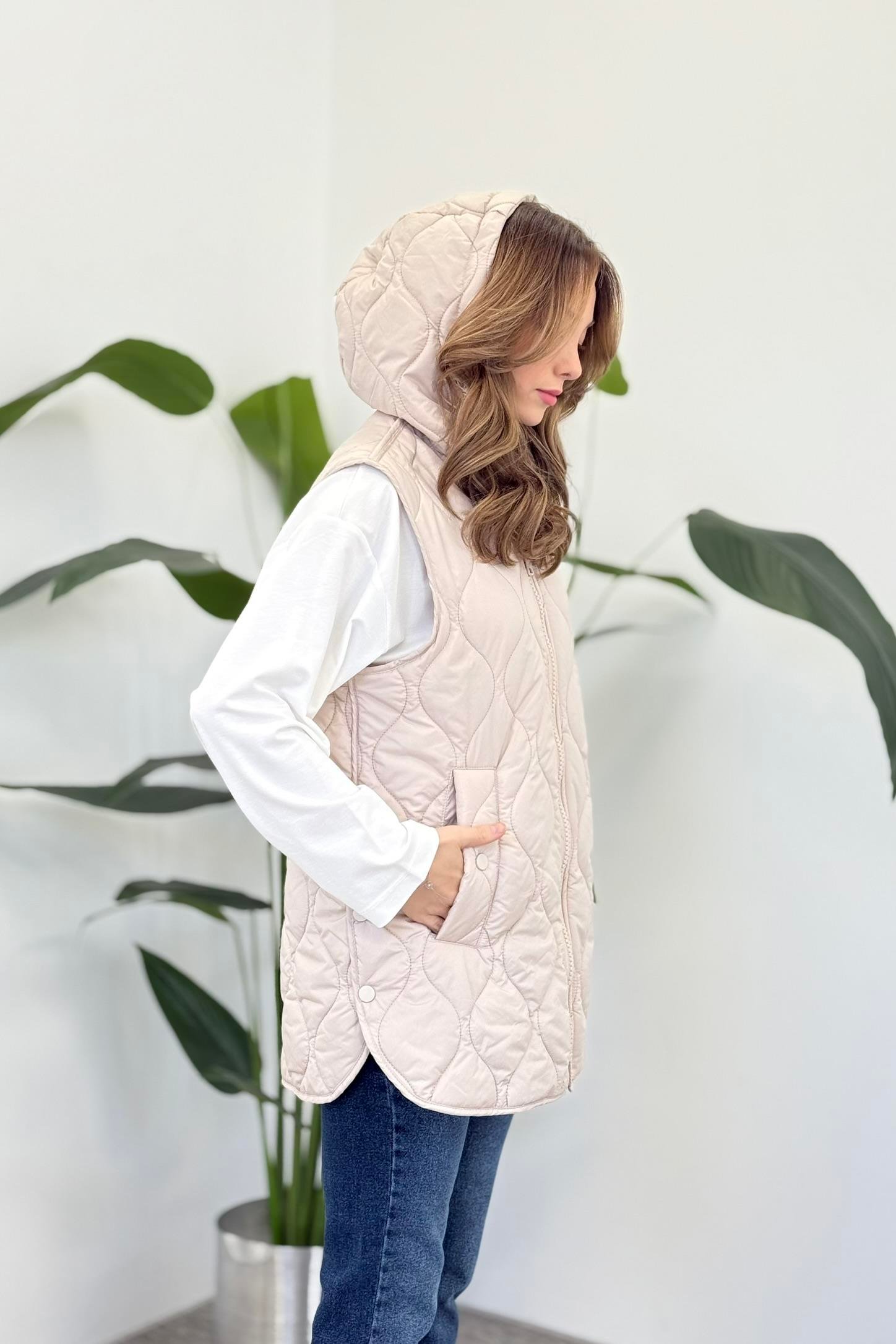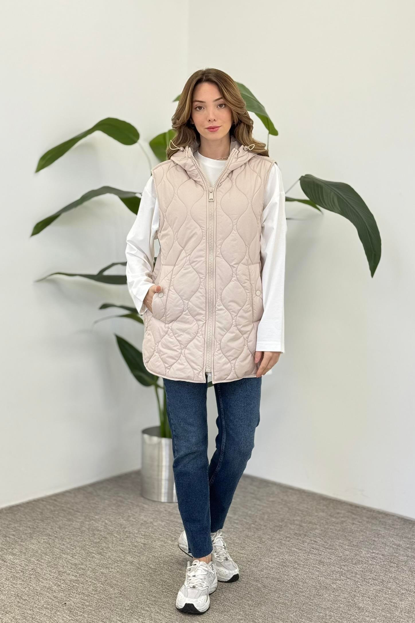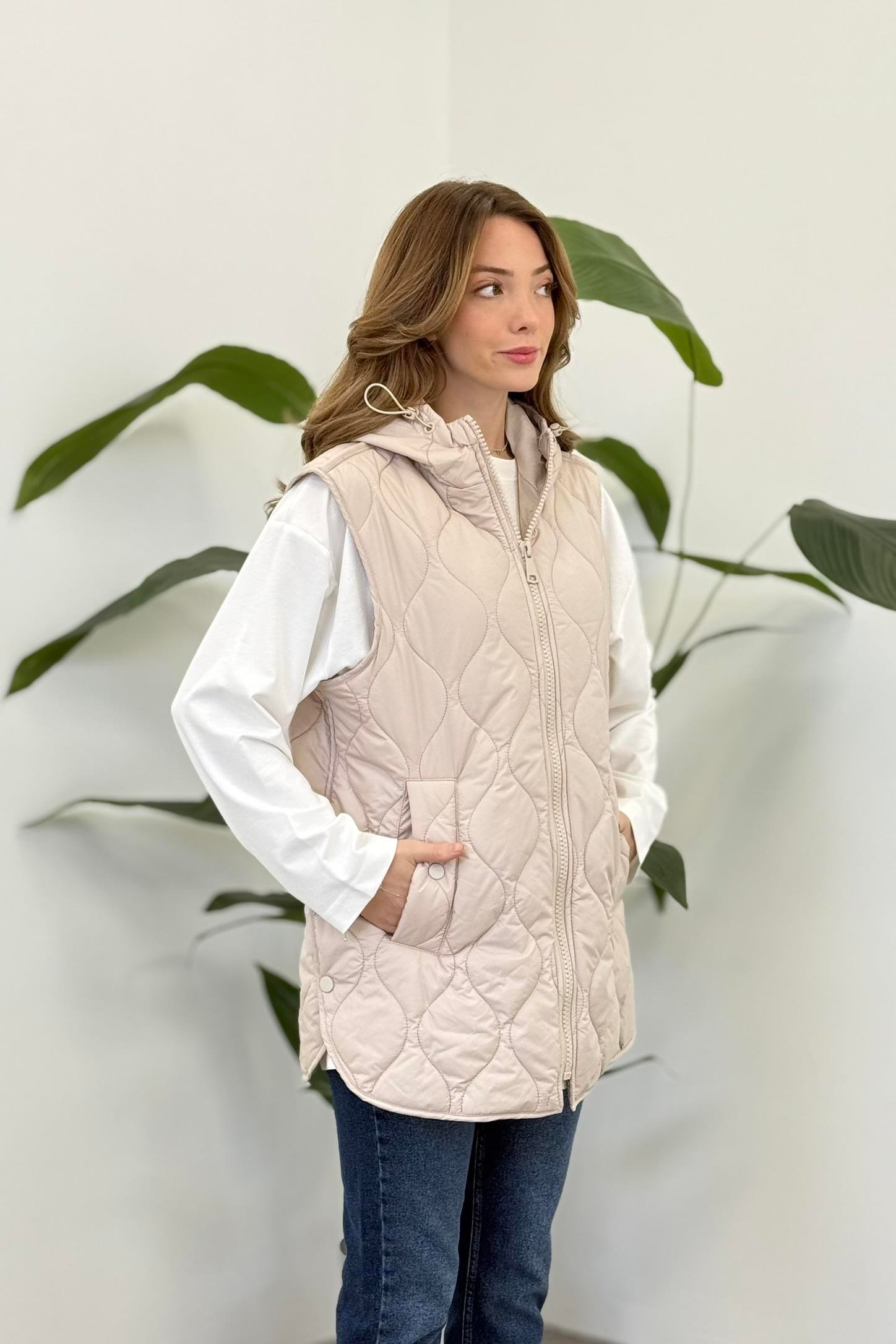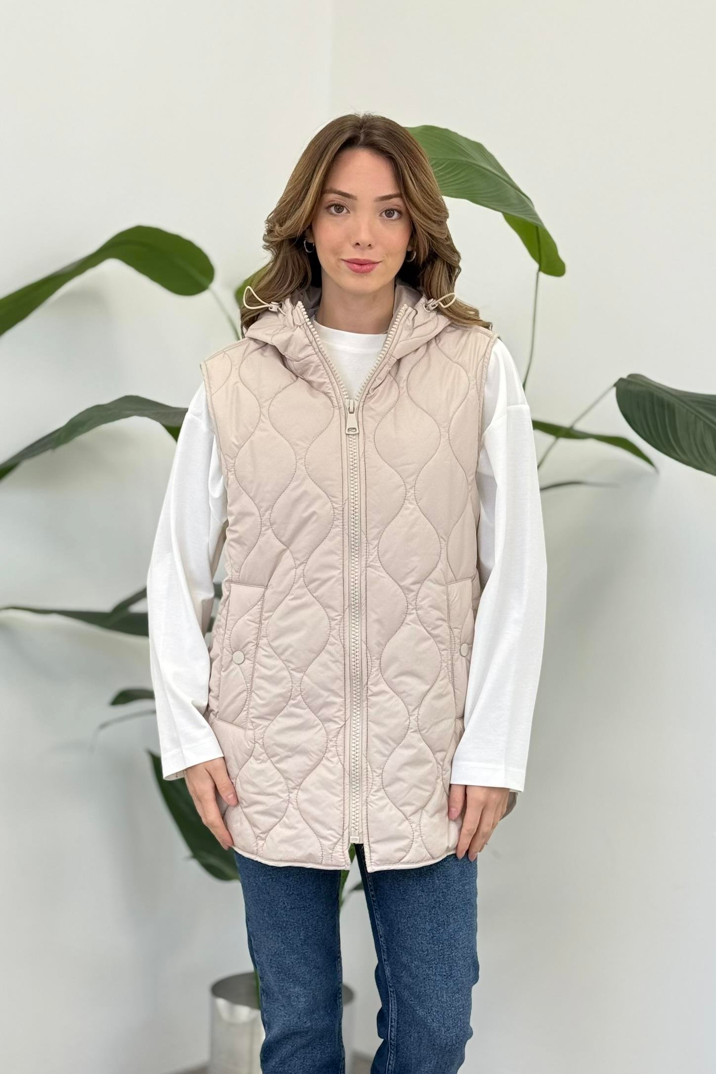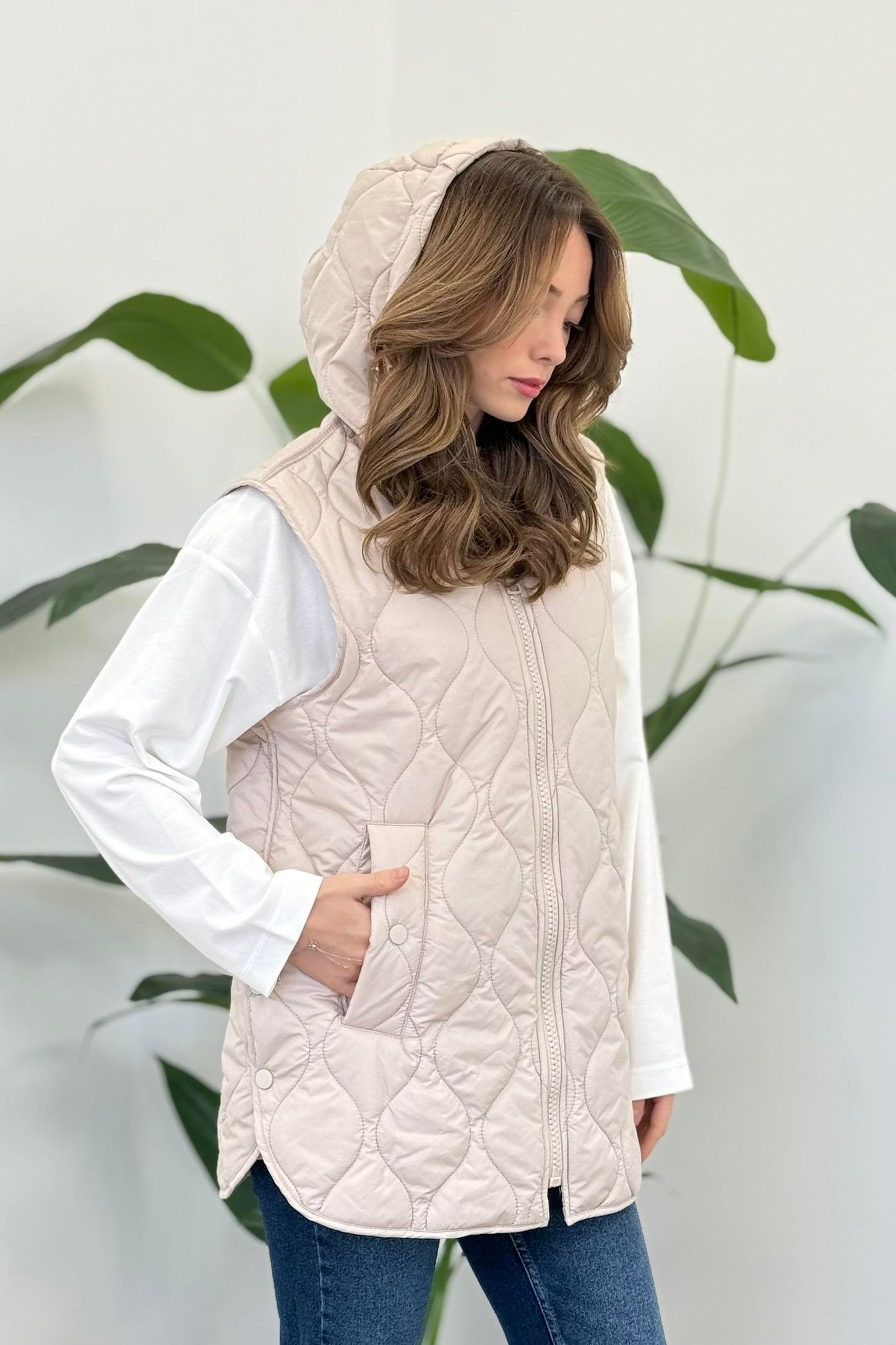 Kapişonlu Şişme Yelek 0035423 - Bej