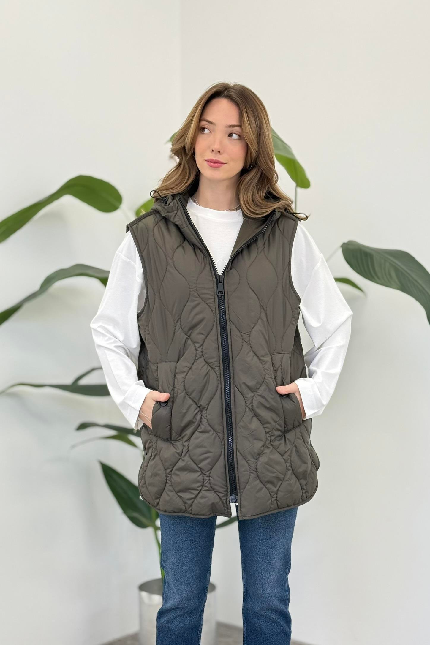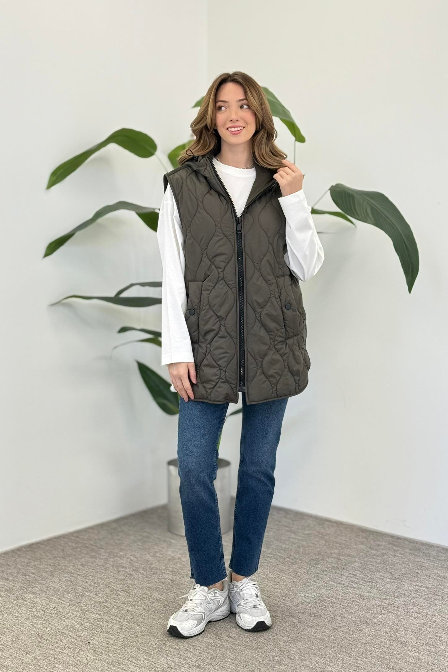 Kapişonlu Şişme Yelek 0035423 - Haki