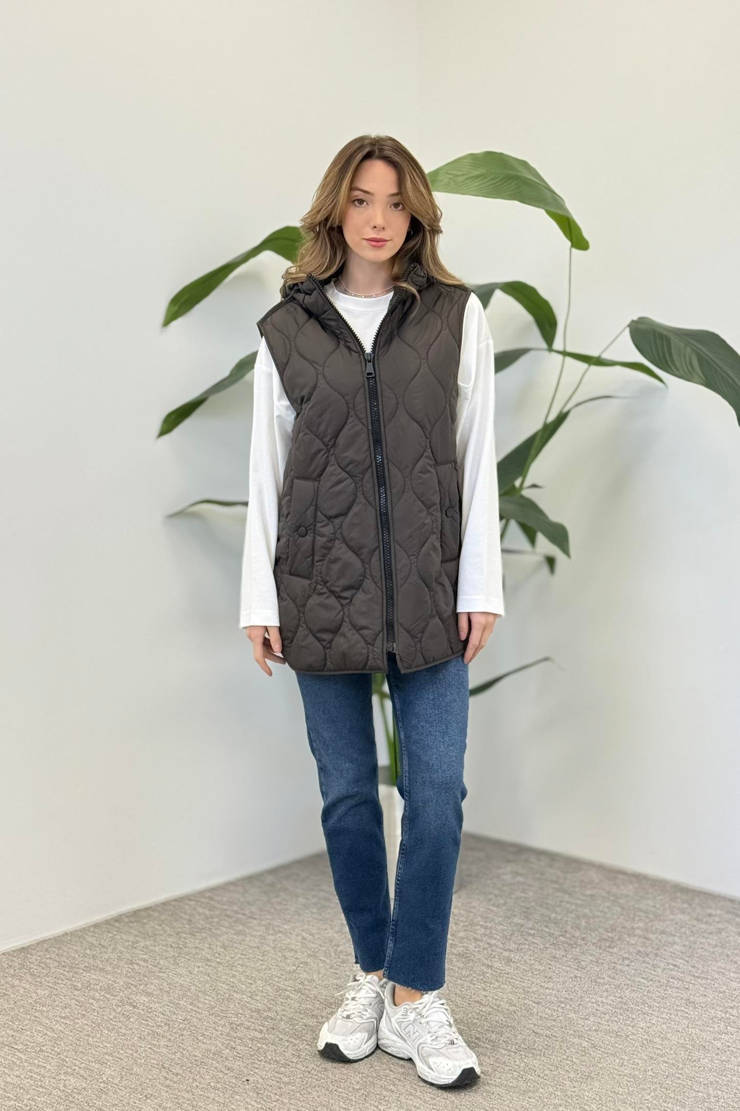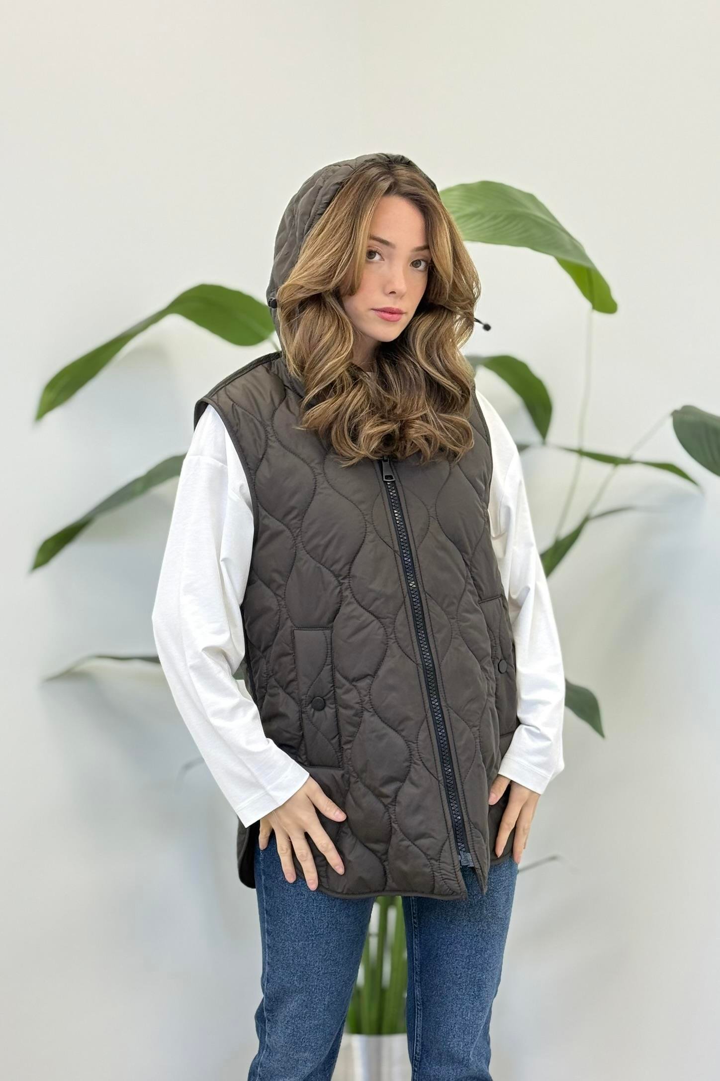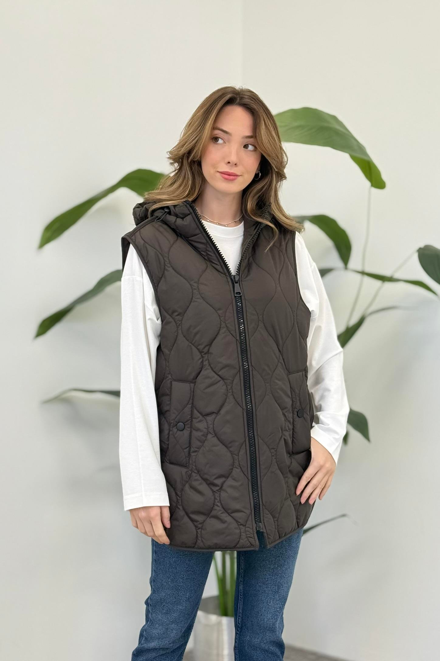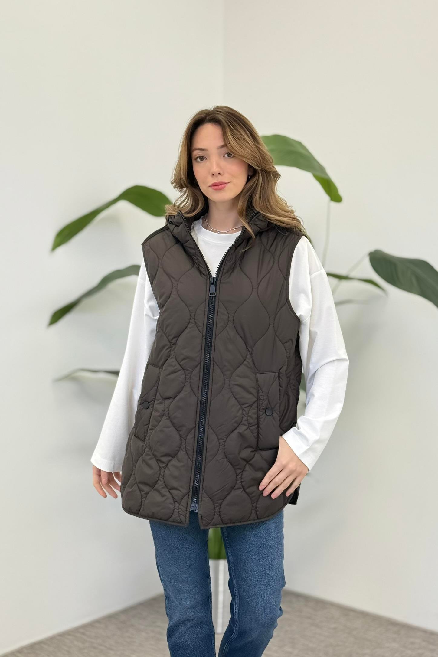 Kapişonlu Şişme Yelek 0035423 - Kahve