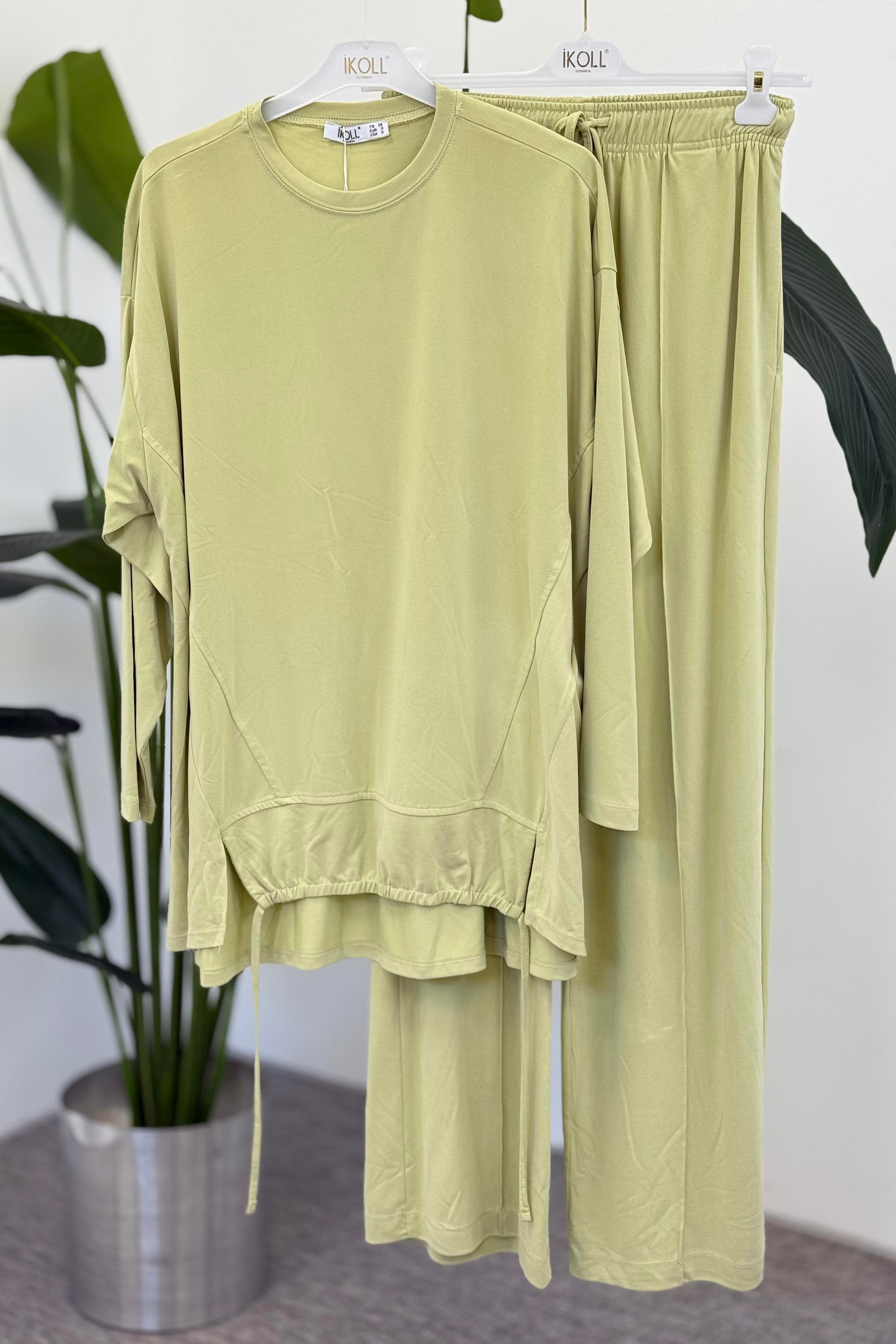 Kesik Ve Büzgü Detaylı Takım 0034319 - Açık Lime (350132803)