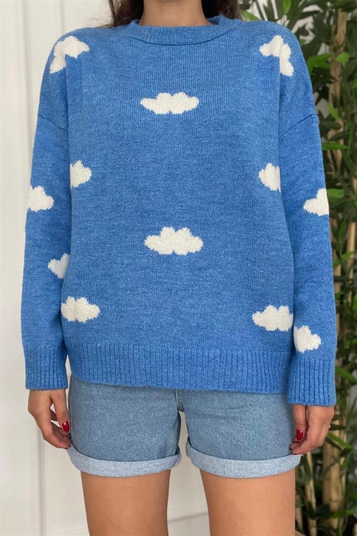 Kivi 3174 Küçük Bulutlu Kazak - Mavi (356175108)