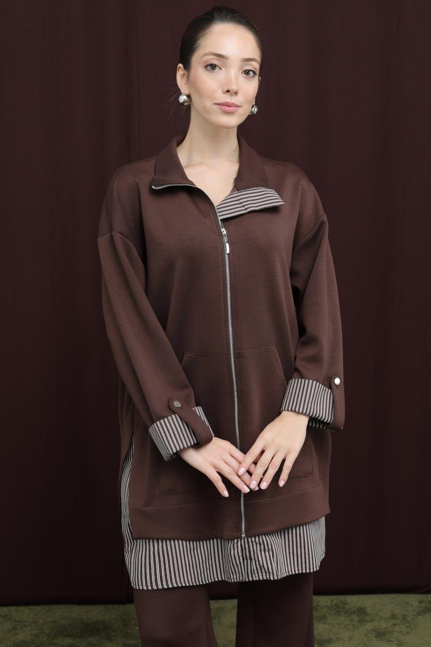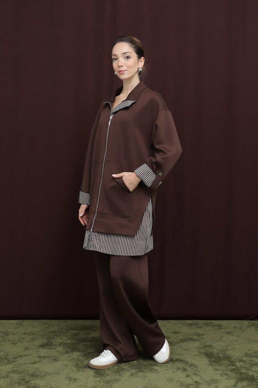 Kol Katlamalı Çizgi Detay Pantolonlu Takım 14383 - Browni (350251911)