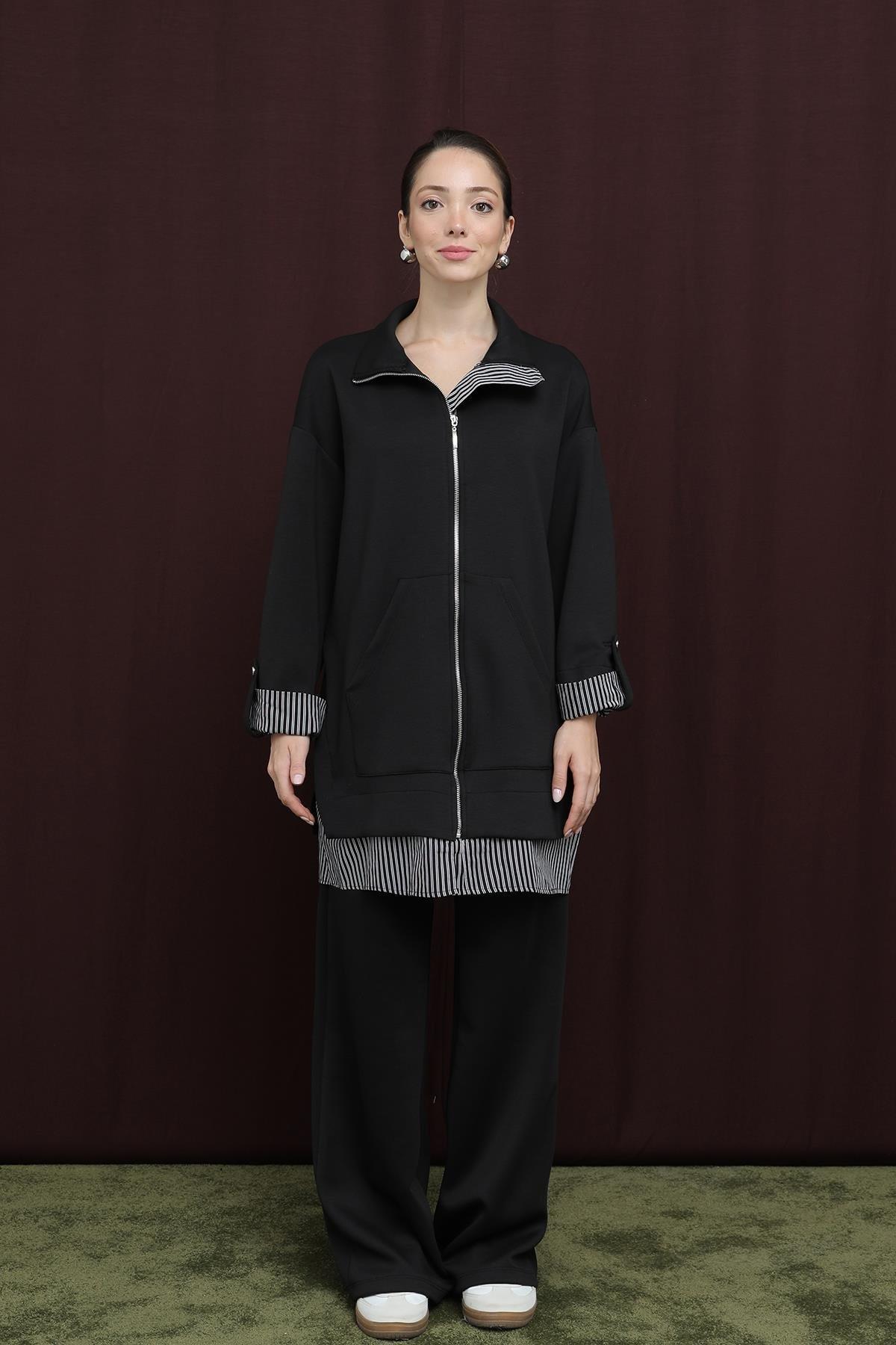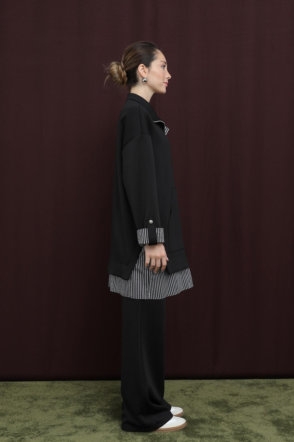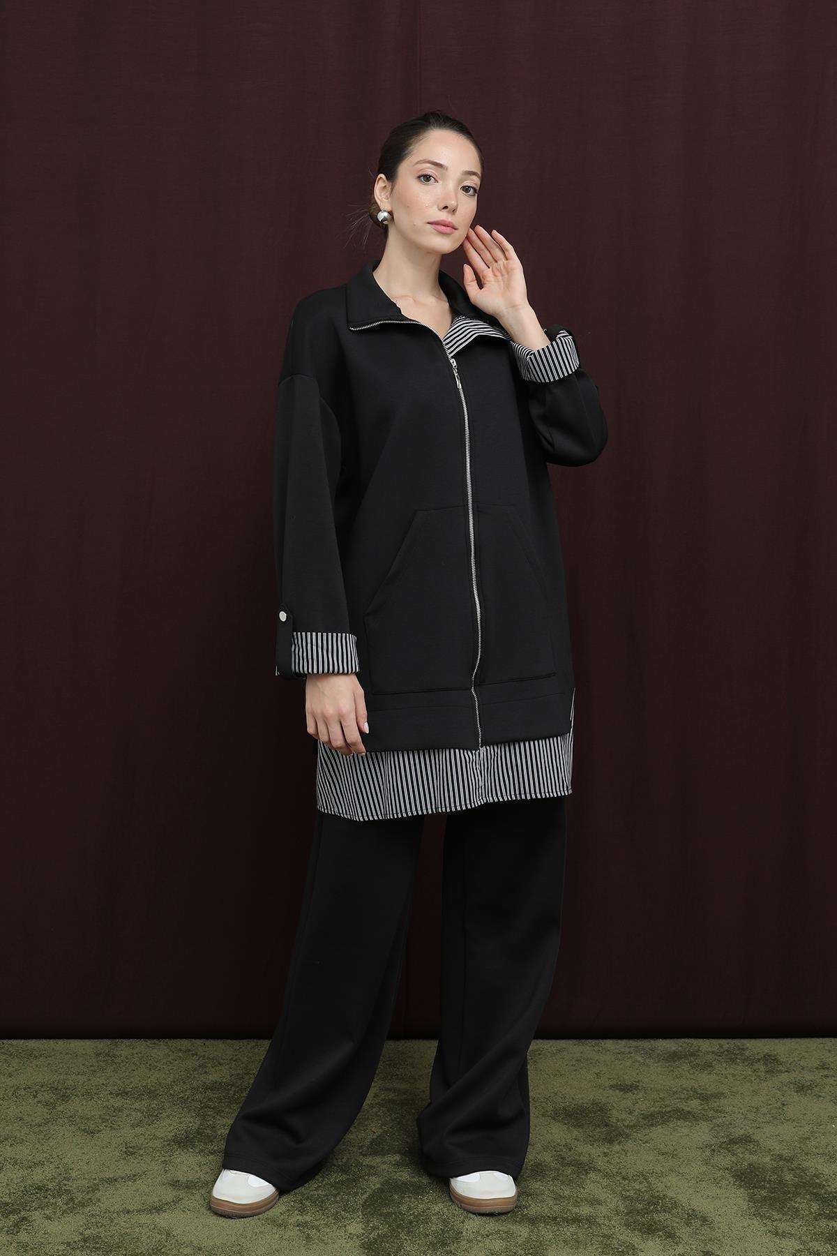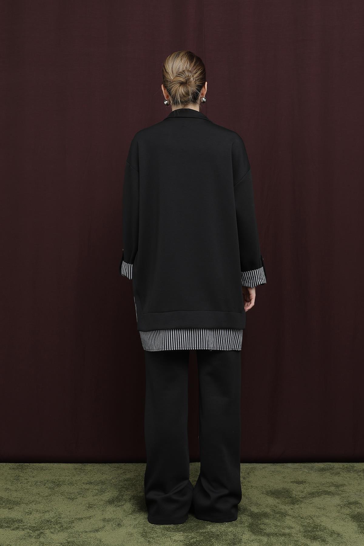 Kol Katlamalı Çizgi Detay Pantolonlu Takım 14383 - Siyah (350251911)