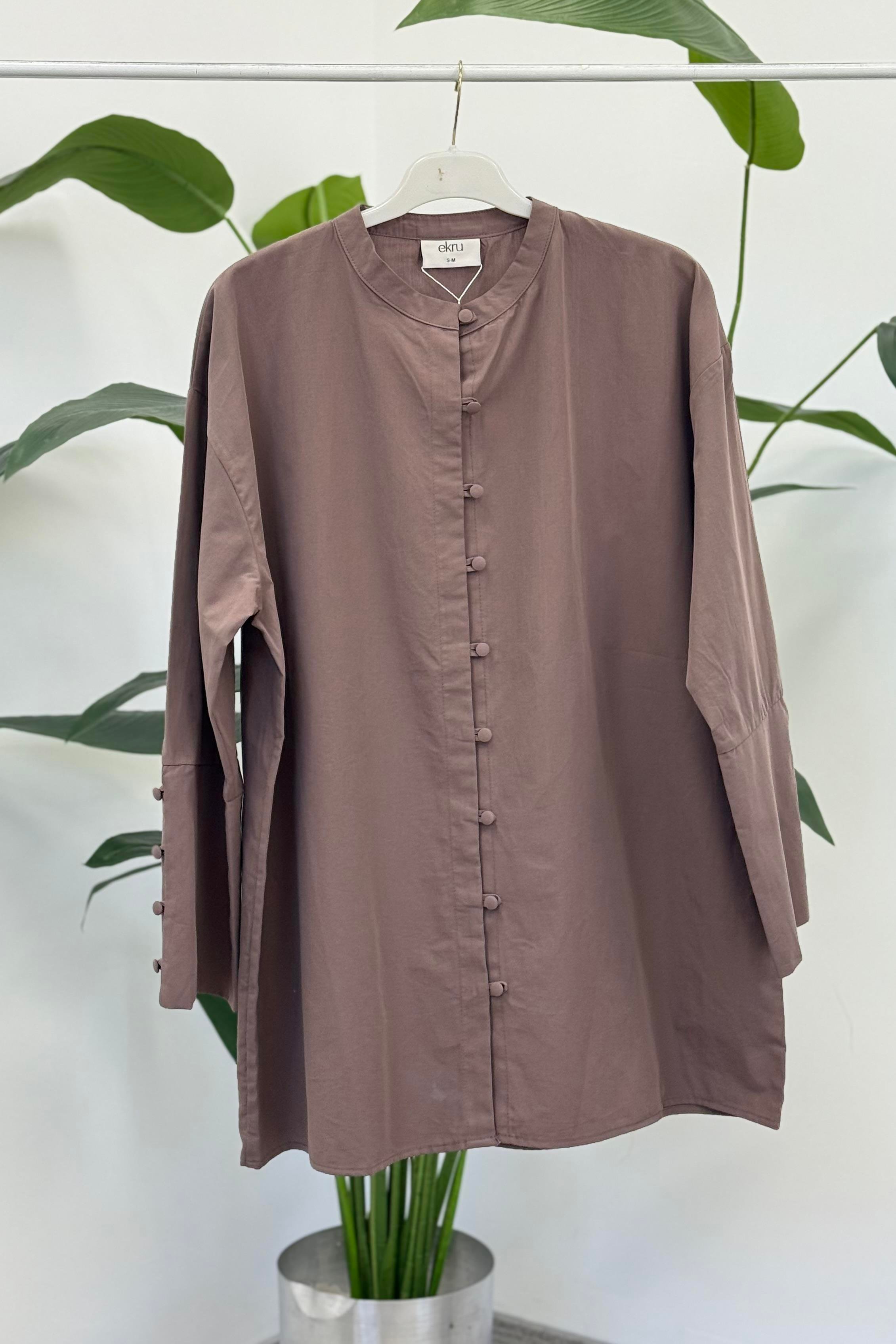 Kol Manşeti Düğme Detaylı Gömlek Tunik 2998 - Vizon