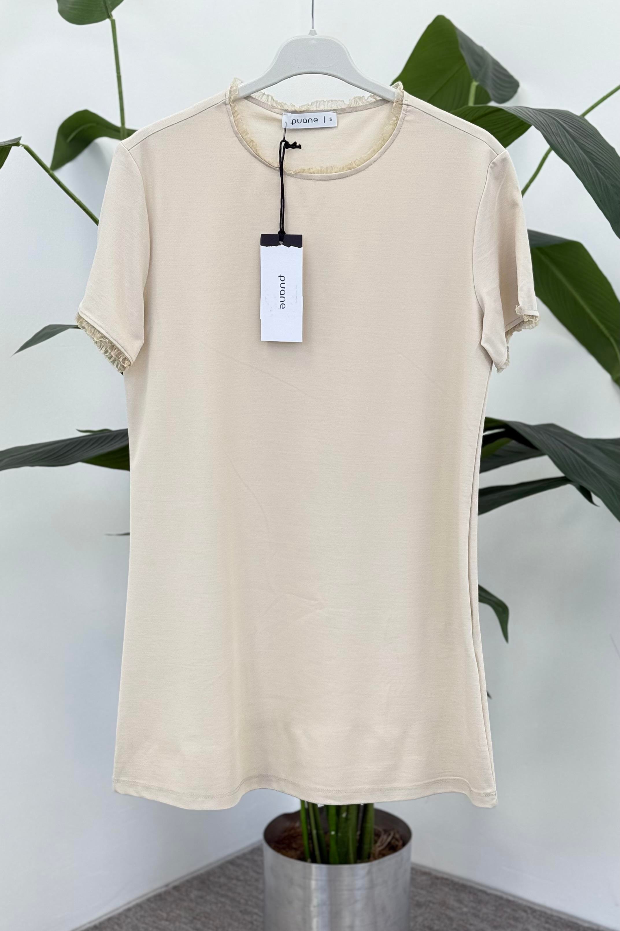 Kol ve Yaka Dantel Detay İçlik 40013 - Bej