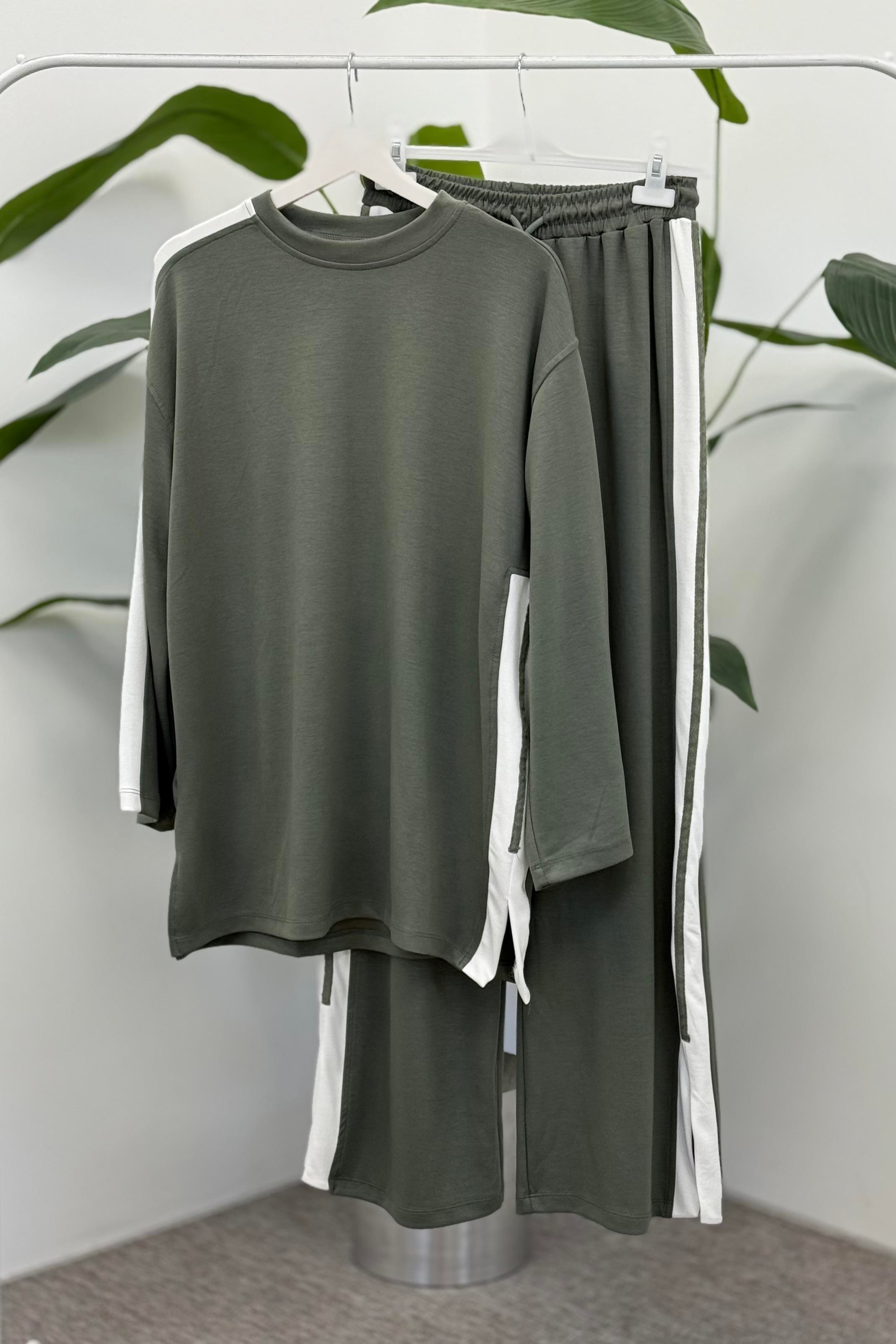Kontrast Garni Detaylı Takım 3047 - Haki