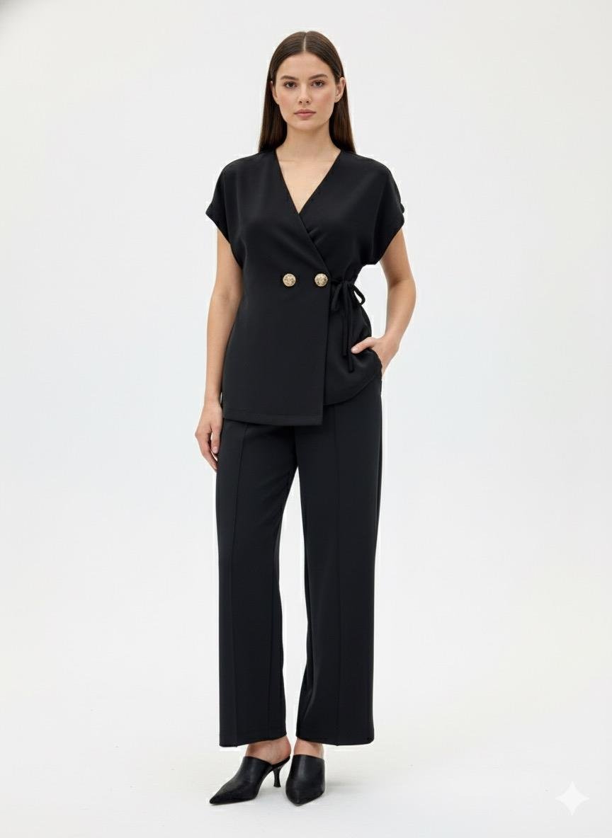 Kruvaze Pantolonlu Takım 0035717 - Siyah