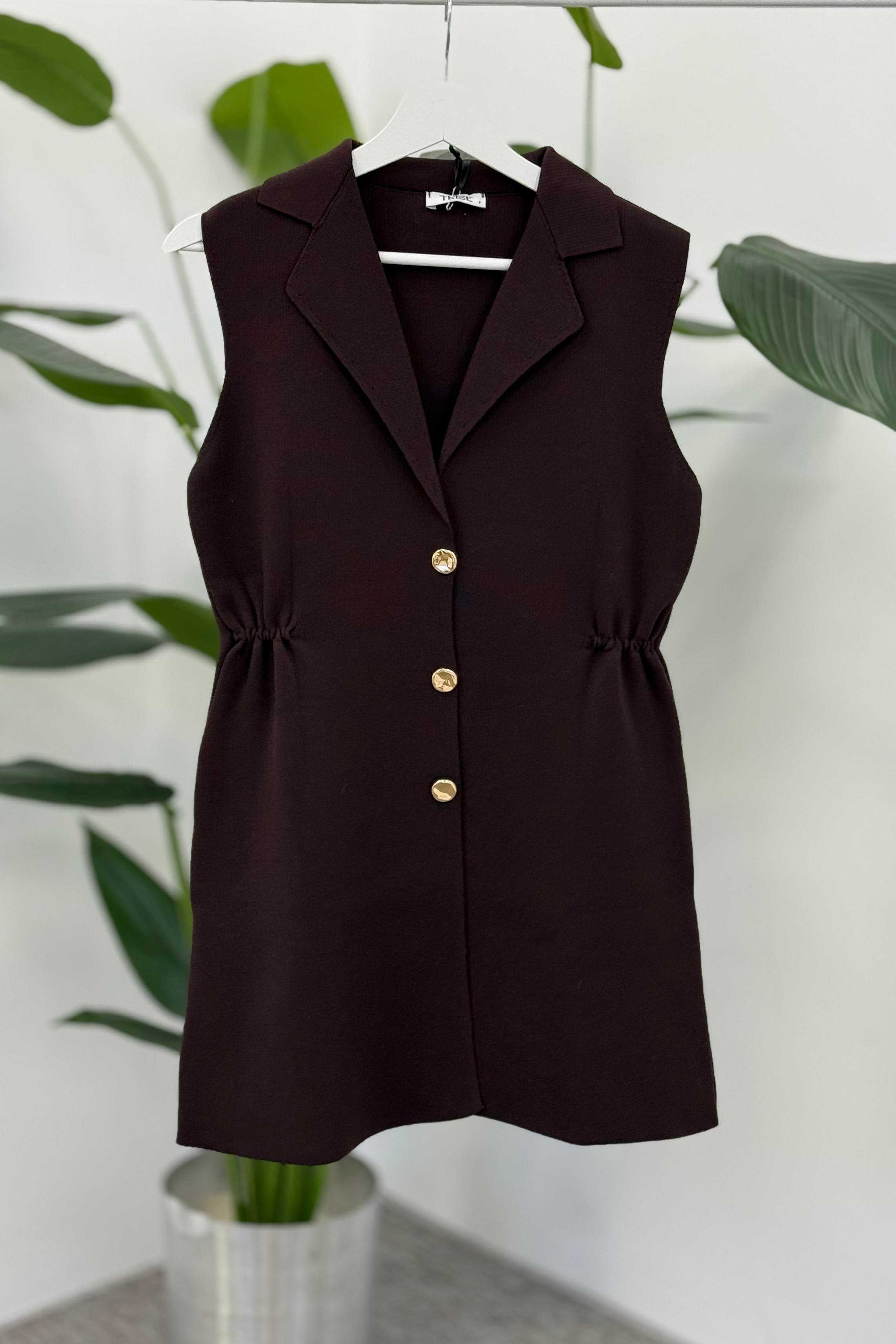 Kruvaze Uzun Yelek 140437 - Kahve (367280900)
