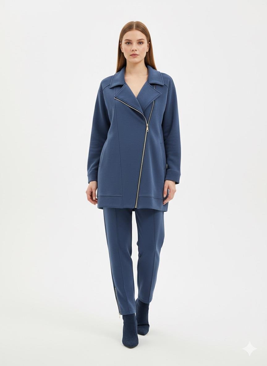 Kruvaze Yaka Pantolonlu Takım 3052 - İndigo
