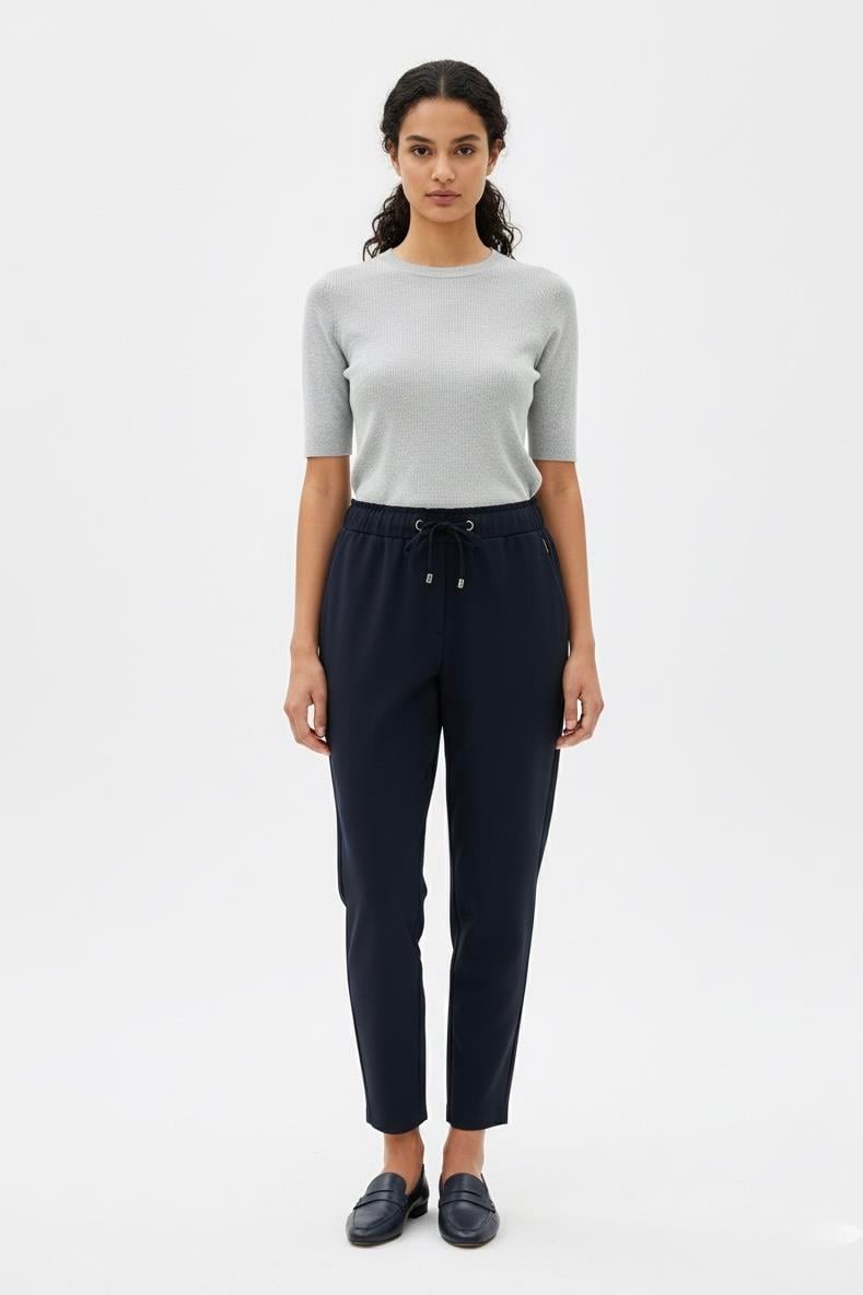 Kuş Gözü Detay Beli Lastikli Pantolon 1014 - Lacivert