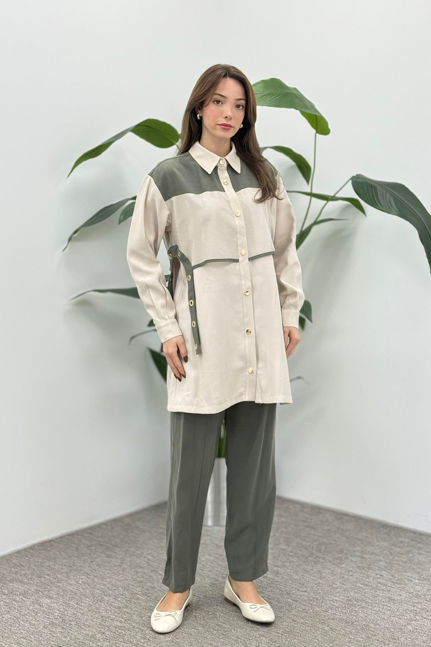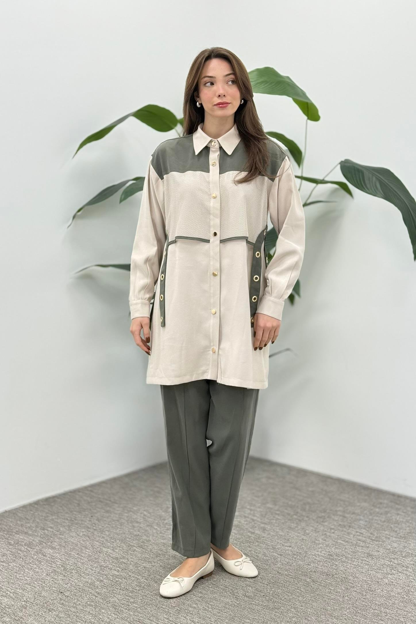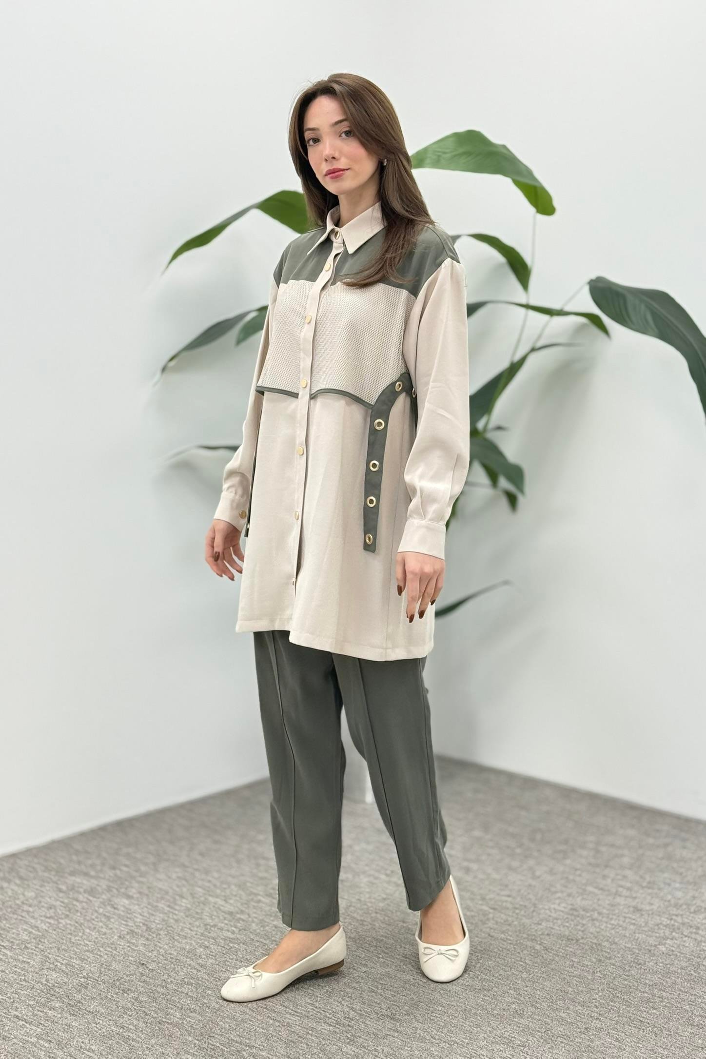 Kuş Gözü ve File Detay Pantolonlu Takım 1409 - Haki (350307922)