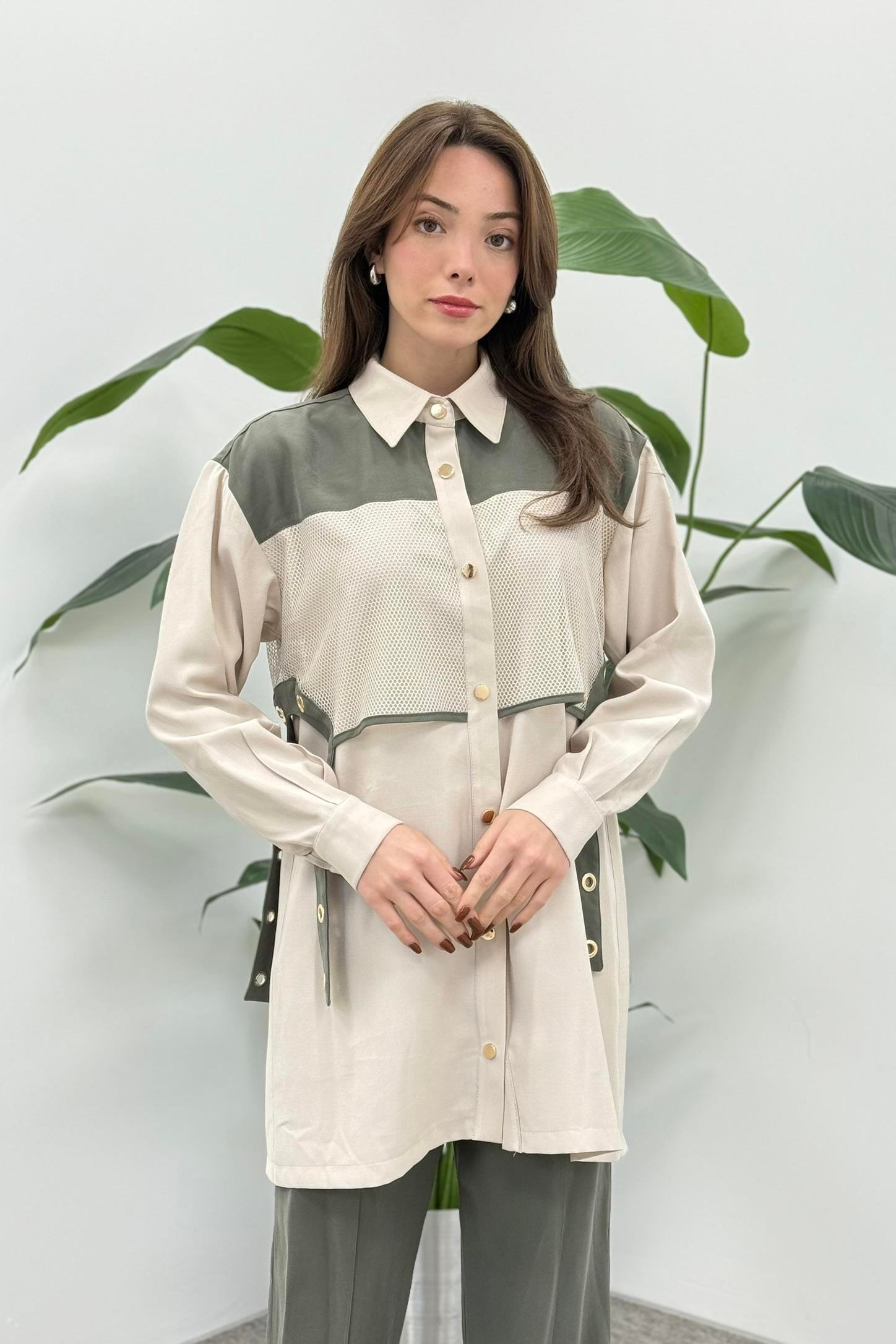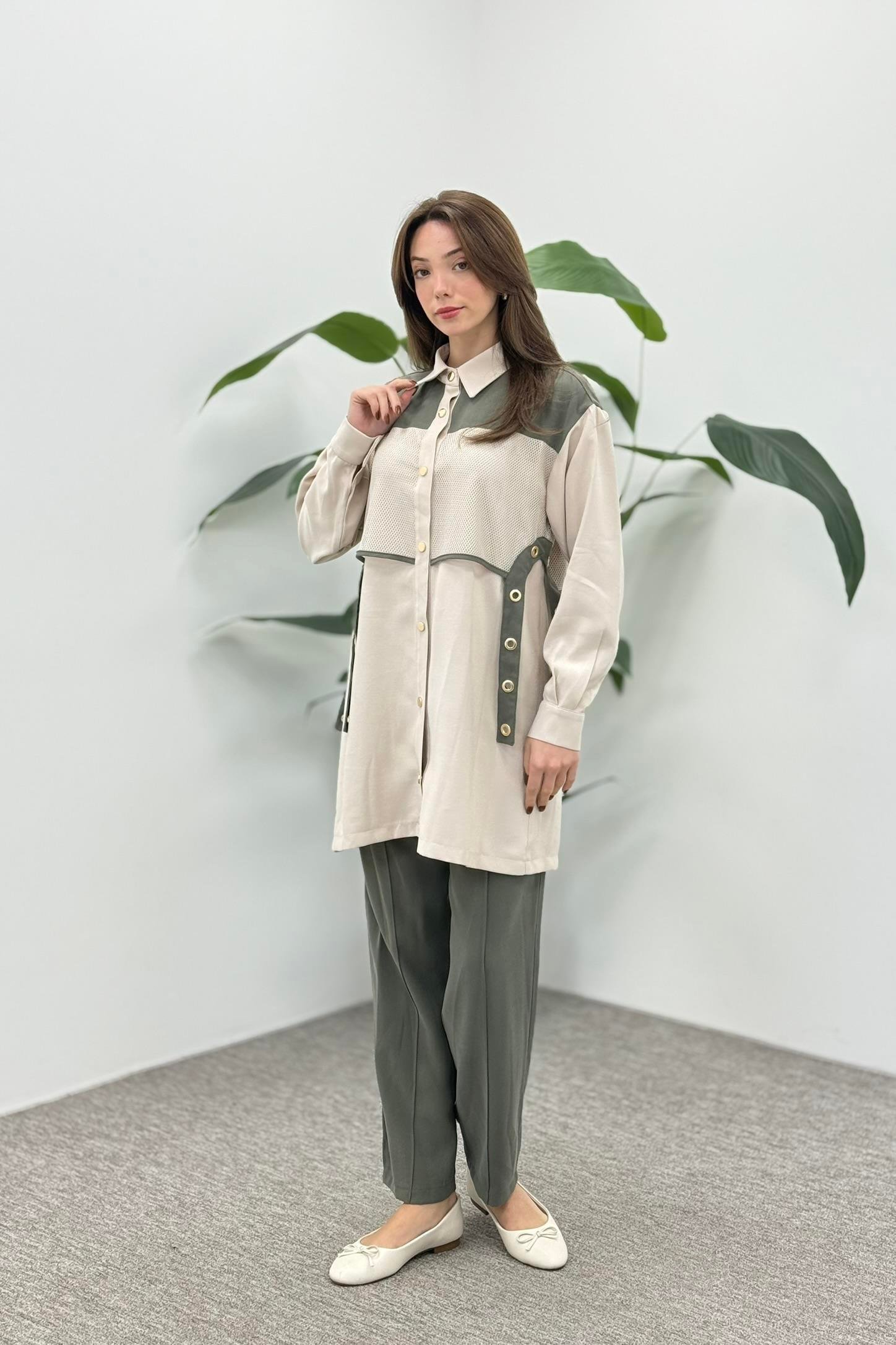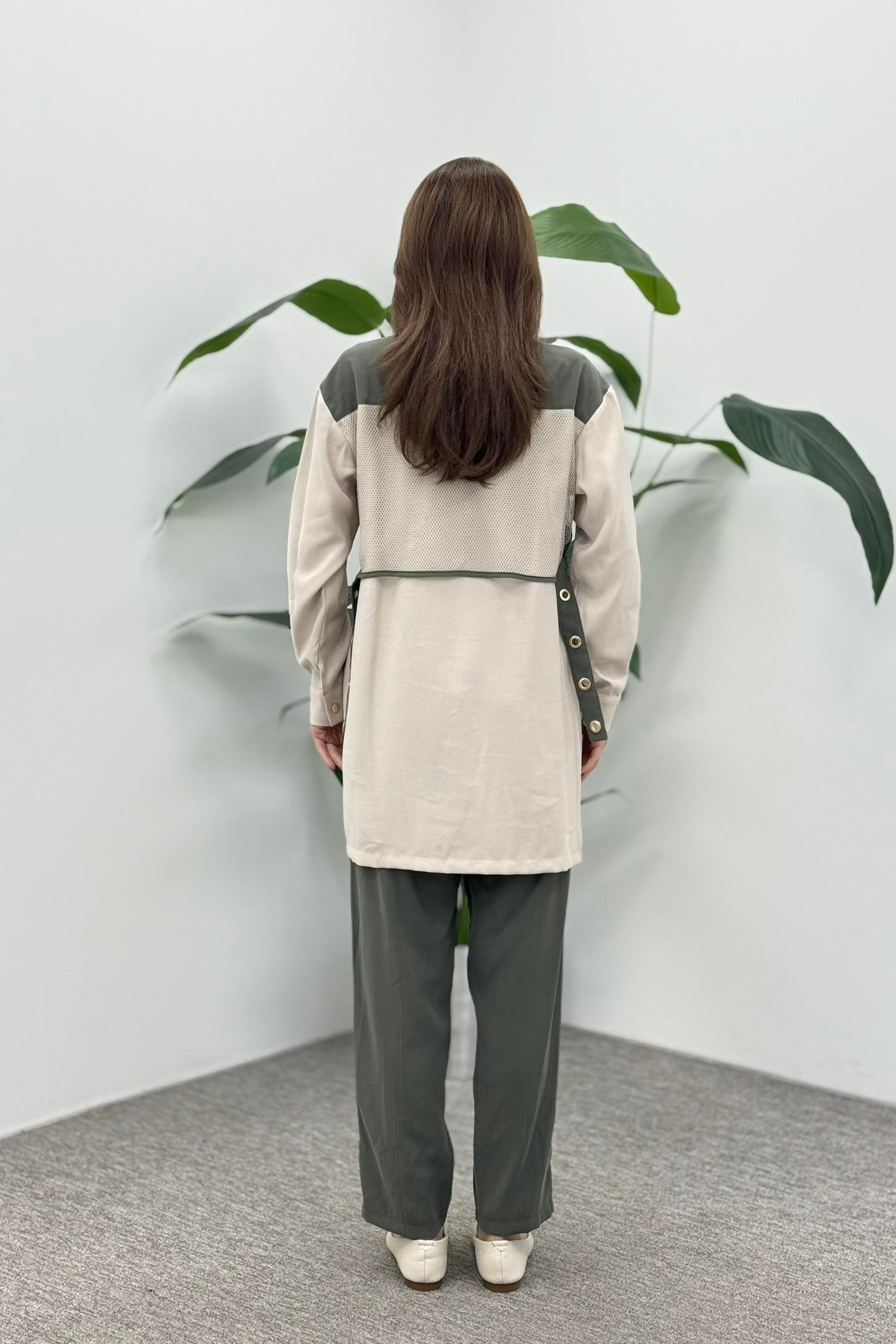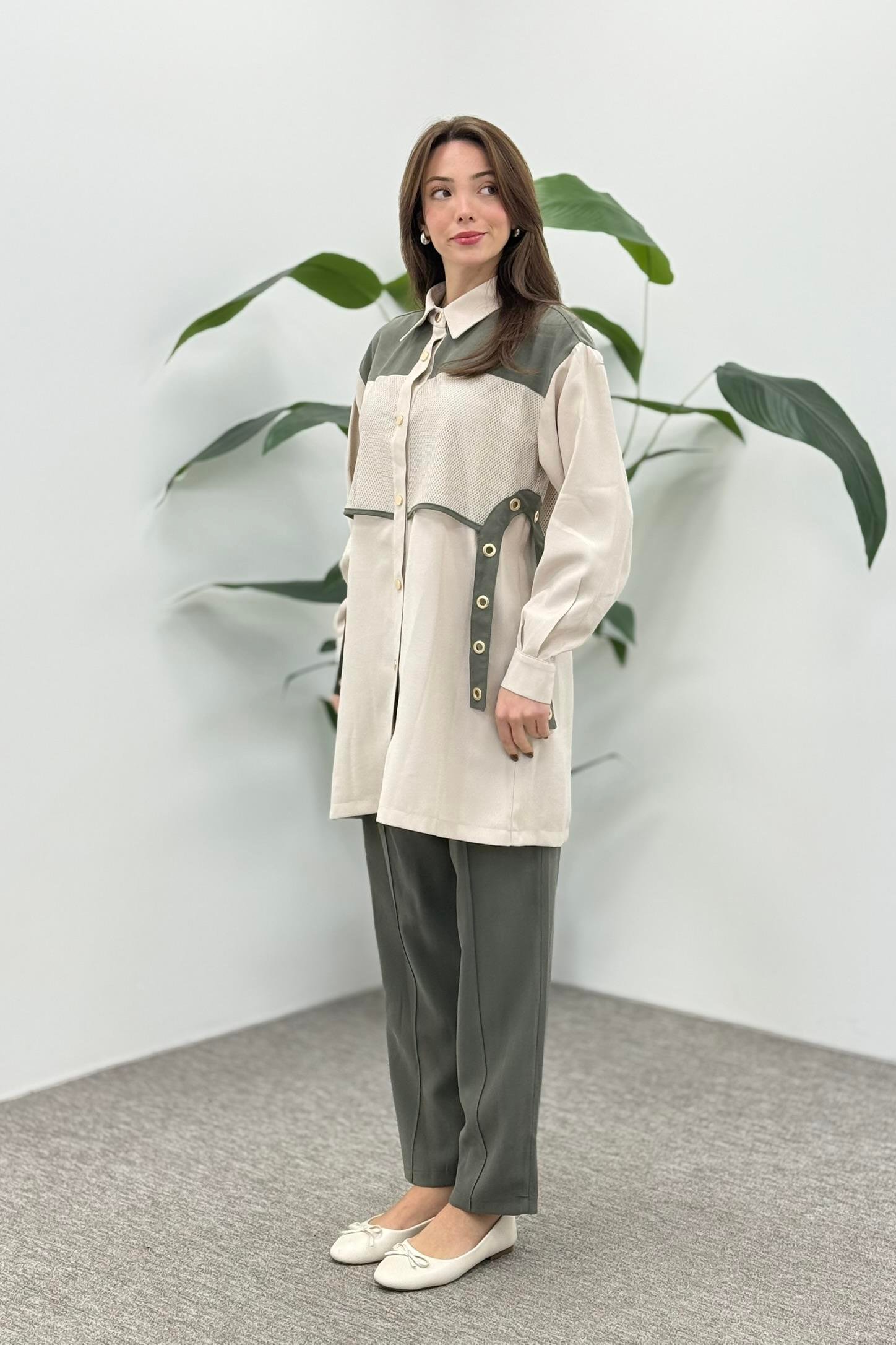 Kuş Gözü ve File Detay Pantolonlu Takım 1409 - Haki (350307922)