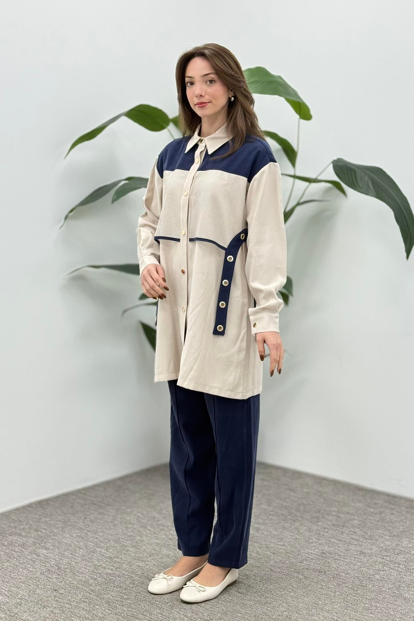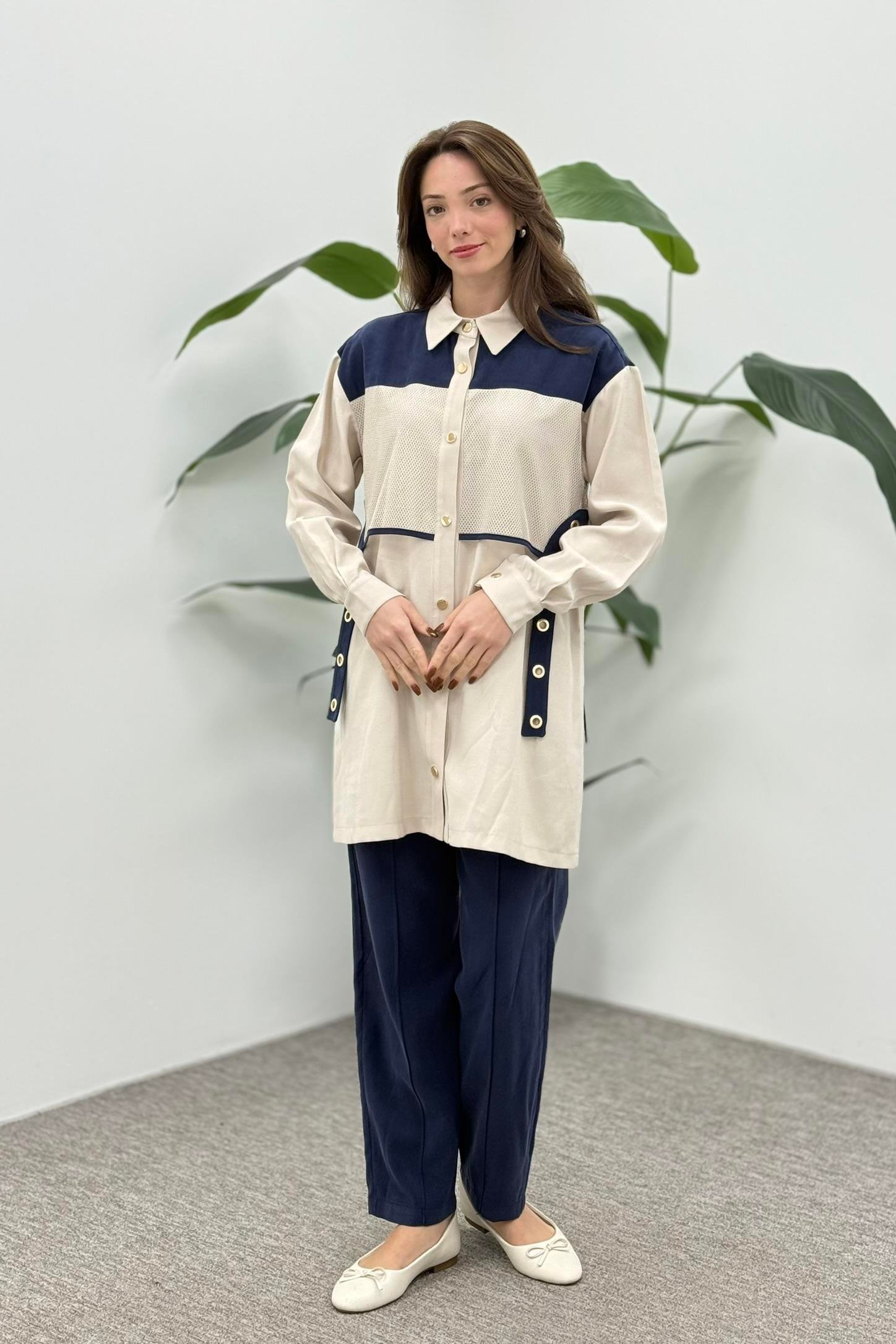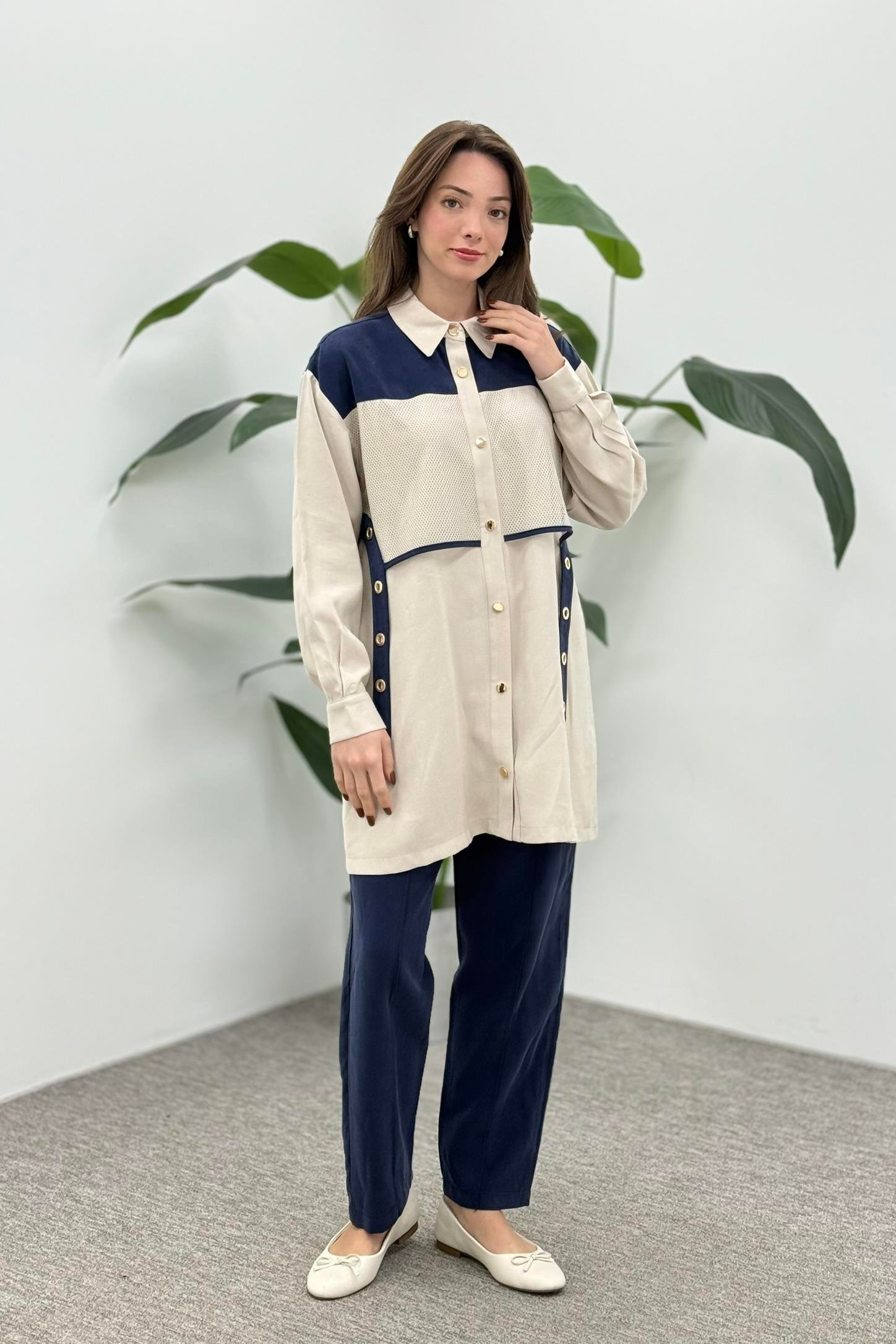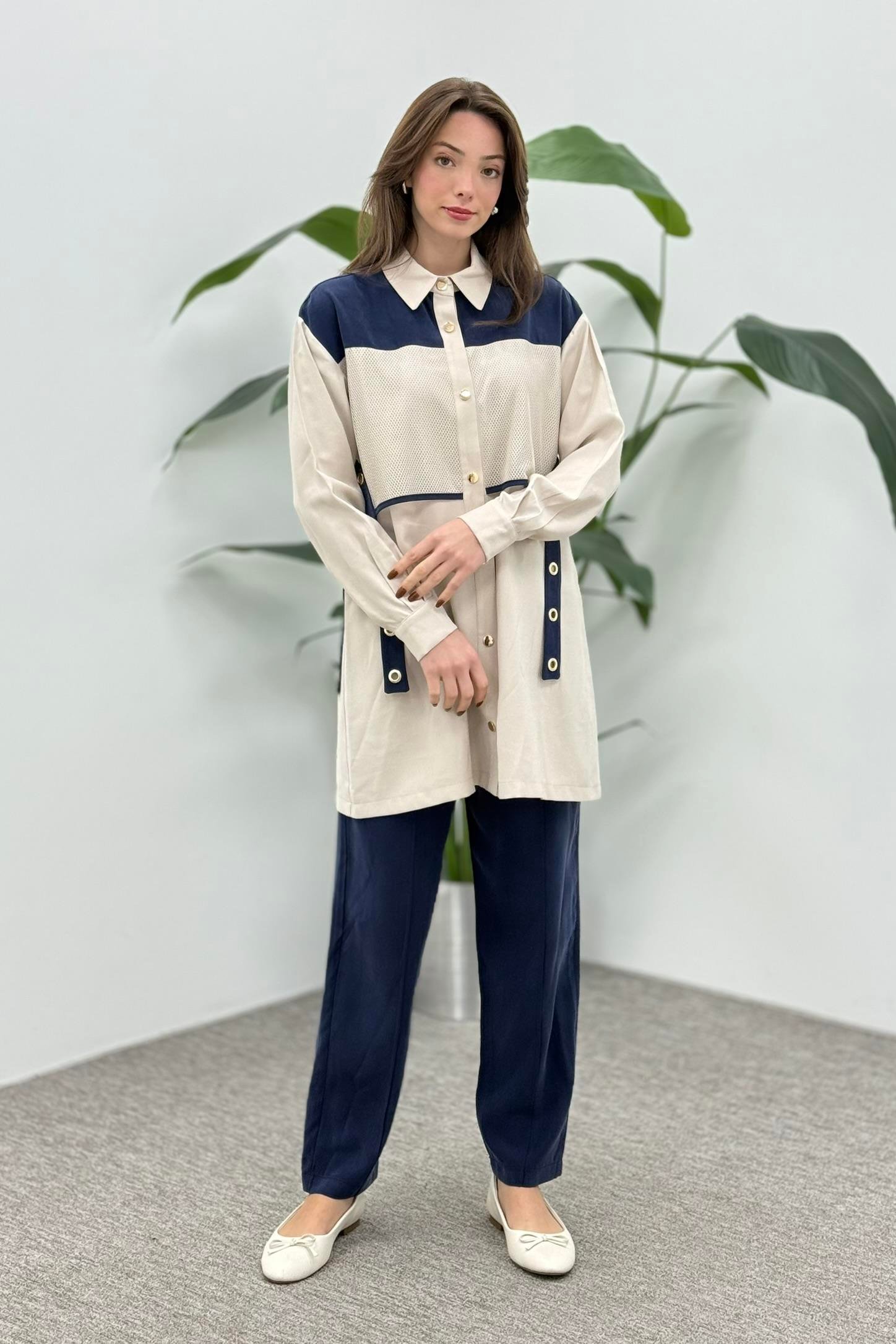 Kuş Gözü ve File Detay Pantolonlu Takım 1409 - Lacivert (350307922)