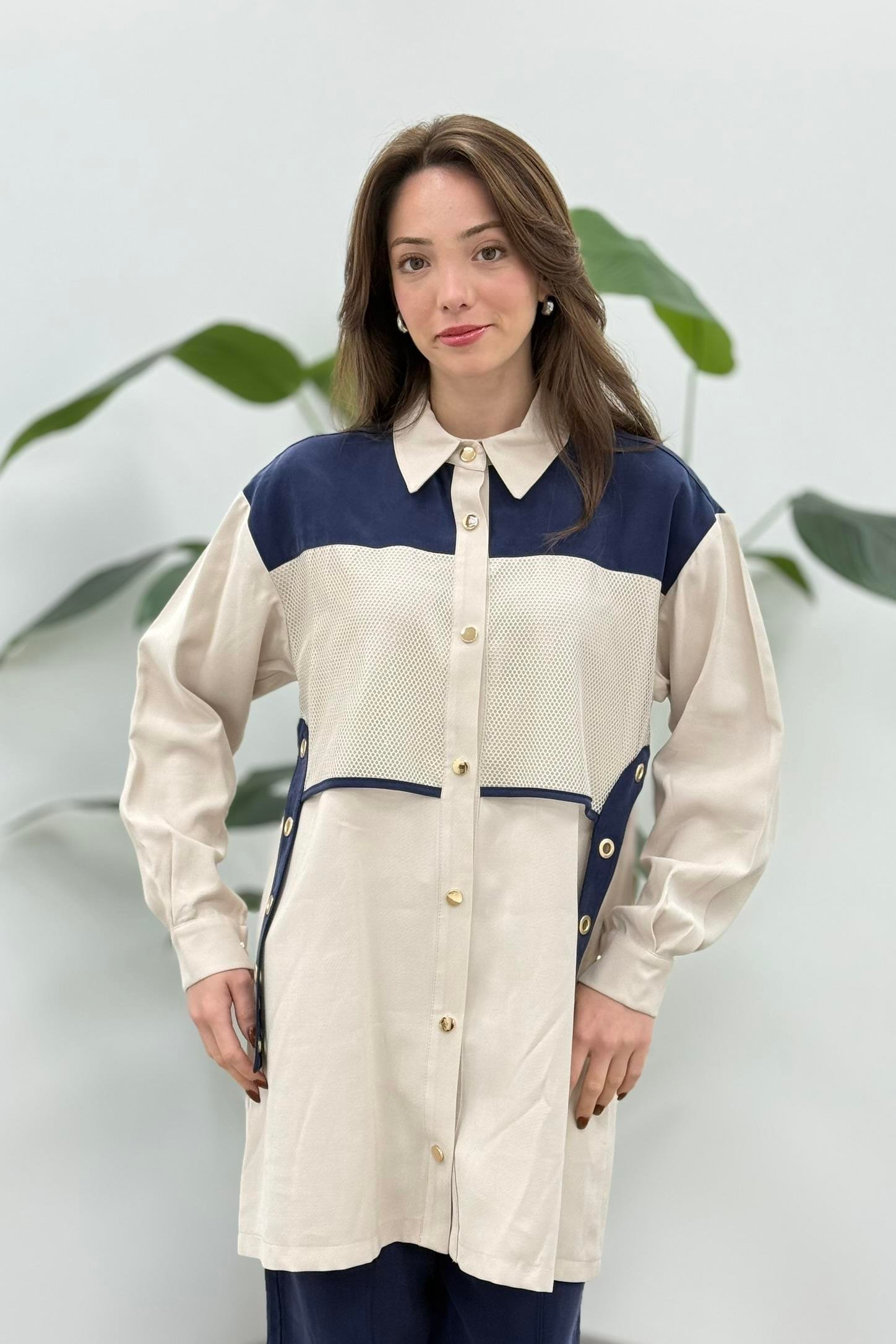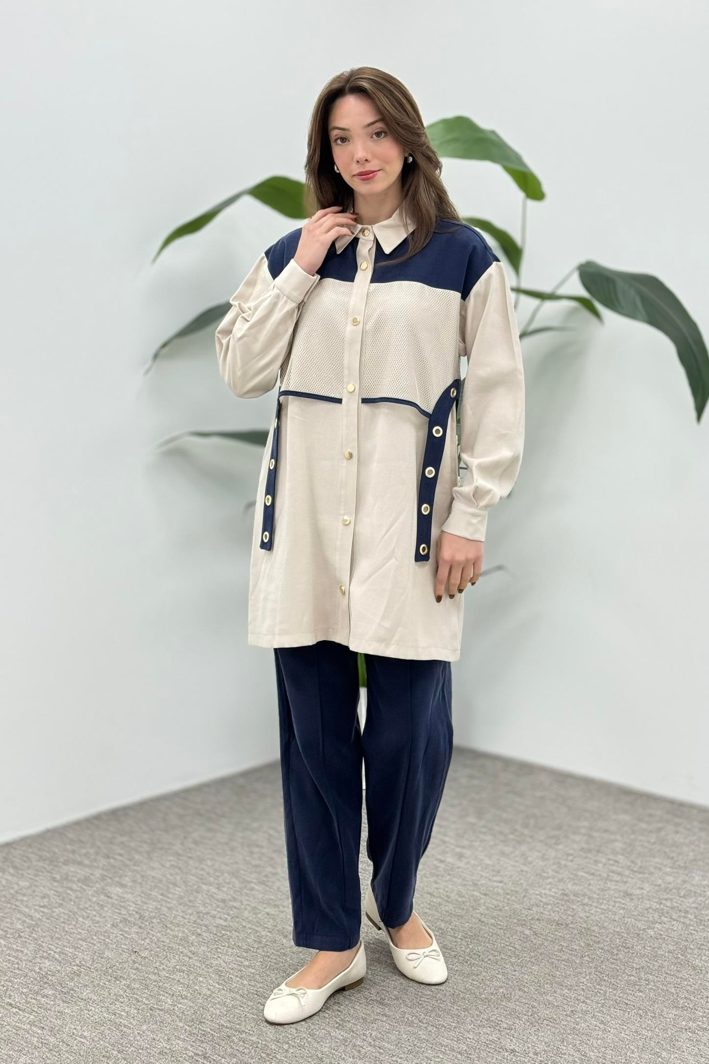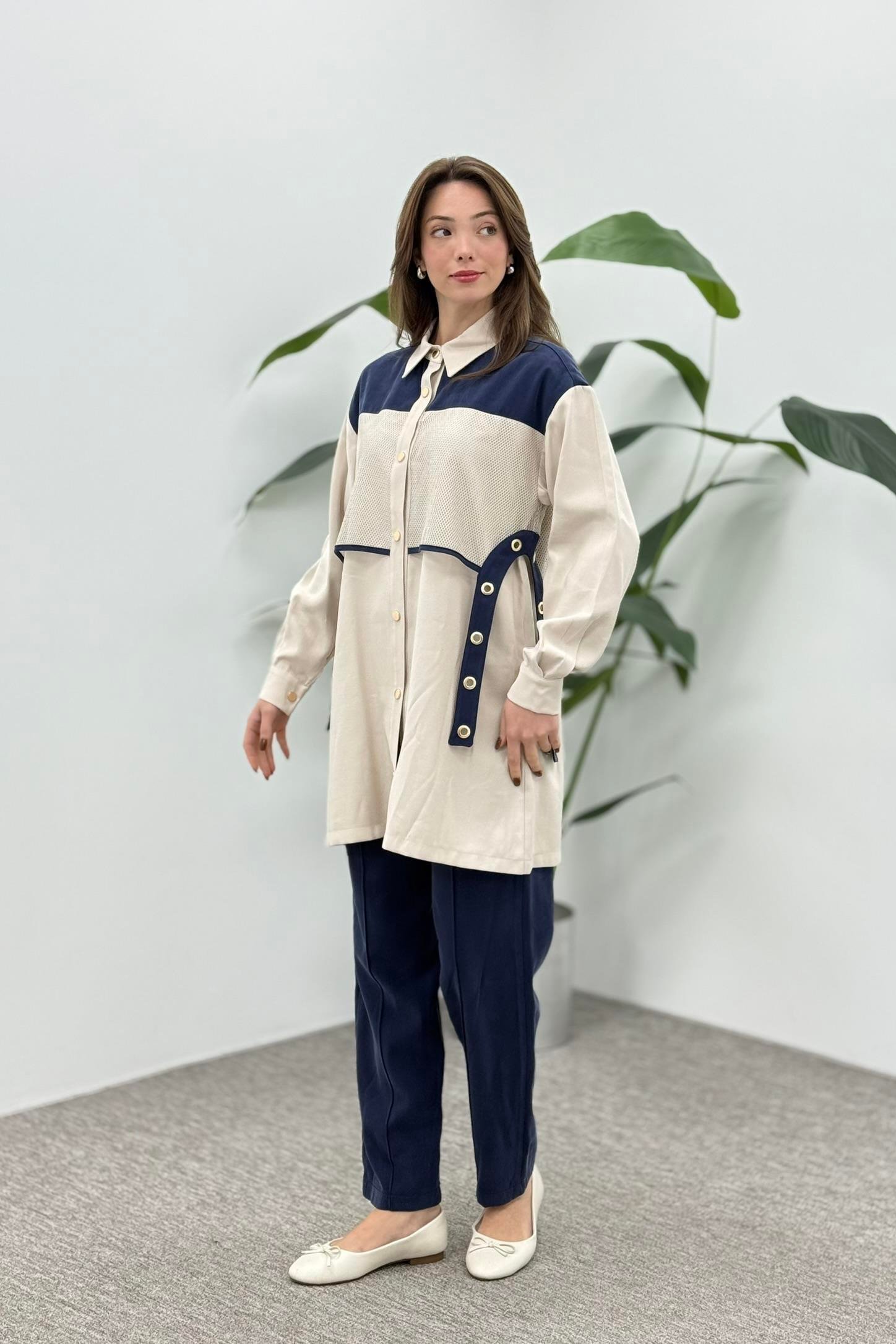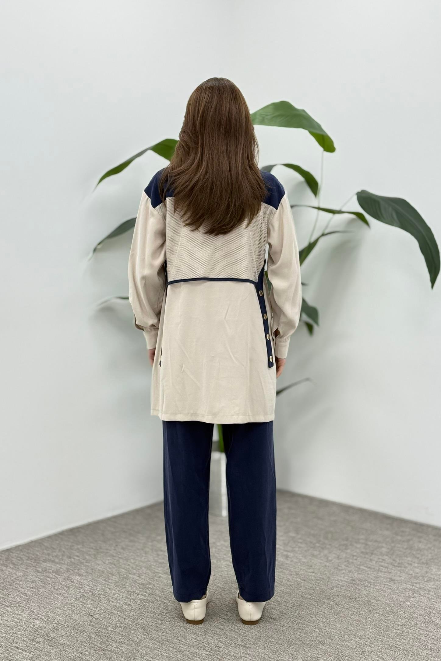 Kuş Gözü ve File Detay Pantolonlu Takım 1409 - Lacivert (350307922)