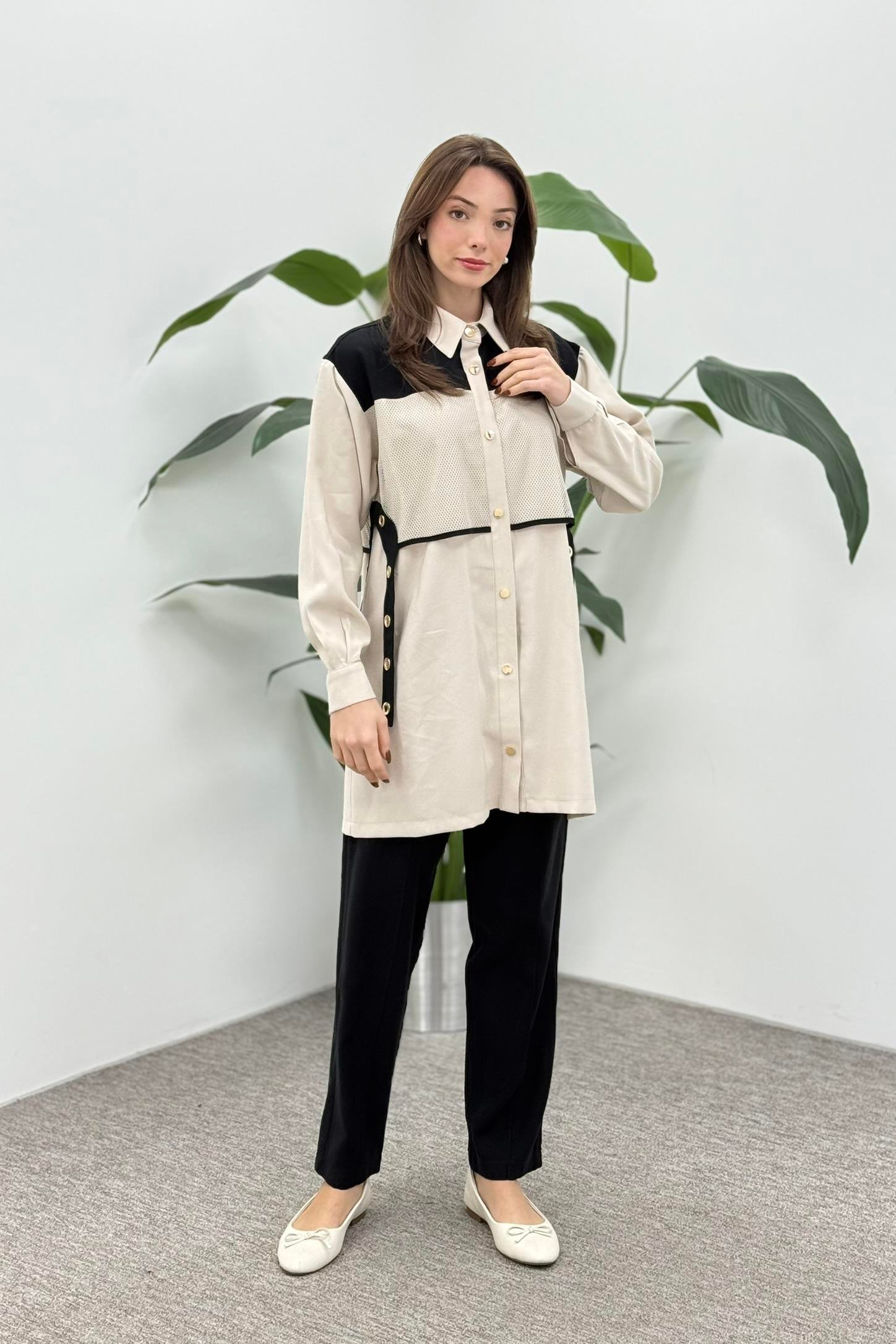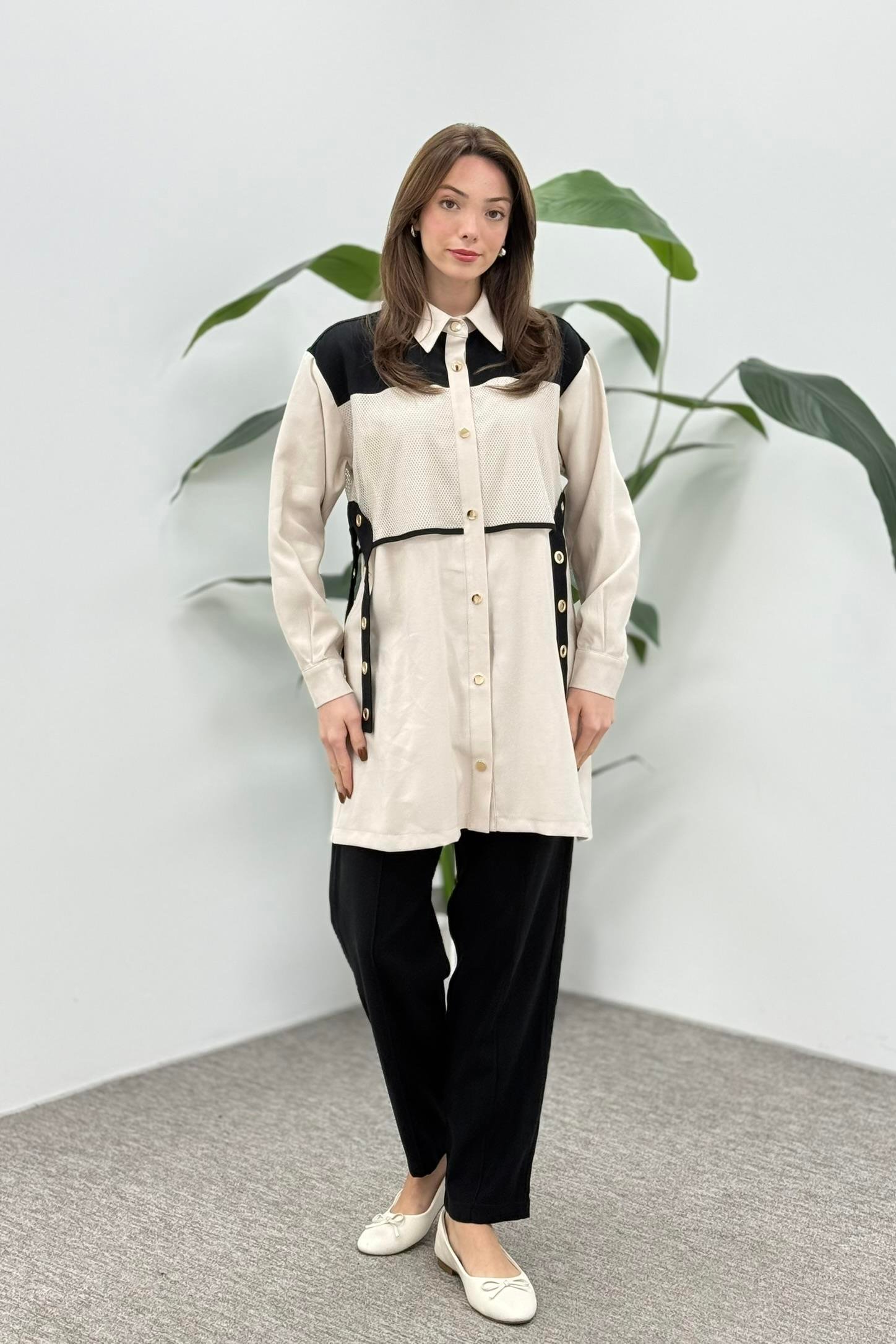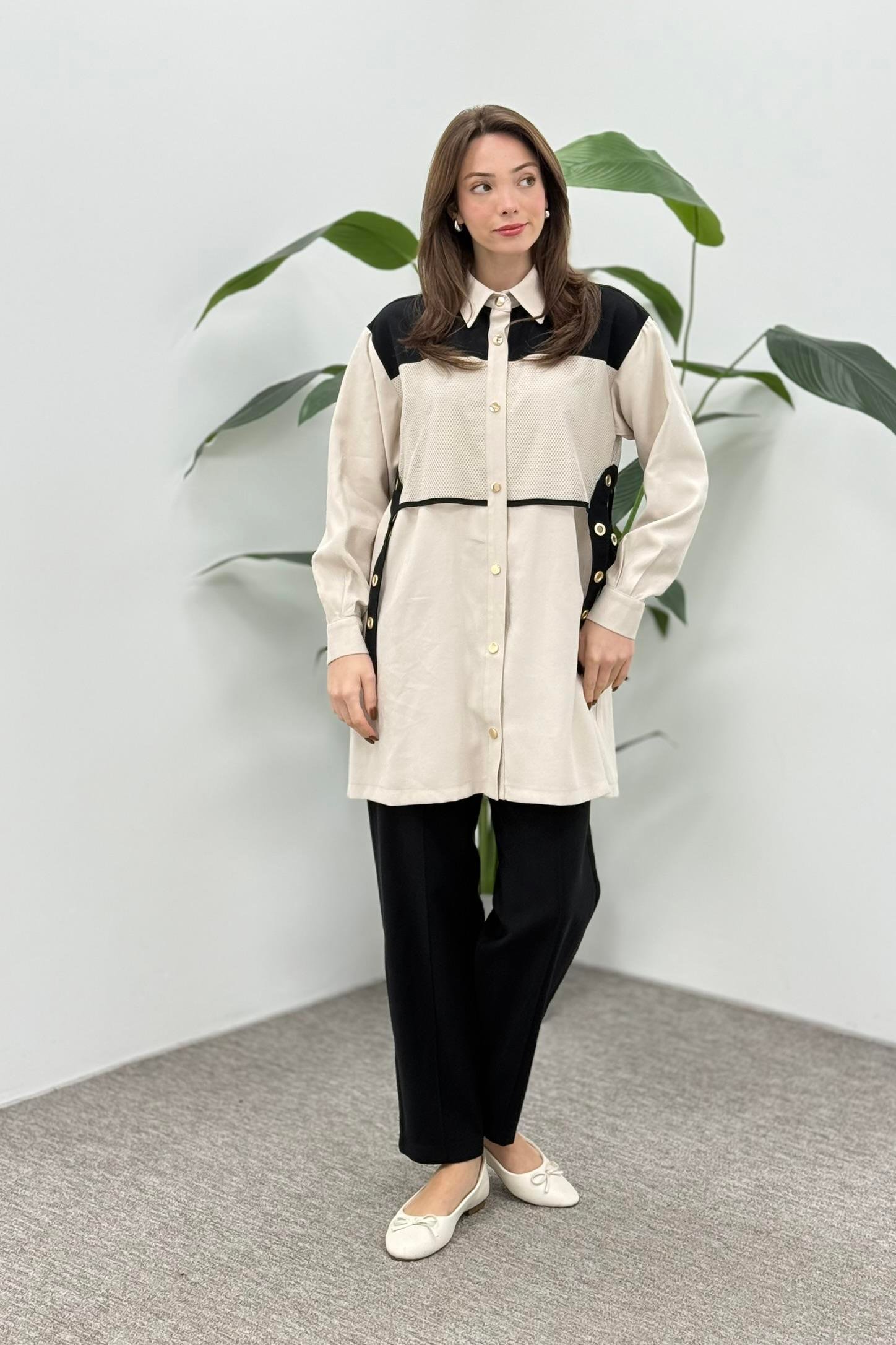 Kuş Gözü ve File Detay Pantolonlu Takım 1409 - Haki Kuş Gözü ve File Detay Pantolonlu Takım 1409 - Latte Kuş Gözü ve File Detay Pantolonlu Takım 1409 - Lacivert