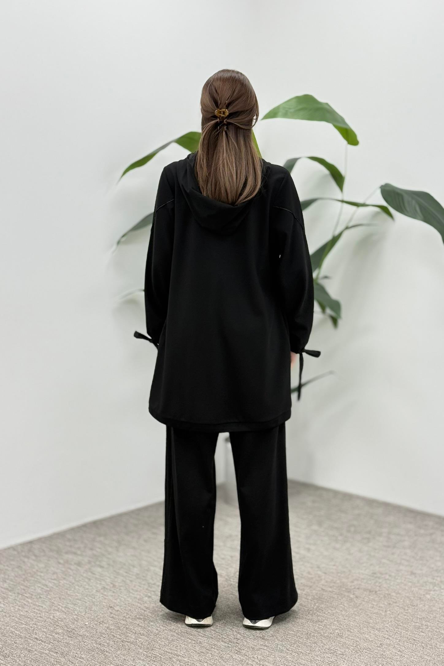LissmMore 5945 Bir Yanı Çiçek İşlemeli Pantolonlu Takım - Siyah (350353902)