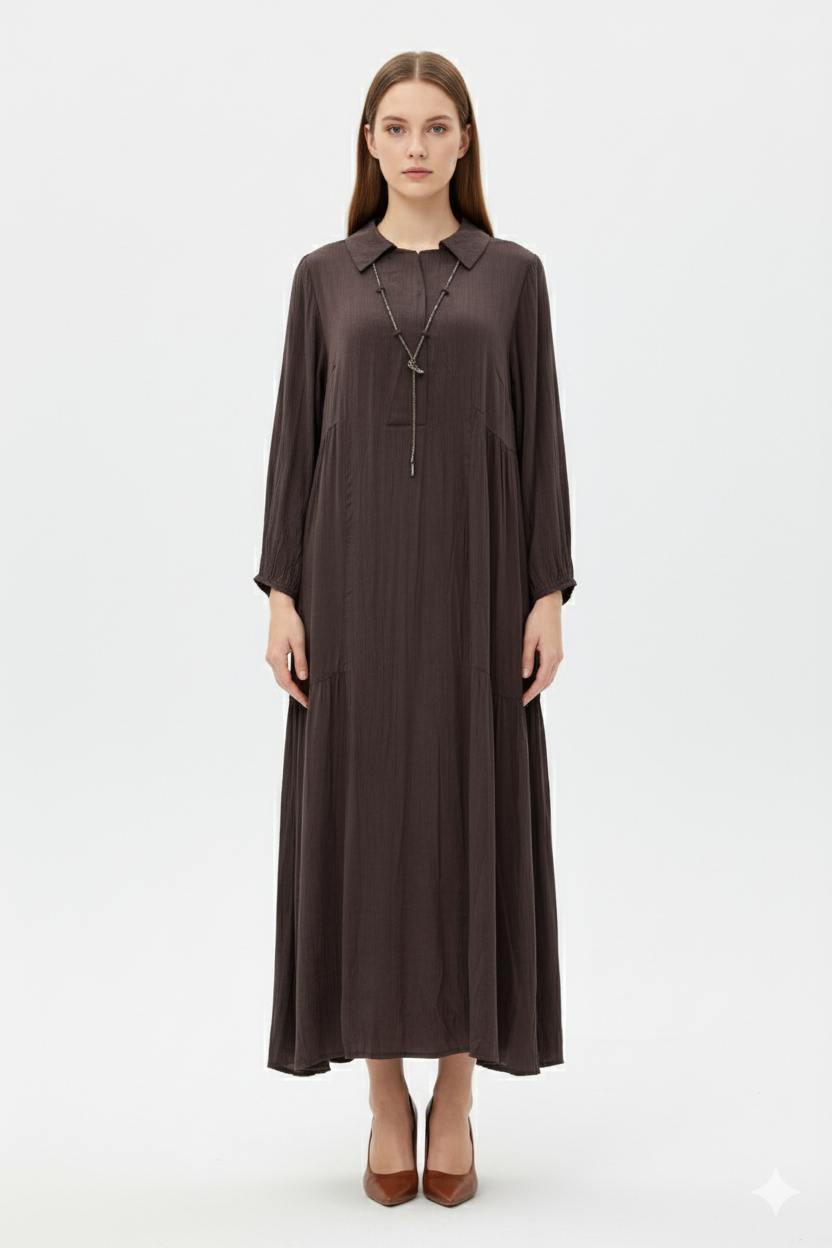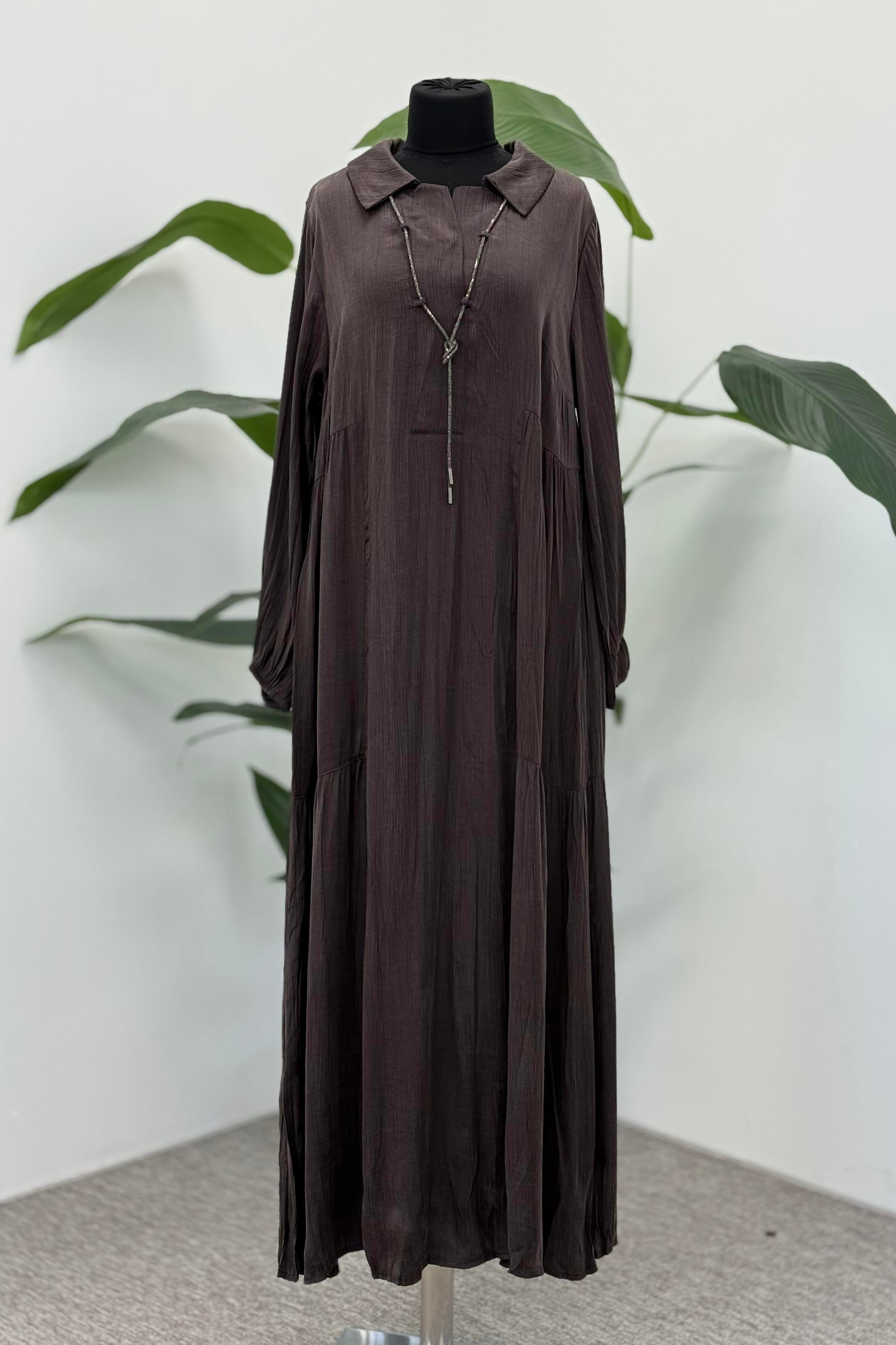 LissMore 5793 Kolye Detay Kırışık Elbise - Browni