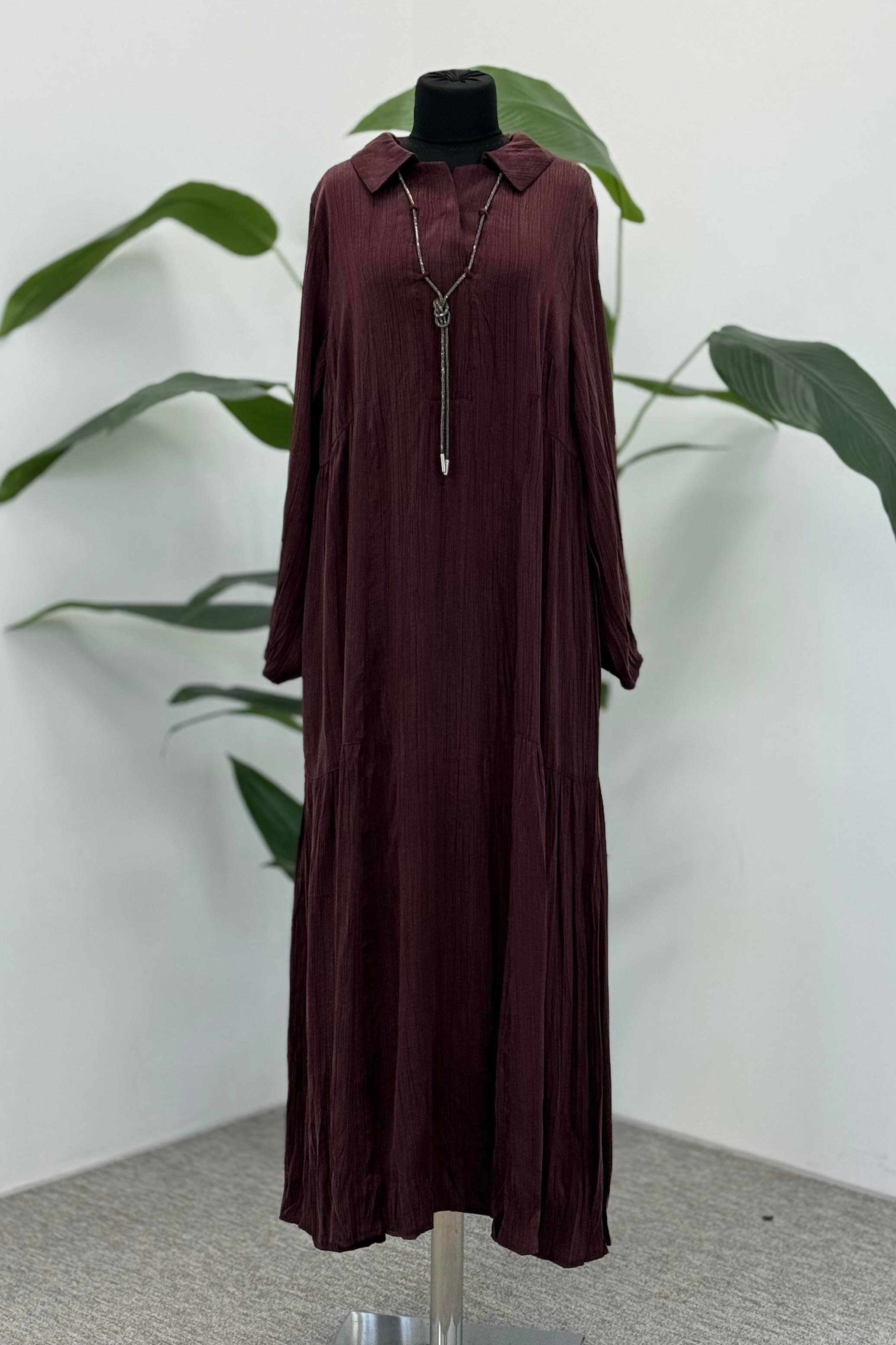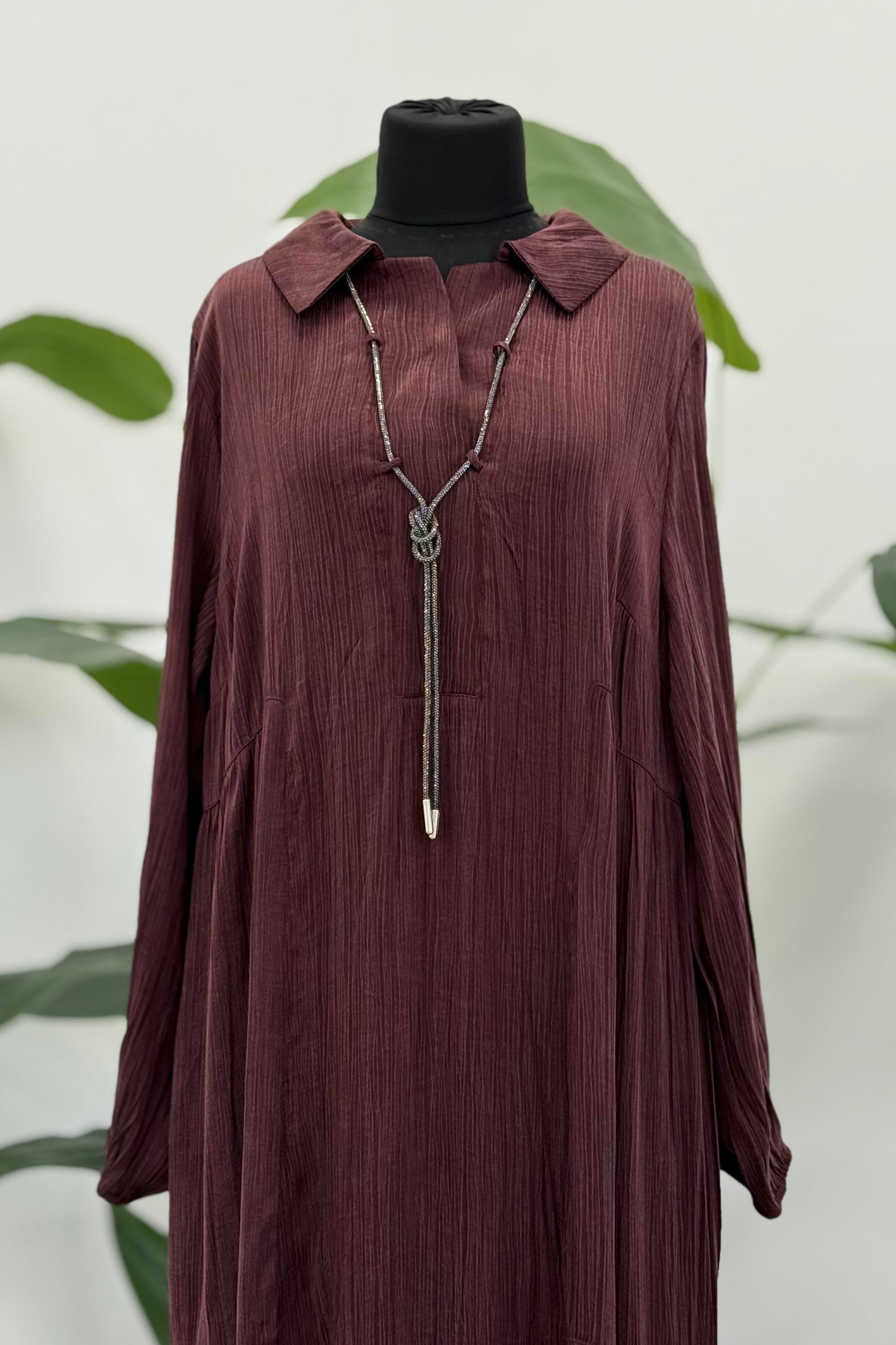 LissMore 5793 Kolye Detay Kırışık Elbise - Burgundy