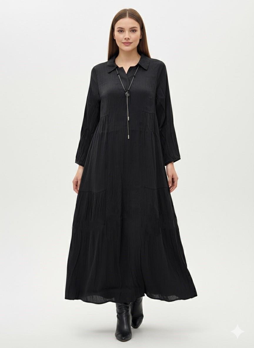 LissMore 5793 Kolye Detay Kırışık Elbise - Siyah