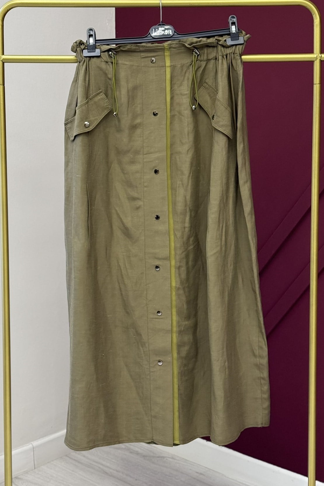 LissMore 5796 Sahte Düğme Detay Etek - Haki