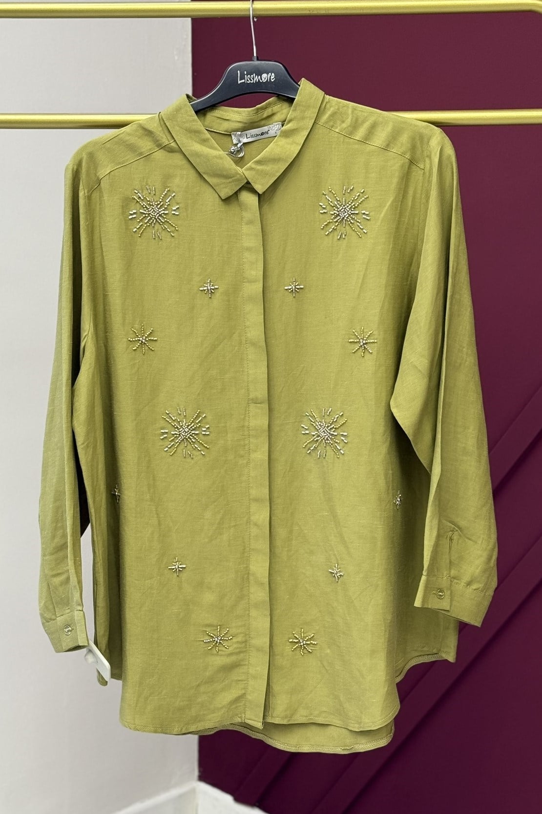 LissMore 5800 Güneşi Boncuk İşlemeli Tunik - Yağ Yeşili