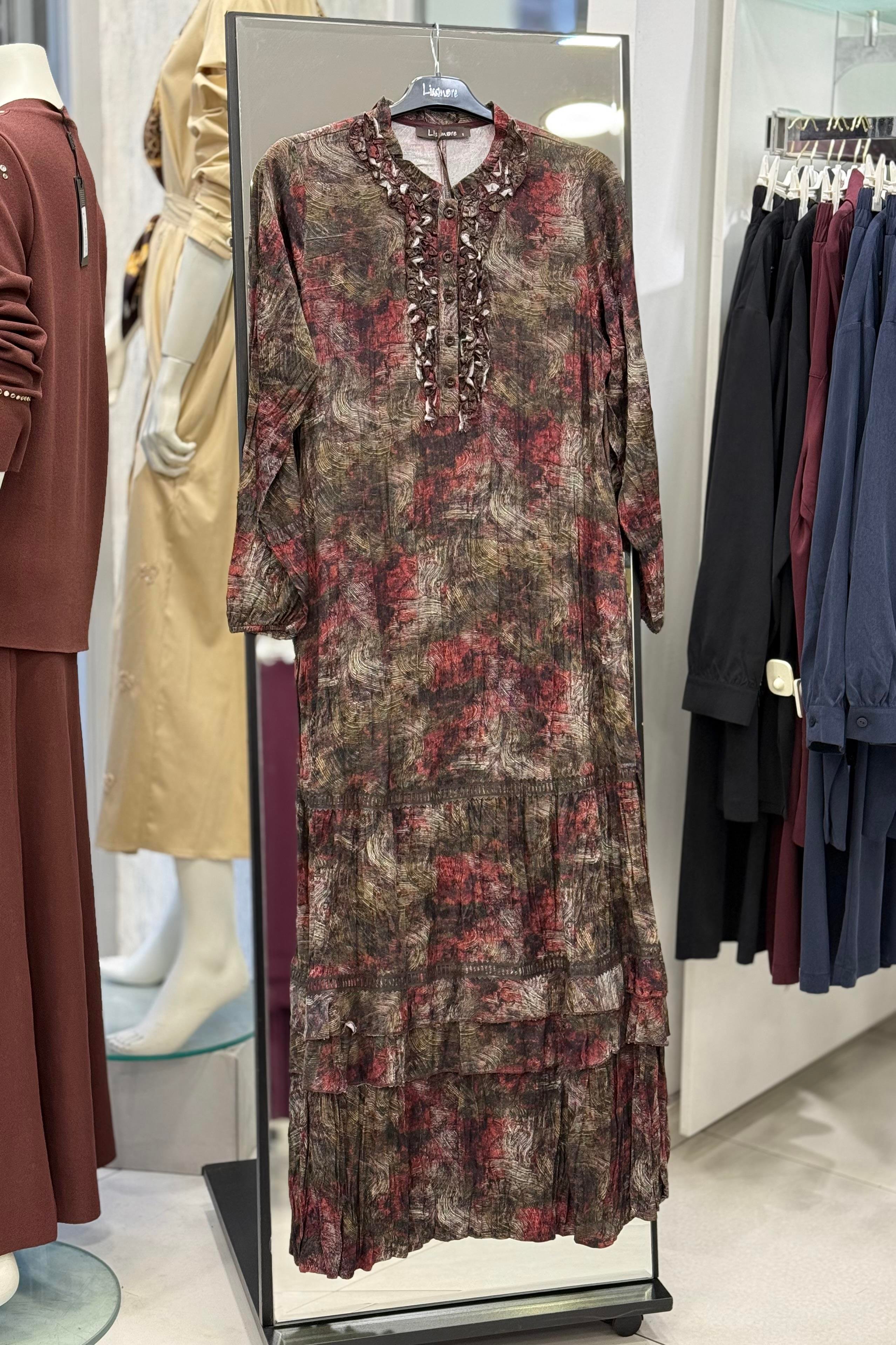 LissMore 6092 Yarım Düğme Detay Elbise - Bordo
