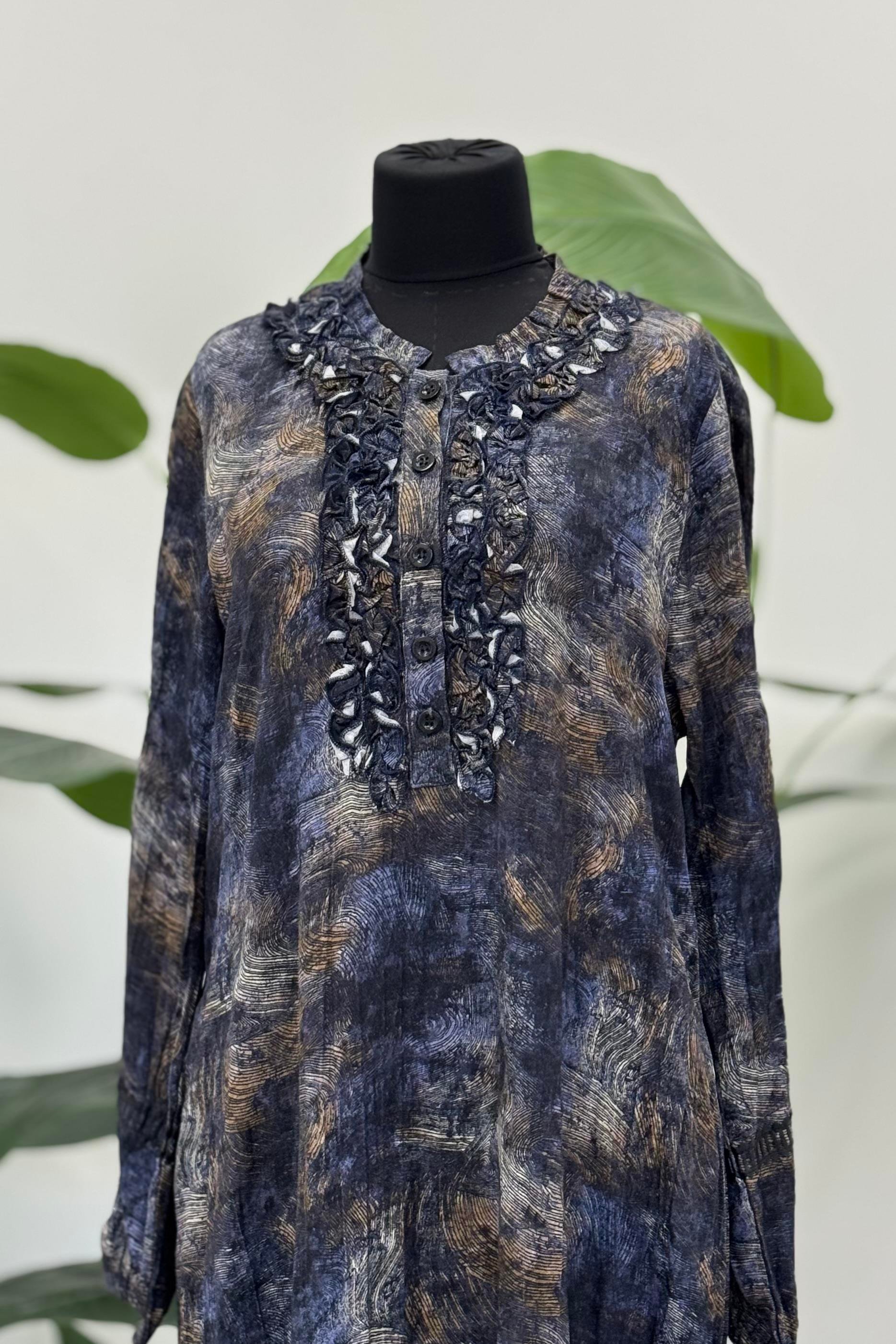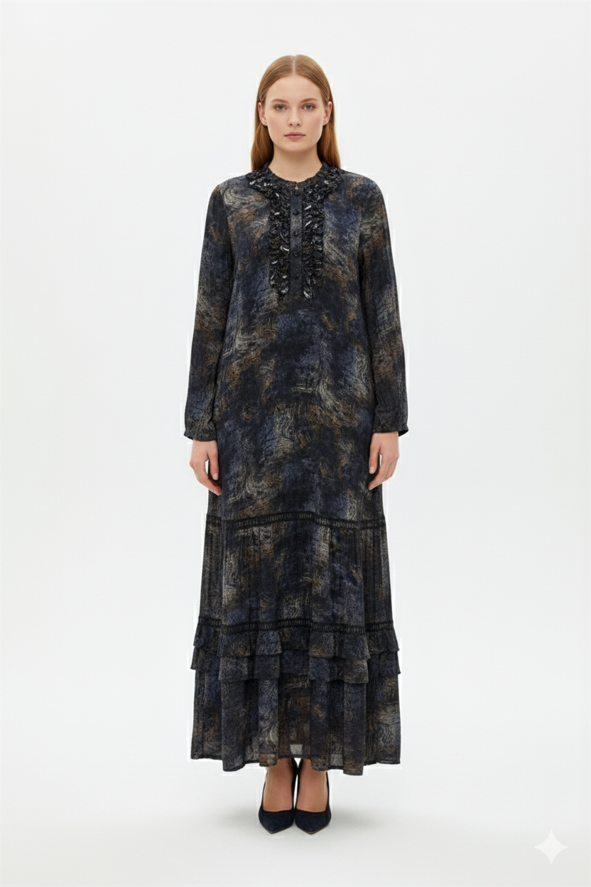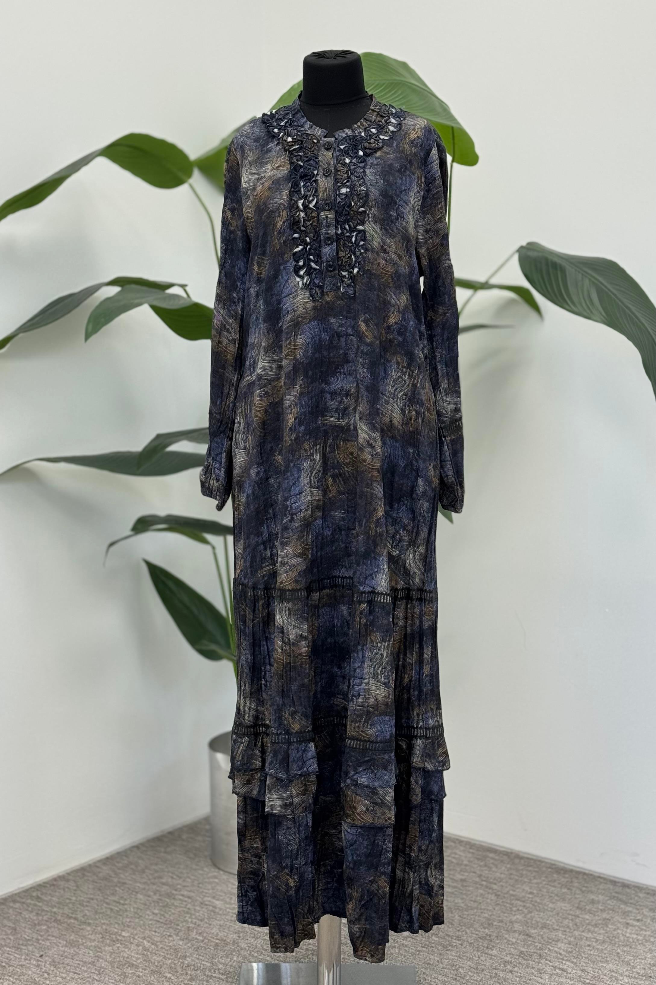 LissMore 6092 Yarım Düğme Detay Elbise - Lacivert