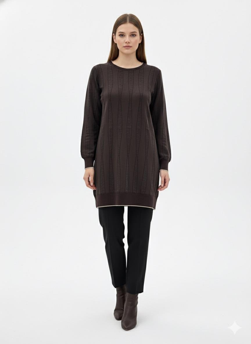 LissMore 6120 Renkli Biye Detay Tunik - Kahve