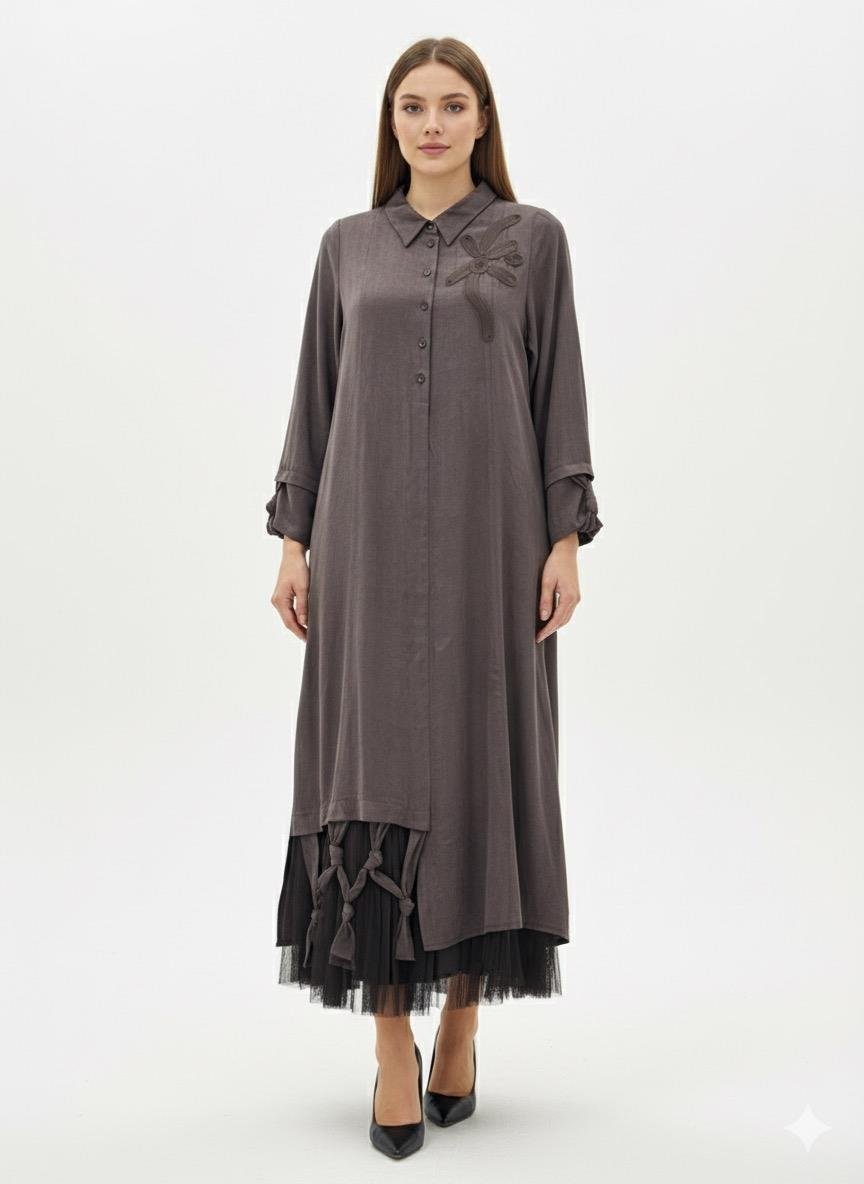 LissMore 6160 Eteği Kafes Detay Elbise - Browni