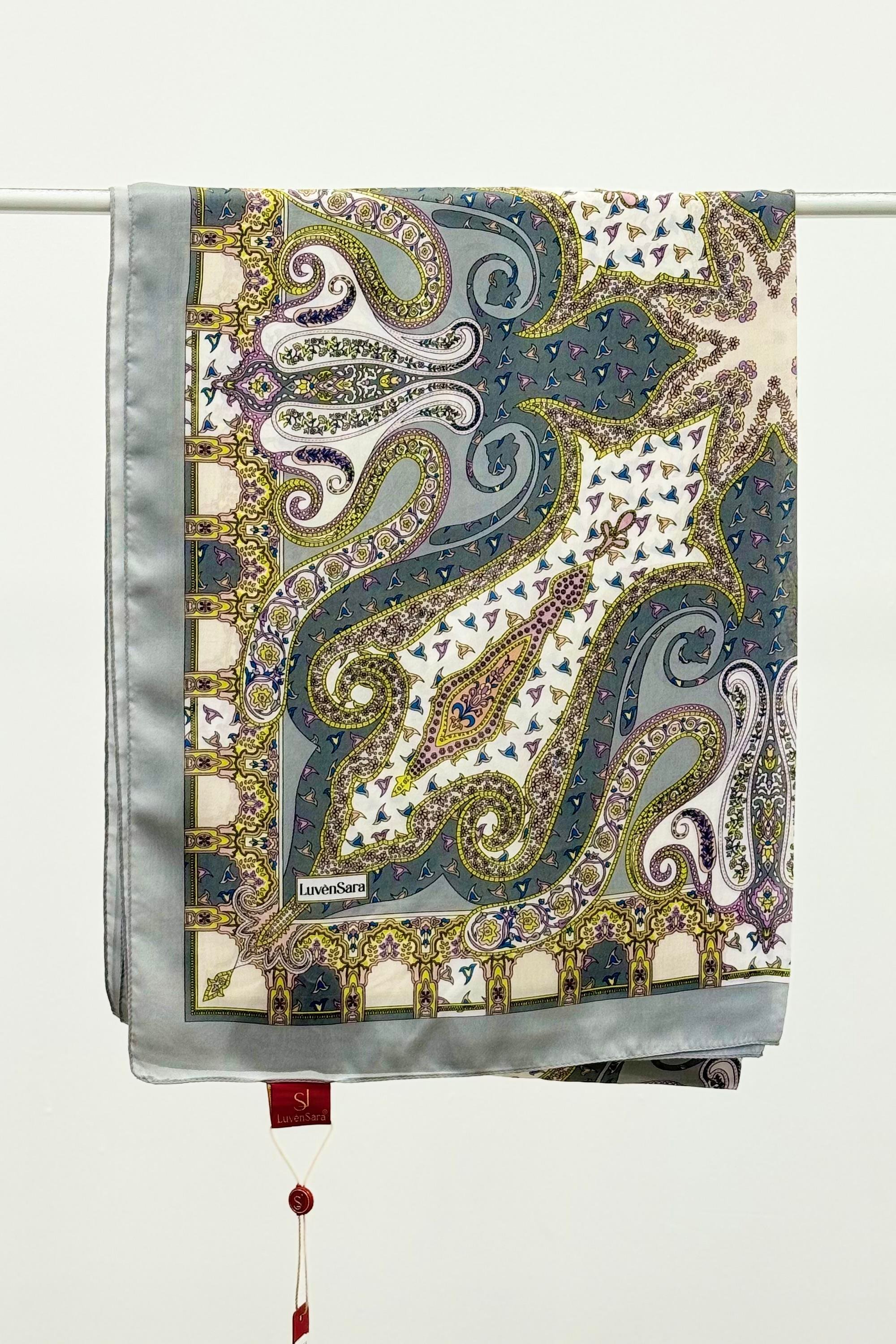 Luven 11776 Sara Hint İpeği Şal - Gri