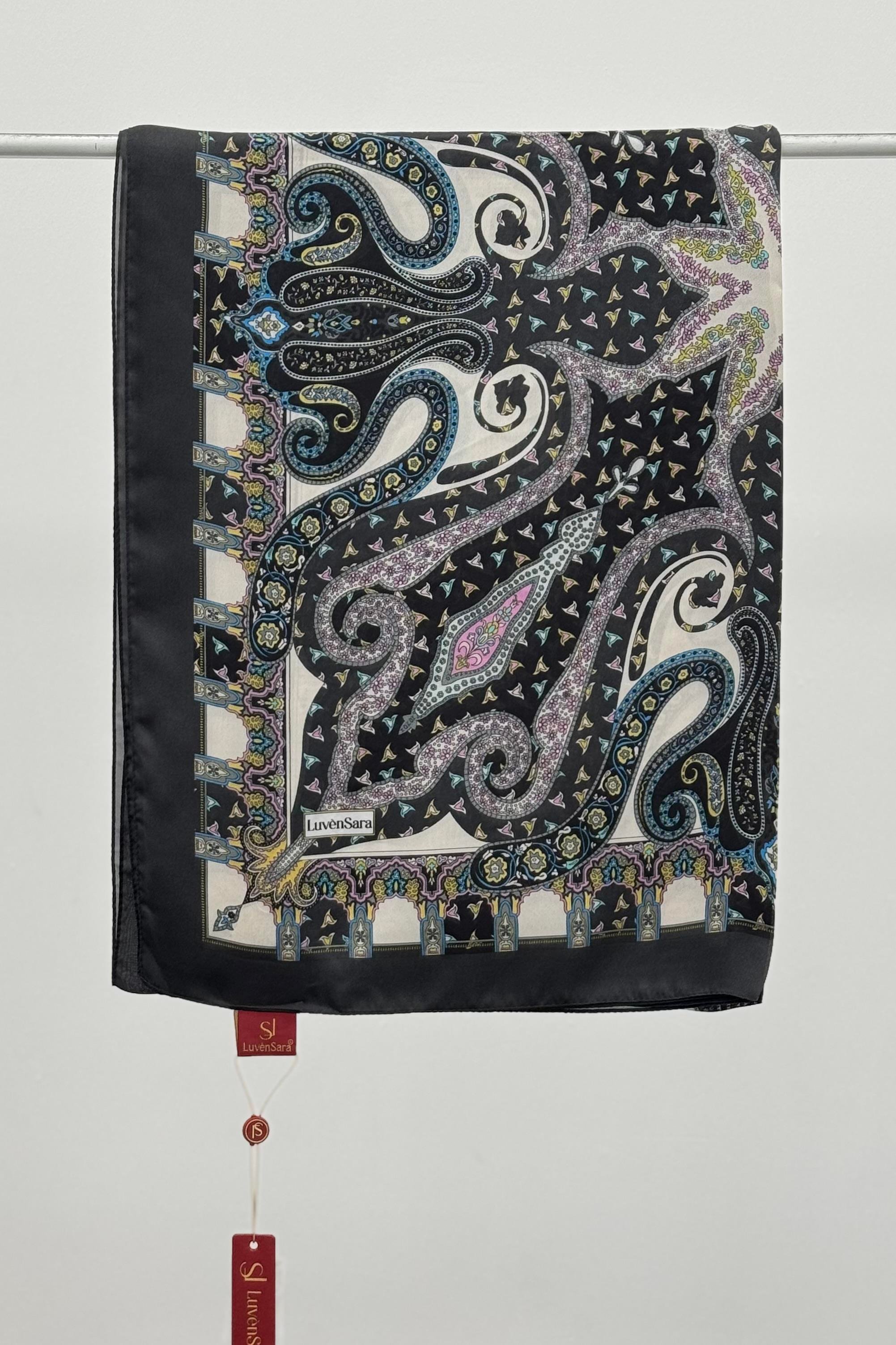 Luven 11776 Sara Hint İpeği Şal - Siyah - Mor