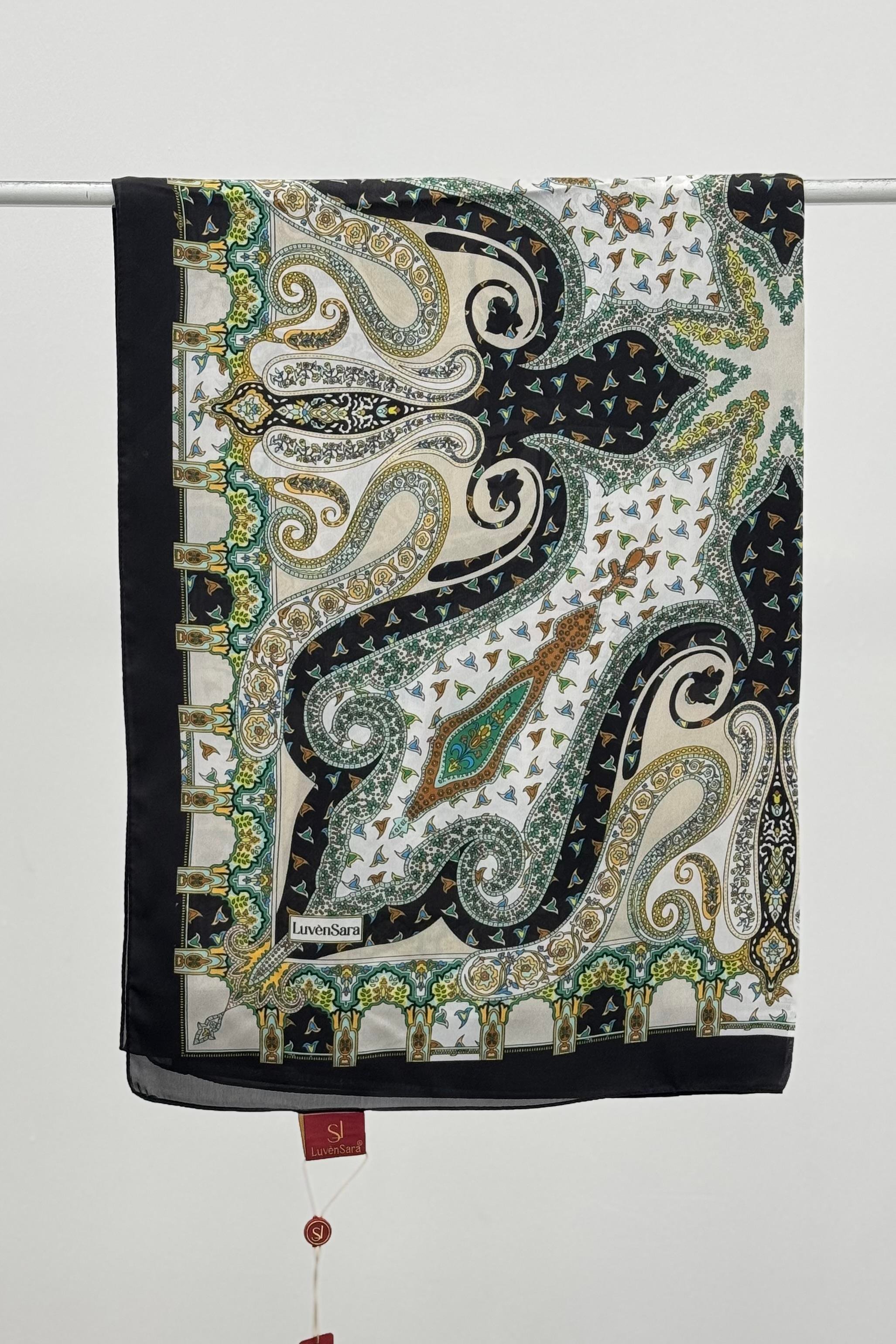 Luven 11776 Sara Hint İpeği Şal - Siyah - Sarı
